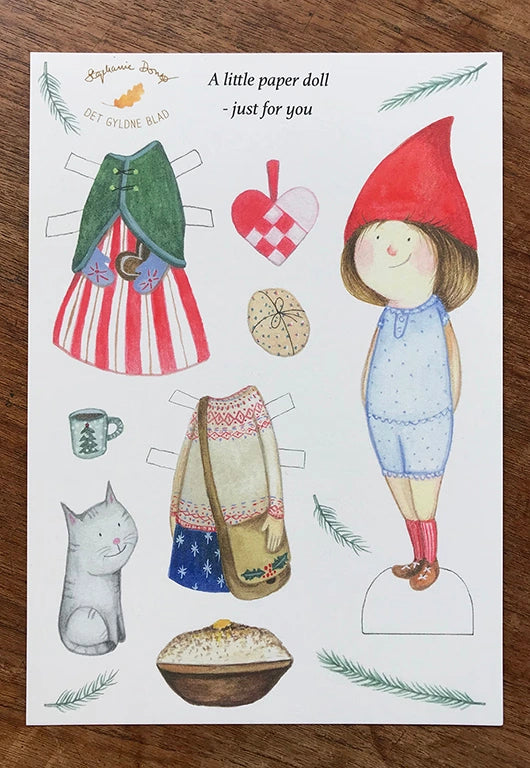 Wenn Du sie nicht ausschneiden möchtest, eignet sich die Ankleidepuppe auch als schöne große A5-Weihnachtspostkarte.
