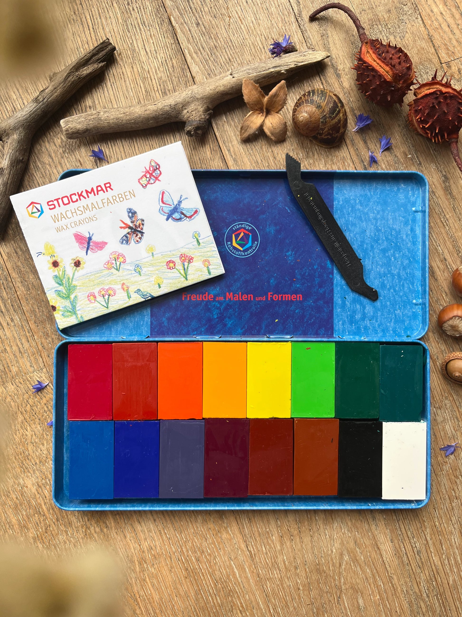 Stockmar Wachsmalfarben kennt jeder. Kein Wunder, denn sie erfüllen höchste pädagogische, ästhetische und künstlerische Ansprüche. Formschön, appetitlich verpackt und angenehm nach Bienenwachs duftend, sprechen Stockmar Wachsmalstifte die kindlichen Sinne an. Wie die Farben leuchten, und was man damit alles machen kann! Zeichnen, malen, Farbe satt auftragen, schichten, Farbe wieder freikratzen, Farben schmelzen: Stockmar Wachsmalstifte versprechen jahrelang reinste Malfreuden. Hervorragende Maleigenschaften (nichts krümelt, klebt, schmiert o.ä.), gesundheitliche Unbedenklichkeit und ein kunstpädagogisch durchdachtes Konzept machen Stockmar Wachsmalstifte zur Nummer eins.