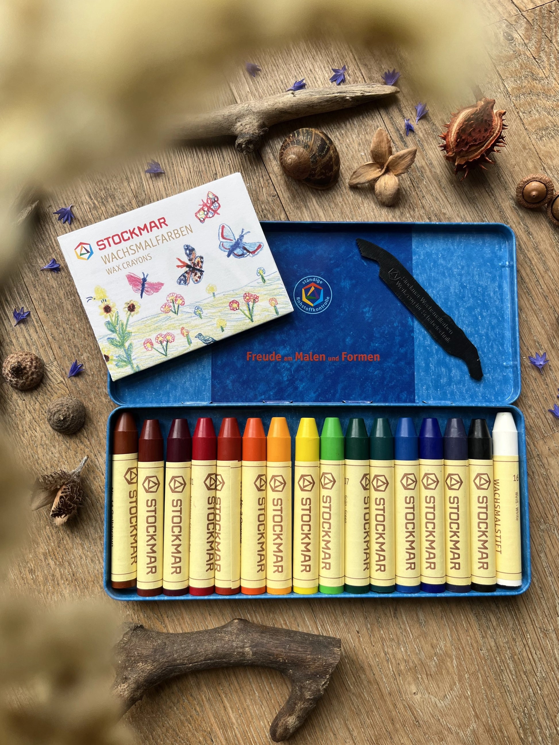 Stockmar Wachsmalstifte kennt jeder. Kein Wunder, denn sie erfüllen höchste pädagogische, ästhetische und künstlerische Ansprüche. Formschön, appetitlich verpackt und angenehm nach Bienenwachs duftend, sprechen Stockmar Wachsmalstifte die kindlichen Sinne an. Wie die Farben leuchten, und was man damit alles machen kann! Zeichnen, malen, Farbe satt auftragen, schichten, Farbe wieder freikratzen, Farben schmelzen: Stockmar Wachsmalstifte versprechen jahrelang reinste Malfreuden. Hervorragende Maleigenschaften (nichts krümelt, klebt, schmiert o.ä.), gesundheitliche Unbedenklichkeit und ein kunstpädagogisch durchdachtes Konzept machen Stockmar Wachsmalstifte zur Nummer eins.