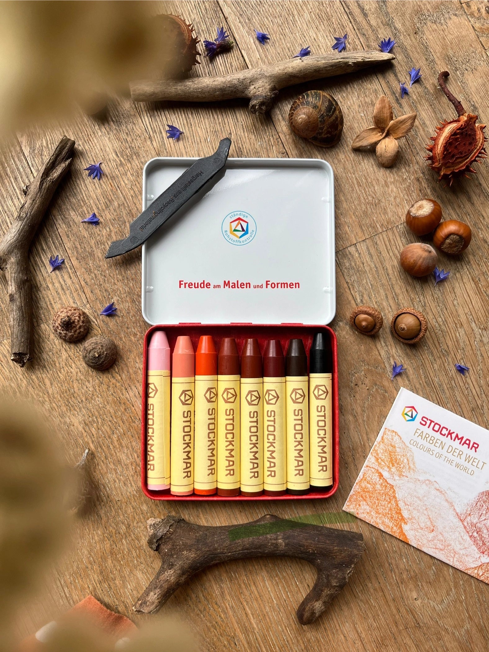 "FARBEN DER WELT" – mit unserer Farbpalette in Anlehnung an Goethes Farbenkreis stehen STOCKMAR Farben für Lebendigkeit, für Menschlichkeit, für Vielfalt. Unser bestehendes Sortiment ergänzen wir nun um die "Farben der Welt" – einer Sortierung, mit der sich wunderbar die Vielfalt der Menschen darstellen lässt. Denn wir sehen die Hautfarben wie alle anderen Naturerscheinungen als einen Aspekt der Farben der Welt. Oder Farben von Welt, wenn man so will. Weltgewandt, offen, im gesellschaftlichen Diskurs geübt.