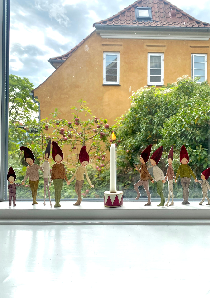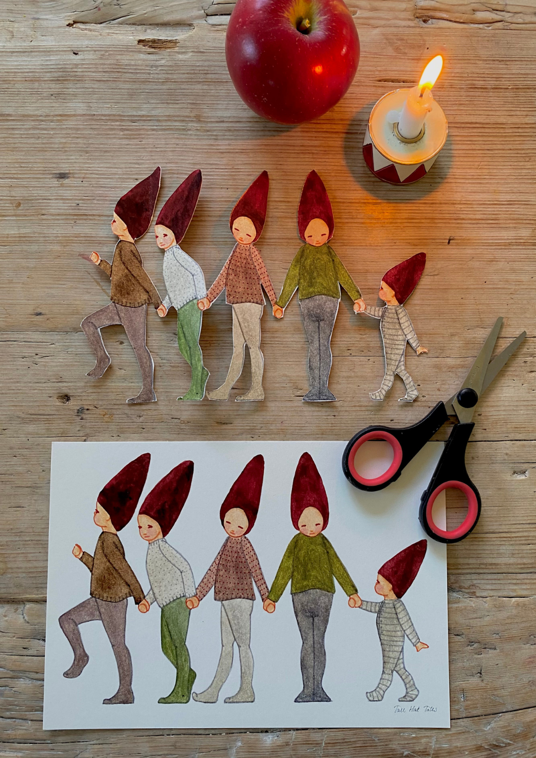Schneide sie aus und befestige sie mit einem kleinen Stück Klebeband an Regalen und Fensterbänken. Du kannst die Elfen Parade mit der anderen Elfen Parade hier fortsetzen.