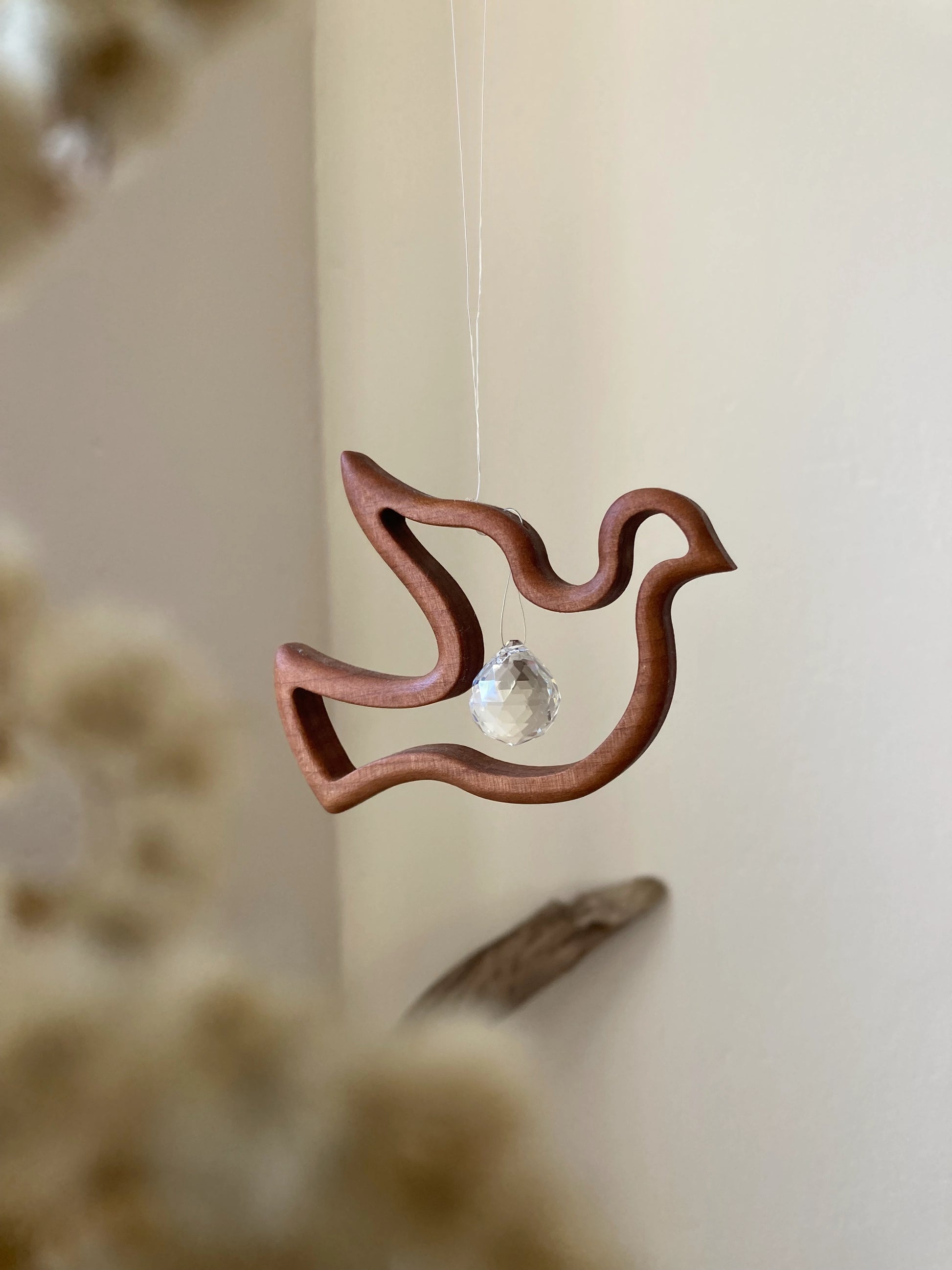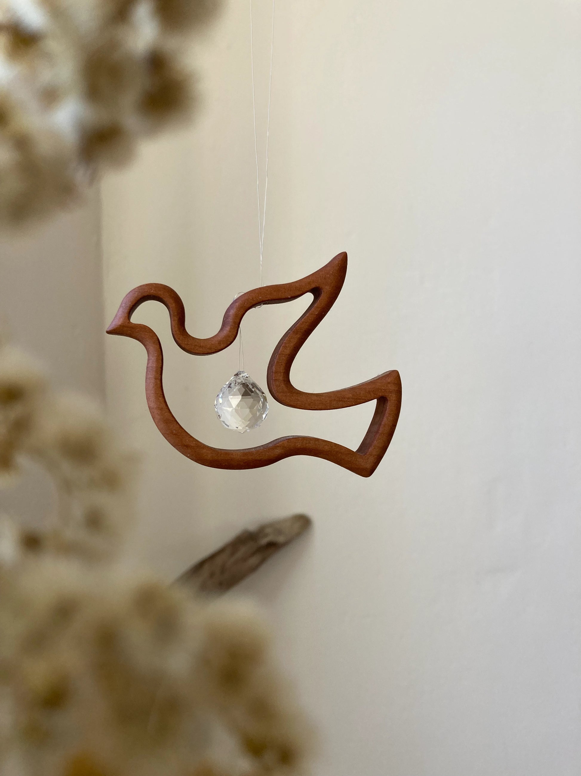 Fensterschmuck - Friedenstaube mit Regenbogen-Kristall
