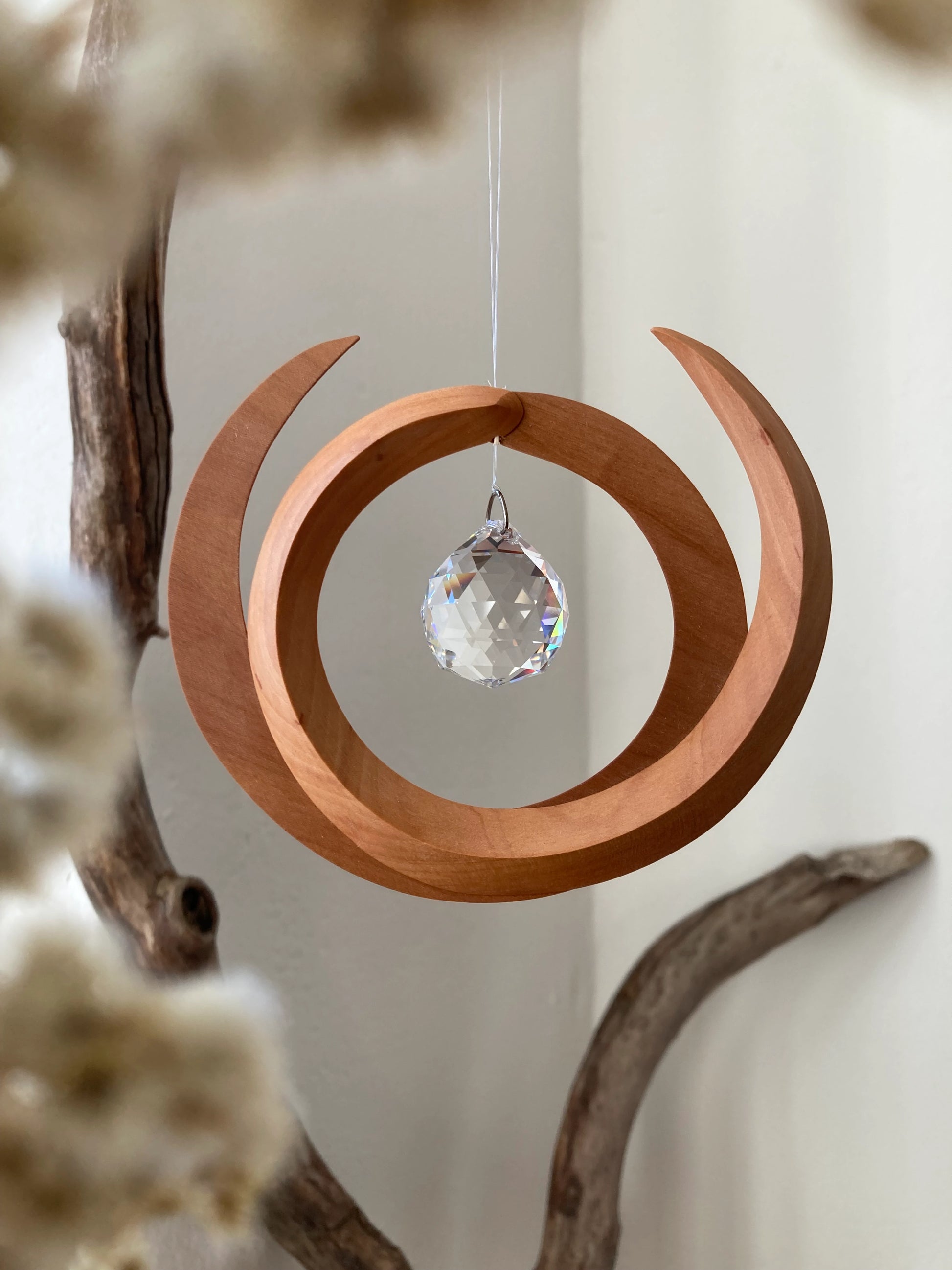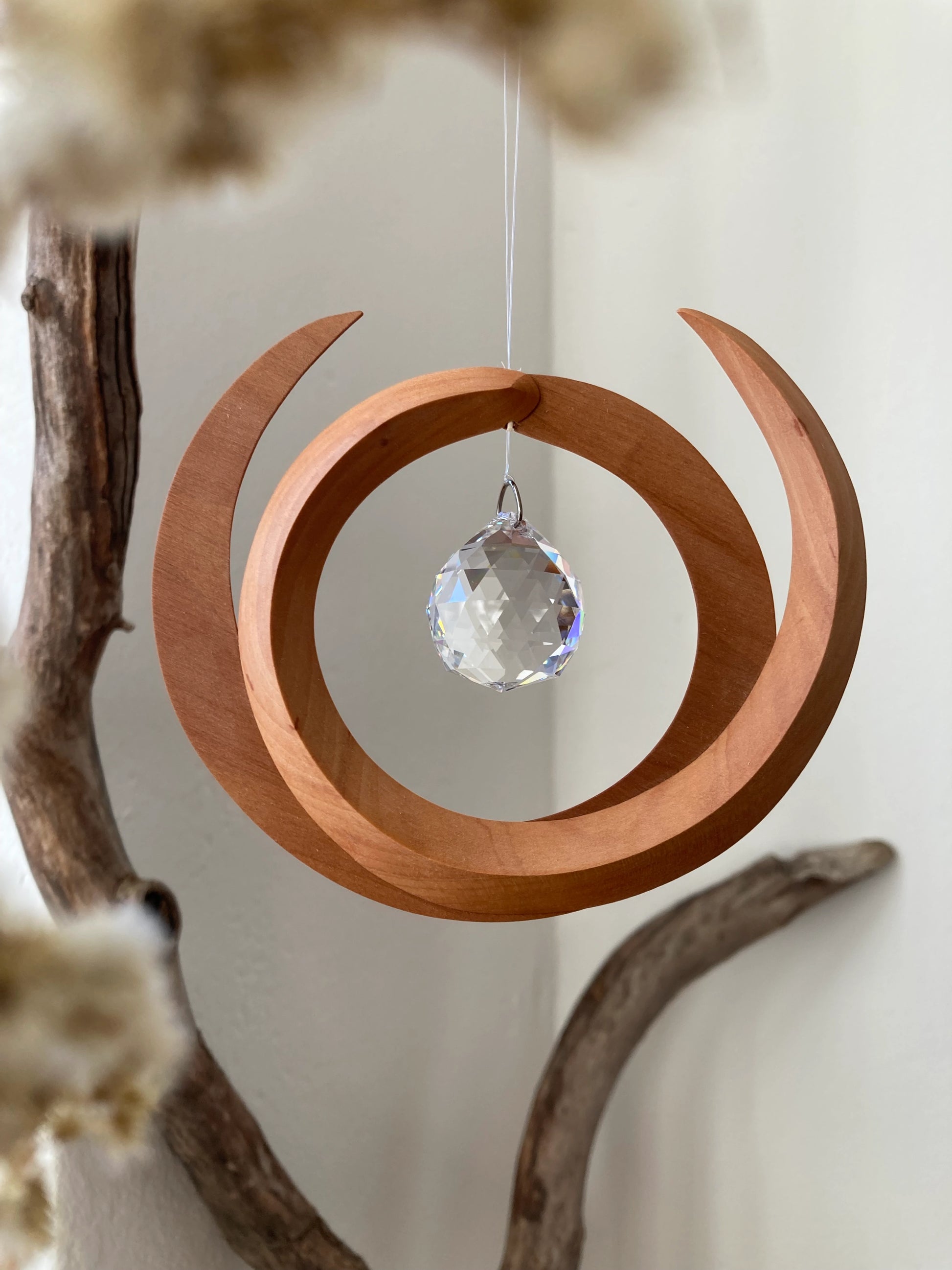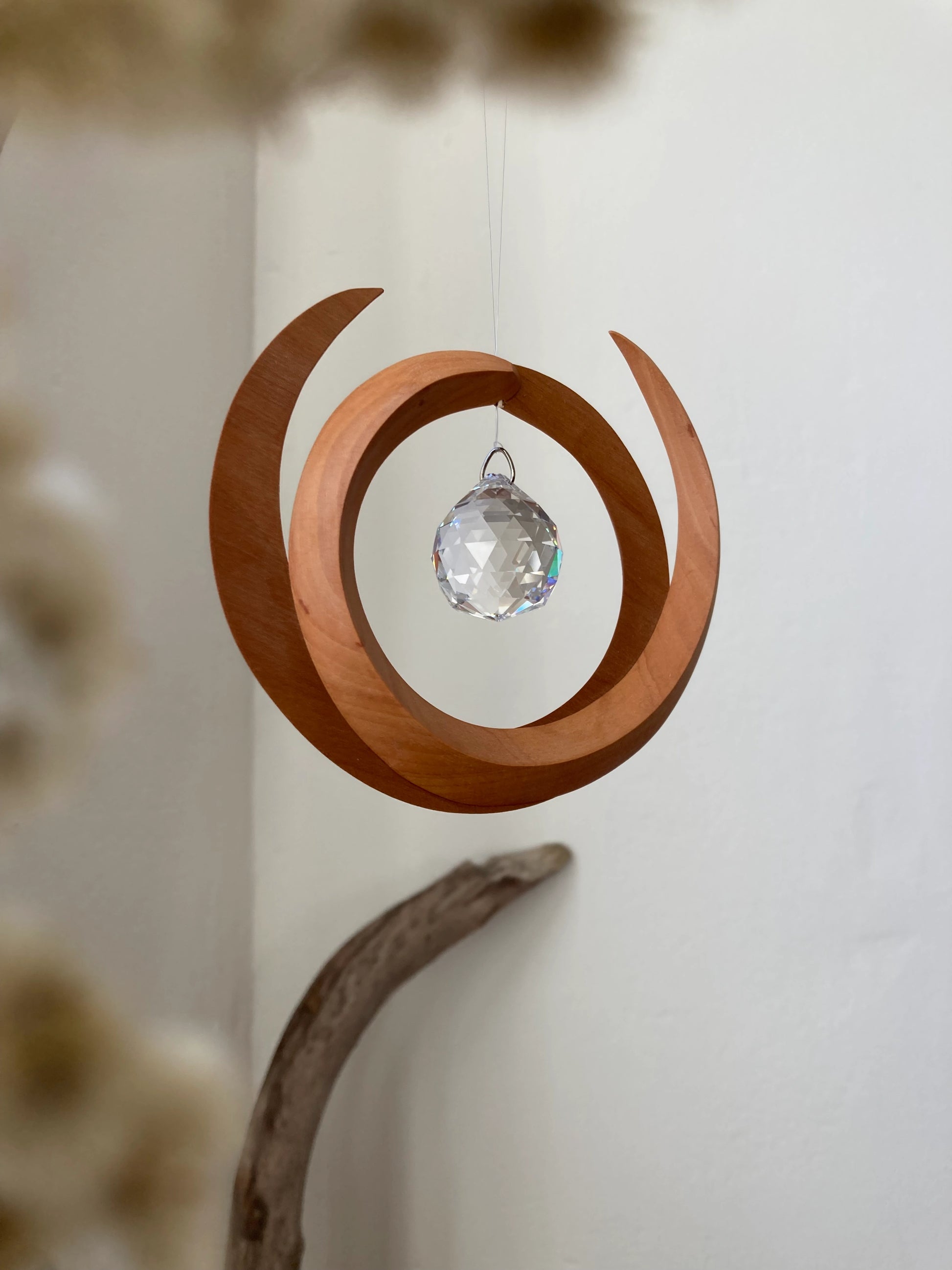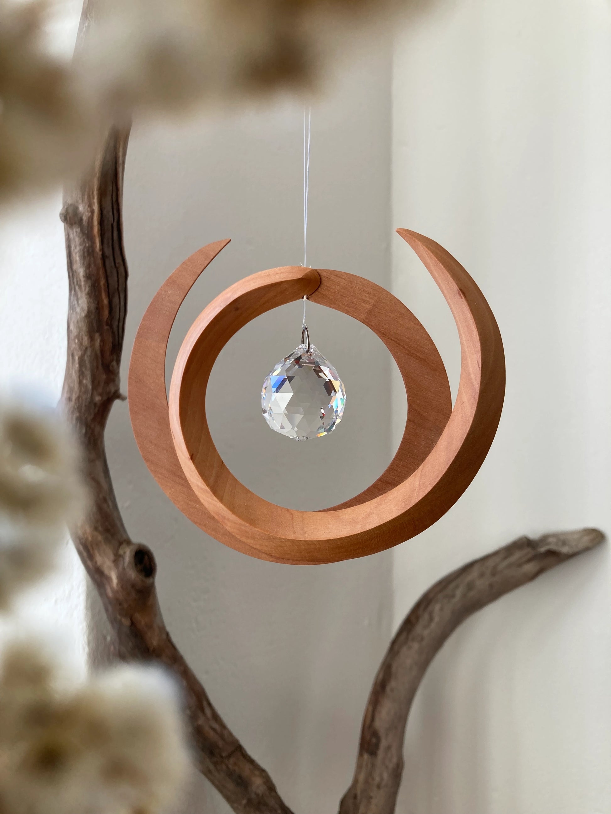 Nepal - Alle Mondphasen vereint in einem uralten Symbol der steten Veränderung. Verschiedene Kulturen haben im Laufe der Zeit bestimmten Symbolen eine willkürliche Bedeutung zugeteilt. Einige dieser Symbole haben uns bei der Kreation der Holzformen inspiriert. Unsere Fensterdekorationen lassen den Raum regelrecht erstrahlen. Auch in der jahrtausendalten chinesischen Lehre des Feng Shui spielen Kristalle eine zentrale Rolle. Ein im Fenster hängender Regenbogenkristall bringt mit der Brechung des Lichts positive Energie in den Raum.