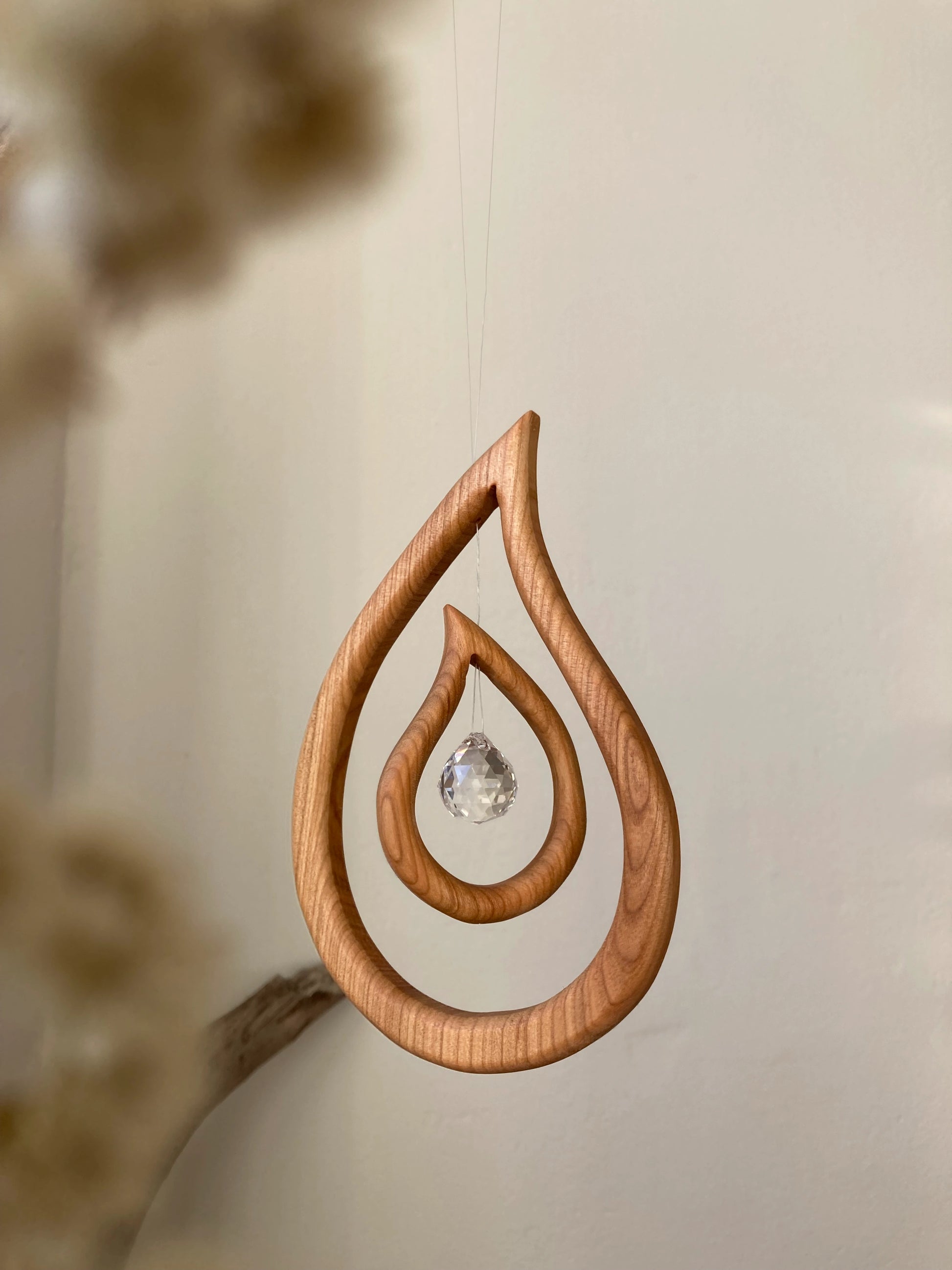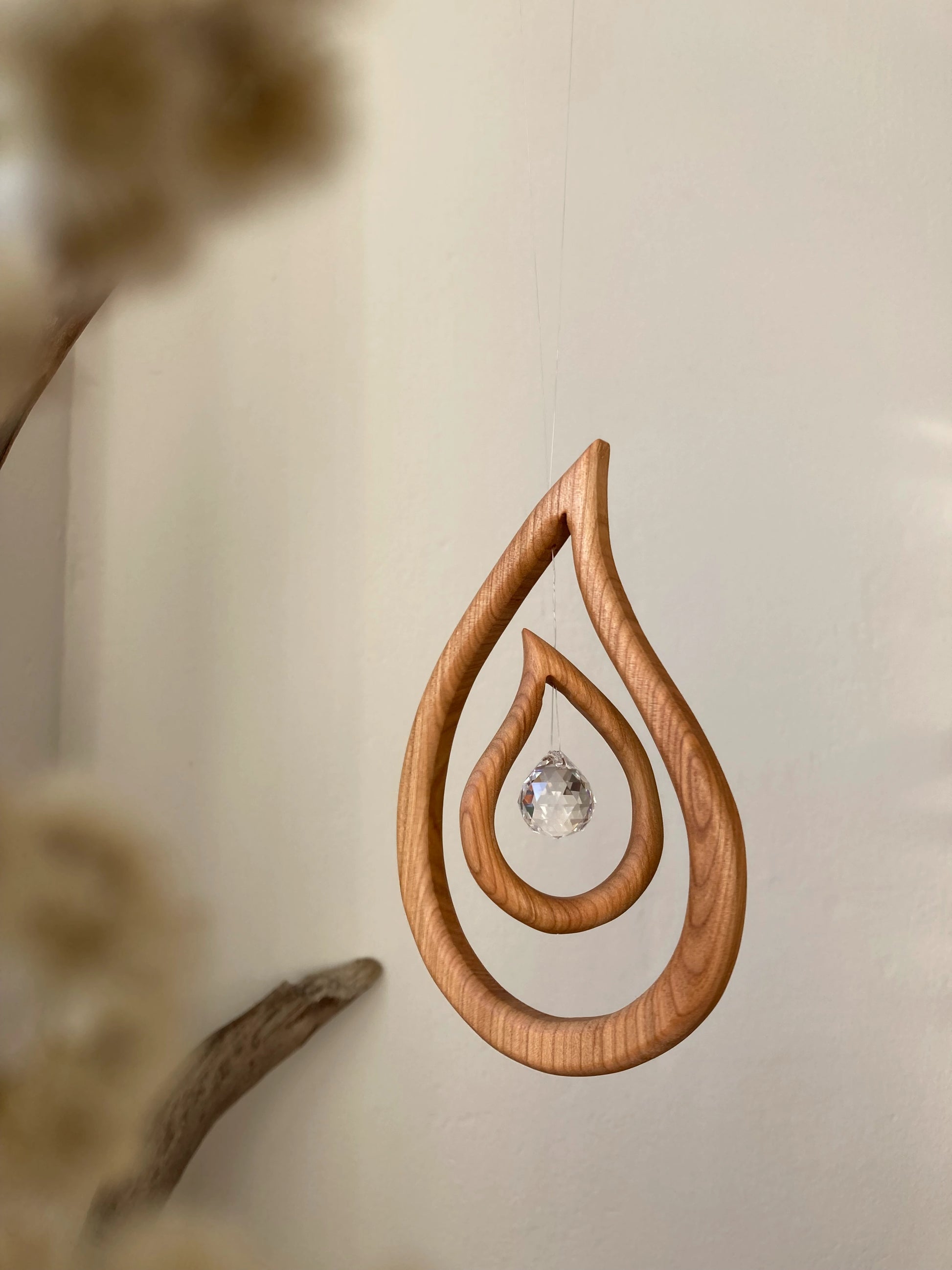 Tautropfen - Morgendliche Quelle der Erfrischung. Die Natur erweist sich immer wieder aufs Neue als einzigartiger Schöpfer. Die Vielfalt von Arten und Farben ist verblüffend. Unsere Fensterdekorationen lassen den Raum regelrecht erstrahlen. Ein im Fenster hängender Regenbogenkristall bringt mit der Brechung des Lichts positive Energie in den Raum. Die handwerklich gefertigten Naturholzobjekte aus Birnbaum oder Kirschbaum bilden dafür eine hervorragende Basis. Mit den funkelnden Akzenten aus feinsten geschliffenen Glaskristallen ist der Fensterschmuck perfekt.