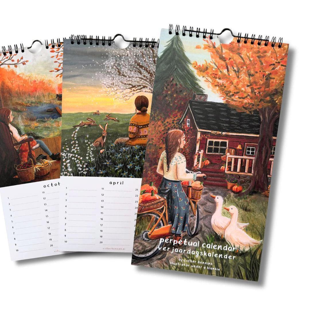Der Kalender misst 16 x 30 cm. Gedruckt auf stabilem, 400 g/m² starkem, FSC-zertifiziertem Papier. Gedruckt und hergestellt in den Niederlanden. Der Kalender verfügt über einen Ringordner mit Kalenderhaken zum einfachen Aufhängen.