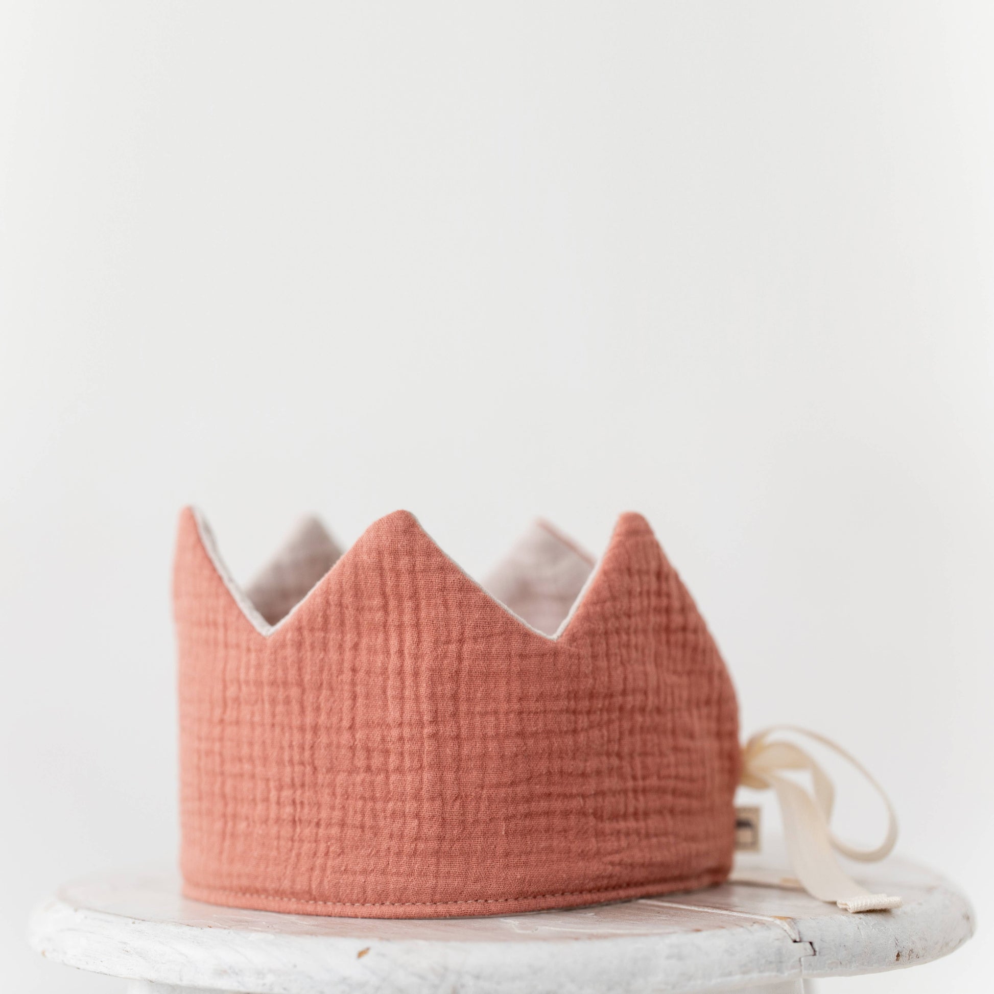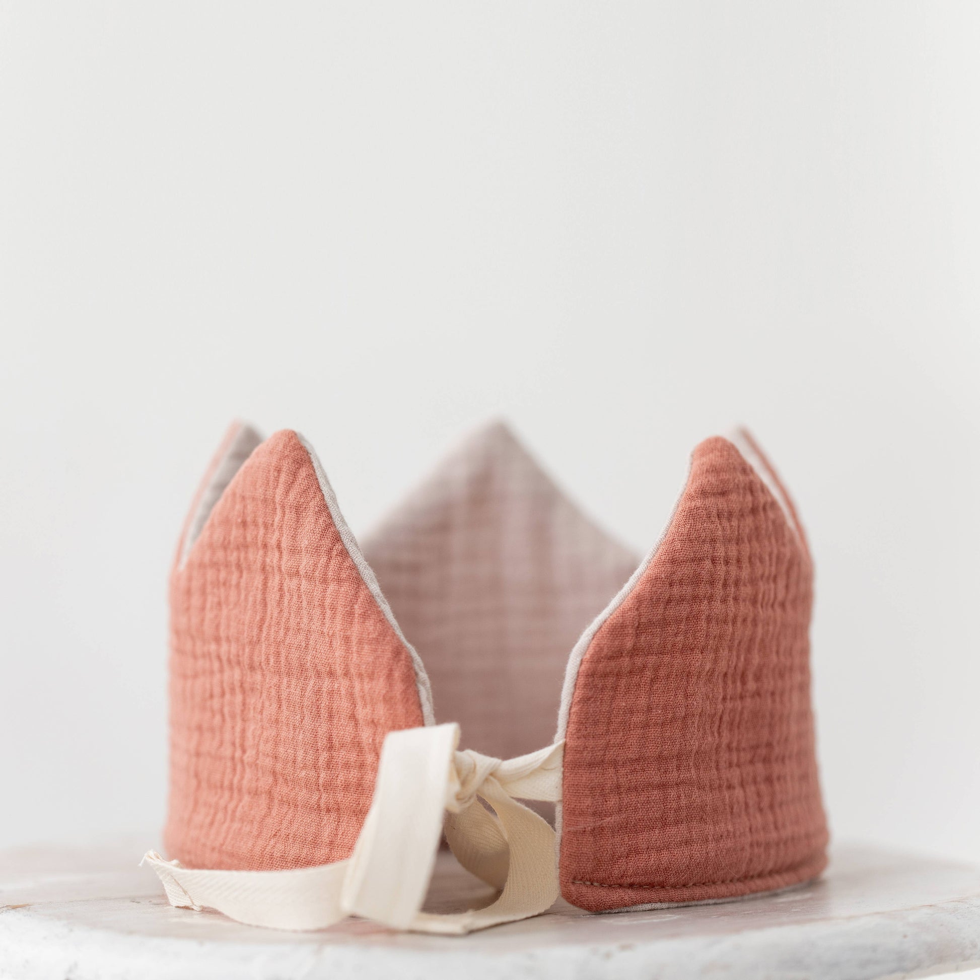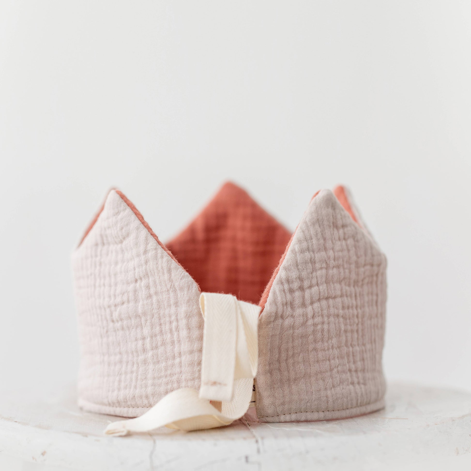 Stoffkrone für Jungen oder Mädchen. Sie ist handgefertigt aus natürlichen Materialien. Der Stoff besteht aus GOTS-zertifizierter Bio-Baumwolle, die die menschliche und ökologische Sicherheit von Textilartikeln in allen Produktionsstufen gewährleistet.