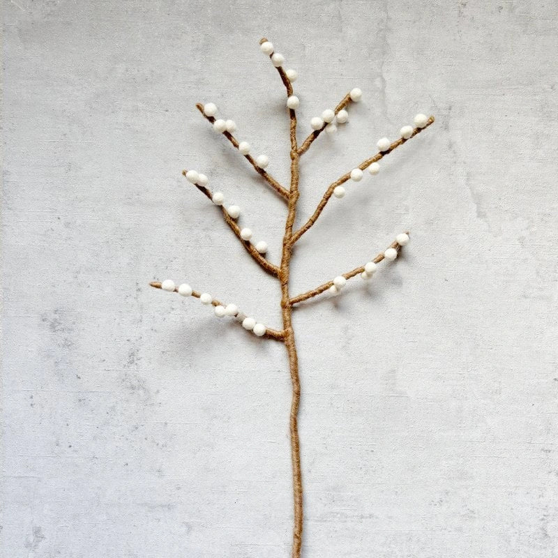 Gefilzter Zweig mit weißen Beeren, handgefertigt. Fairmade aus Nepal. 🧡 Die Zweige kann man in die gewünschte Position biegen.