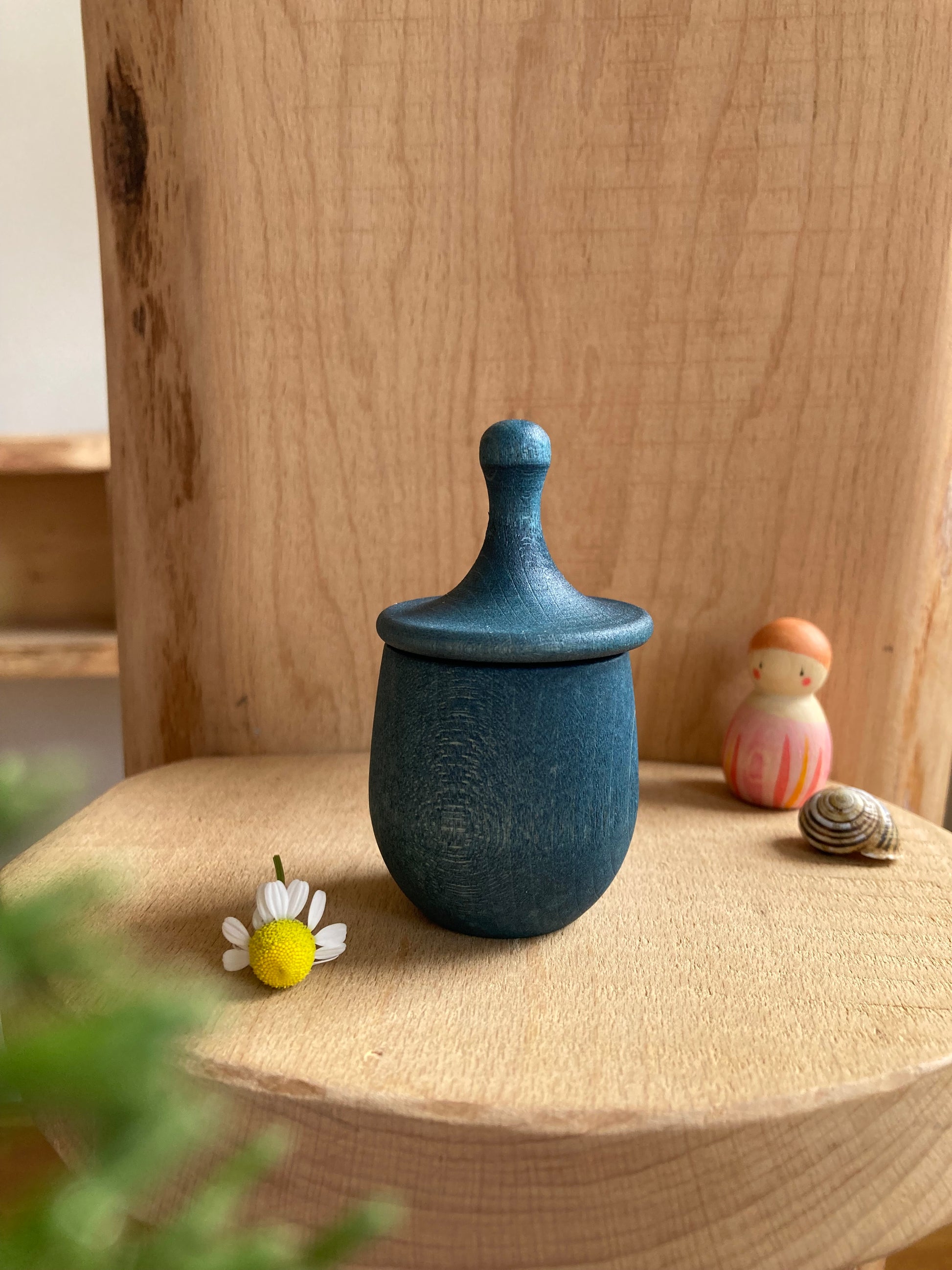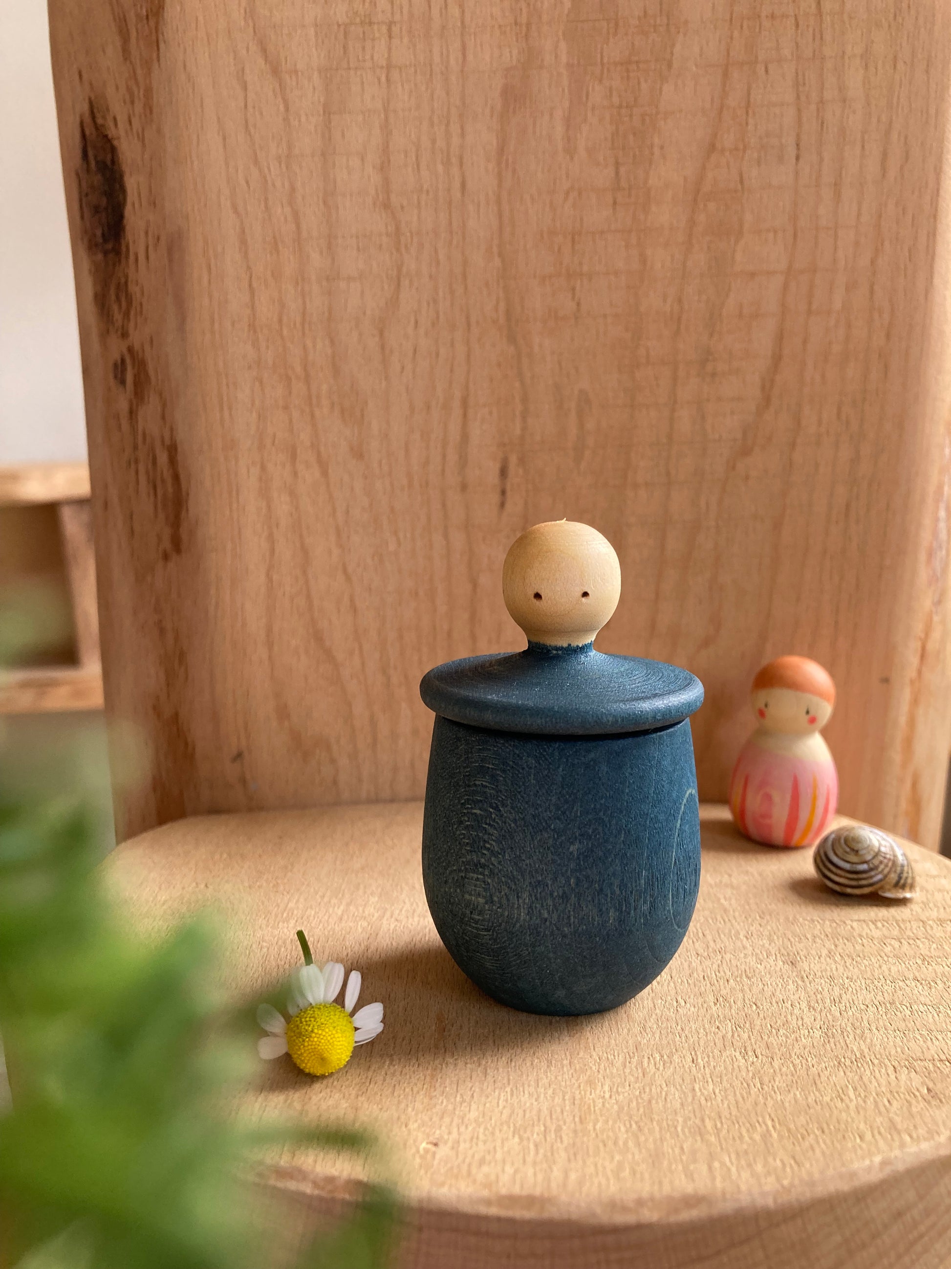 Diese Wunsch- und Zauberbox ist perfekt für kleine Schätze, bietet eine Holzfigur für freies Spiel und der umgedrehte Deckel lässt die Figur verschwinden. Zudem kann sie als kleiner Kreisel (beidseitig spielbar) oder Milchzahndose verwendet werden.