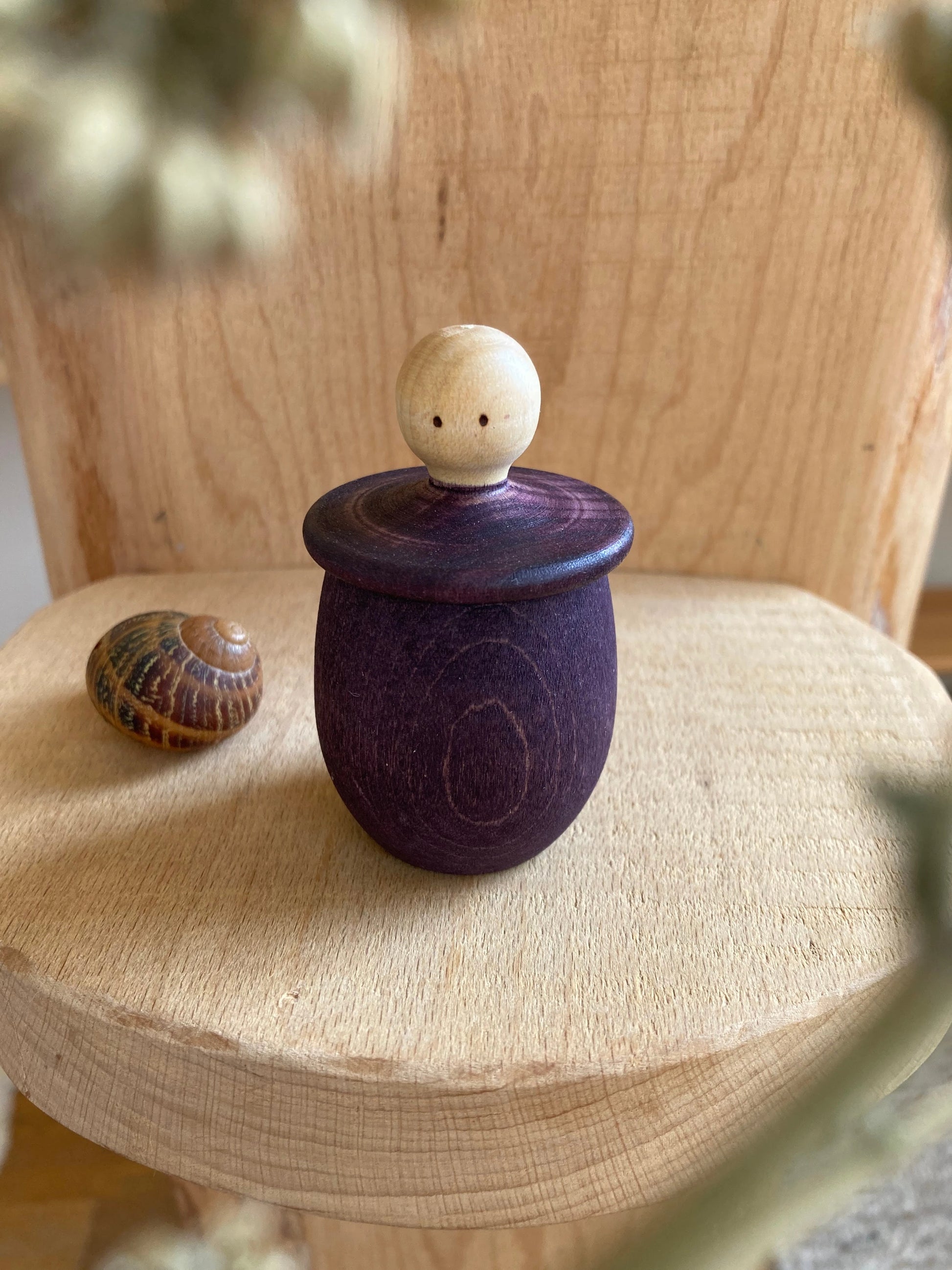 Kleine Schätze verdienen besondere Aufbewahrung! Die Wunschbox "Purple Little Things" von Grapat begeistert mit ihrem einzigartigen Design. Diese vielseitige Box kann als Wunsch- oder Aufbewahrungsbehälter, Kreisel, Milchzahndose oder Spielfigur genutzt werden. Hergestellt aus FSC-zertifiziertem Holz, ist die handgefertigte Figur mit umweltfreundlichen, wasserbasierten Farben liebevoll bemalt.