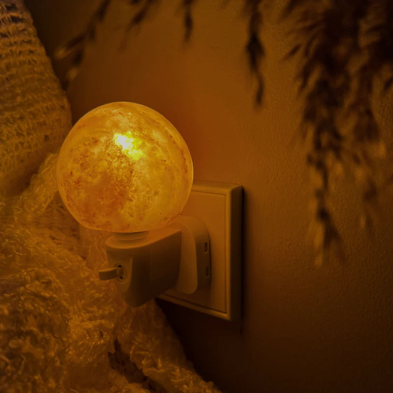 Möchtest du mehr Entspannung im Alltag? Das Himalaya-Nachtlicht Luna aus 100 % reinem Salz schafft mit seinem sanften Licht eine beruhigende Atmosphäre in deinem Zuhause.
