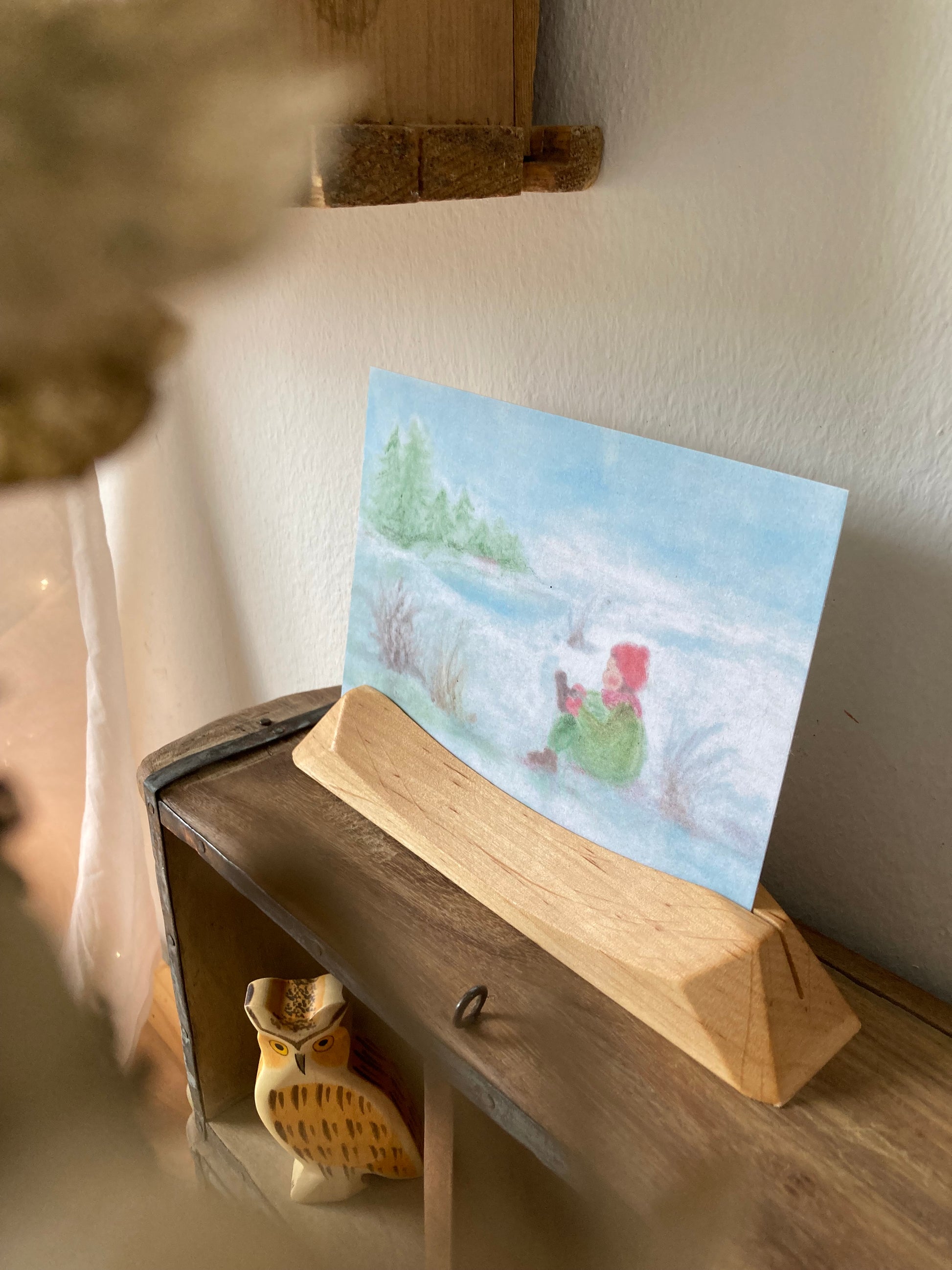 Zur Pflege des Holzes, wird der Kartenhalter geölt. Der Farbton des Halters, kann daher mal heller und mal dunkler ausfallen.