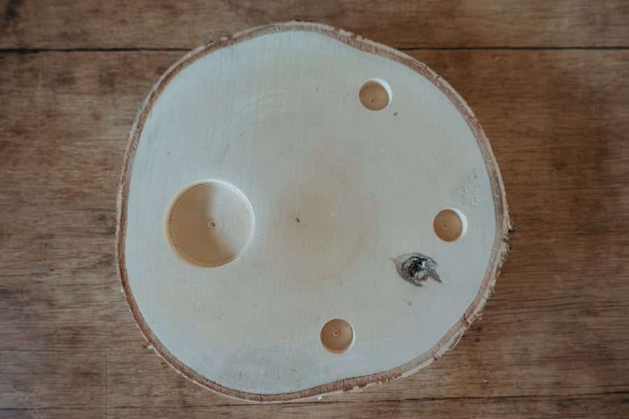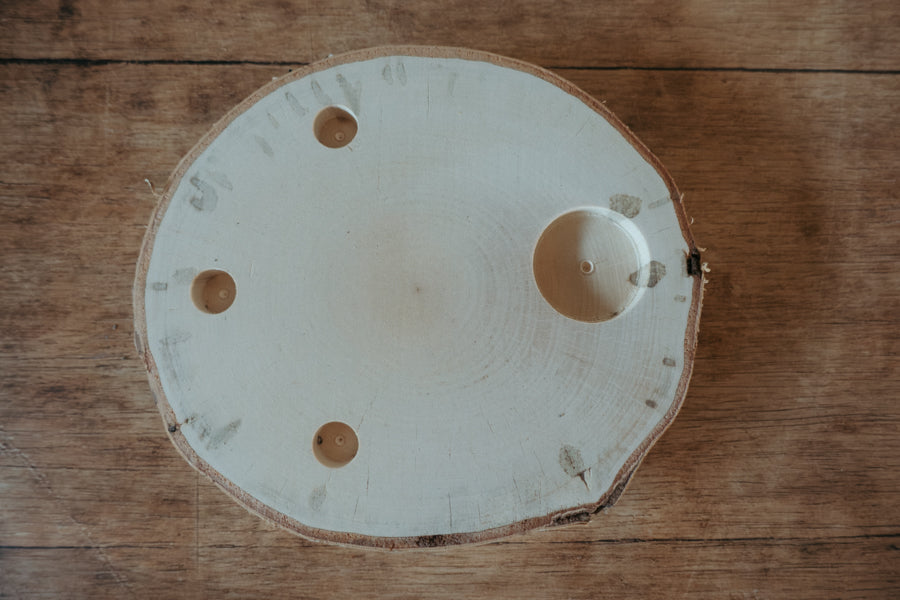 Vielseitig nutzbar: Ausgestattet mit 3 gebohrten Löchern (passend für gängige Stecker wie von Grimms) und einer extra Vertiefung für ein Teelicht.