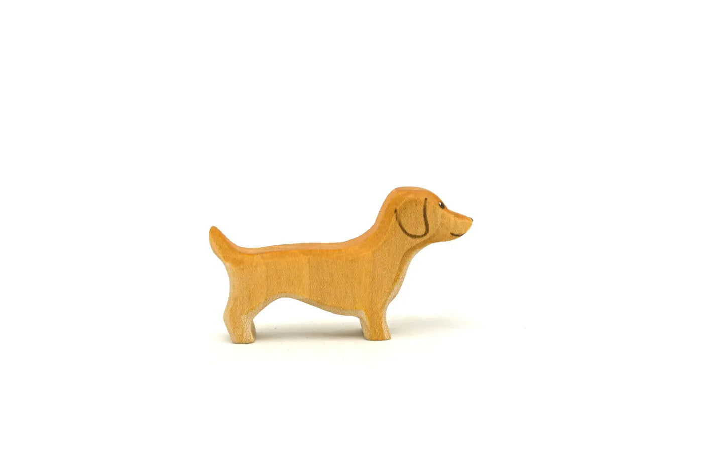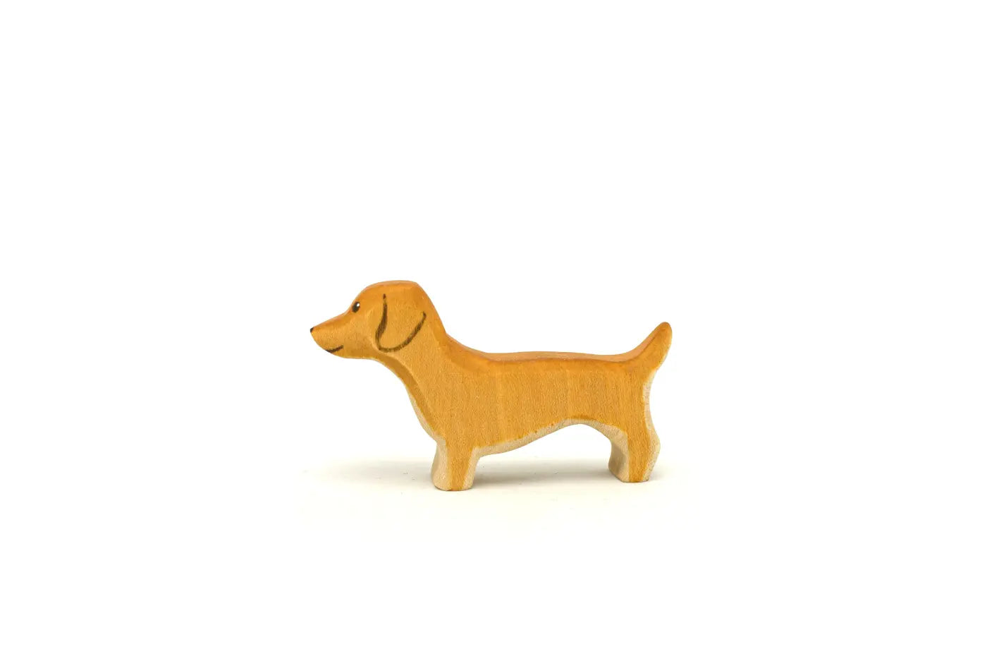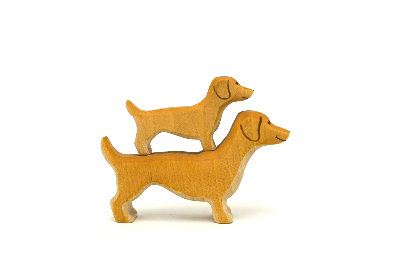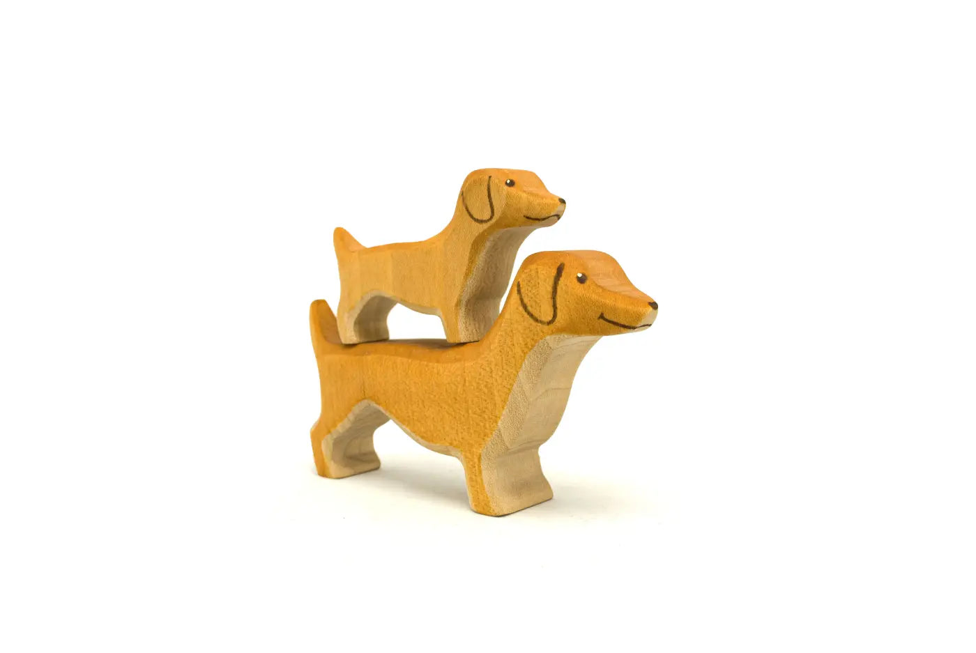 Der kleine HolzWald Dackelwelpe weicht nicht von der Seite einer Mama. Mit seinem weichen, braunen Fell, den großen Knopfaugen und den tapsigen Pfötchen erkundet er neugierig die Welt. Seine langen Schlappohren wackeln bei jedem Schritt, und sein Blick ist voller Staunen und Entdeckerfreude. Noch ein bisschen wackelig auf den Beinen, folgt er seiner Mama überallhin und schnuppert begeistert an allem, was ihm begegnet.