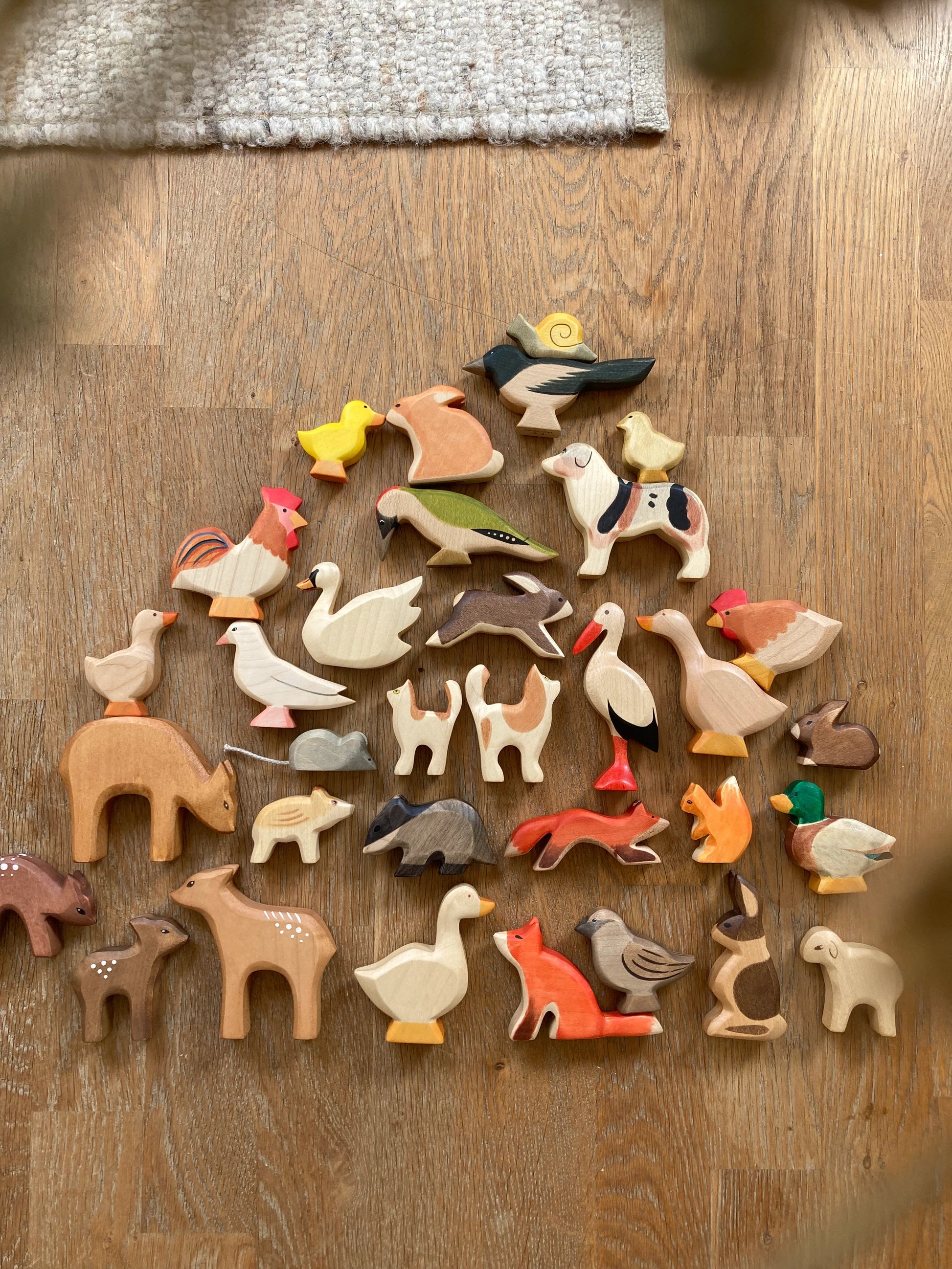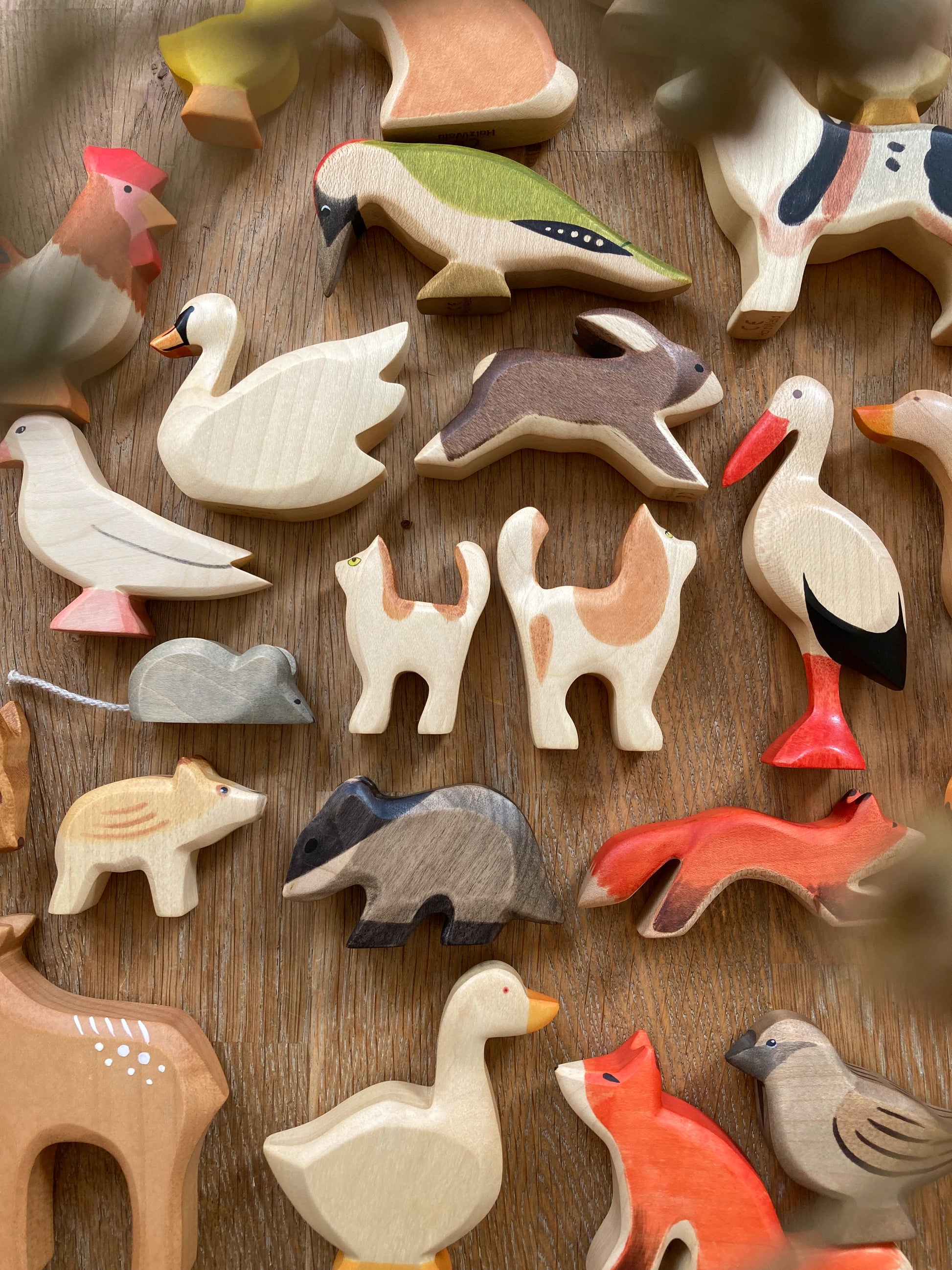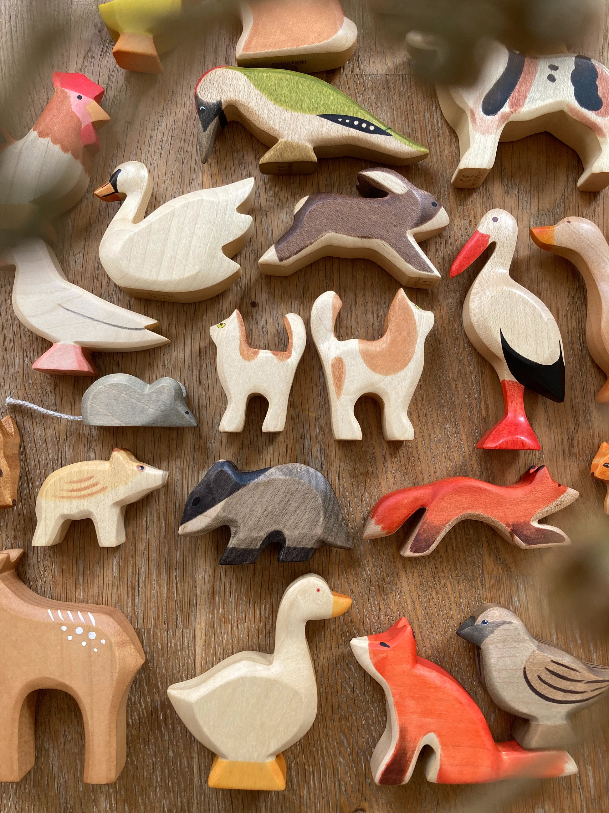 Die wunderschönen Figuren werden in einer kleinen Manufaktur in Georgien gefertigt, die bereits seit 1997 hochwertiges und pädagogisch wertvolles Holzspielzeug produziert. Mit viel Liebe und Hingabe wird dort seit über 35 Jahren Spielzeug hergestellt, das die Seele der Tiere und Menschen erfasst. Es werden ausschließlich einheimische Hölzer höchster Qualität verwendet. Die Kanten werden abgerundet und in mehreren Arbeitsgängen feingeschliffen, so dass sie angenehm und weich in der Hand liegen. Am Ende werden sie mit Naturfarben (Biofa) bemalt und schließlich mit hochwertigem Öl poliert. Gelebte Inklusion in der kleinen Gemeinschaft, faire Entlohnung und ein gutes und freundschaftliches Arbeitsklima zeichnen die Werkstatt aus. So entstehen nachhaltige Spielzeuge die von Generation zu Generation geliebt und weitergegeben werden. Jedes Spielzeug ist einfach genug, um das fantasievolle Spielen anzuregen, aber genau genug, um realistisch zu sein. Auf diese Weise wird Sinn für Schönheit und Fantasie der Kinder gefördert.