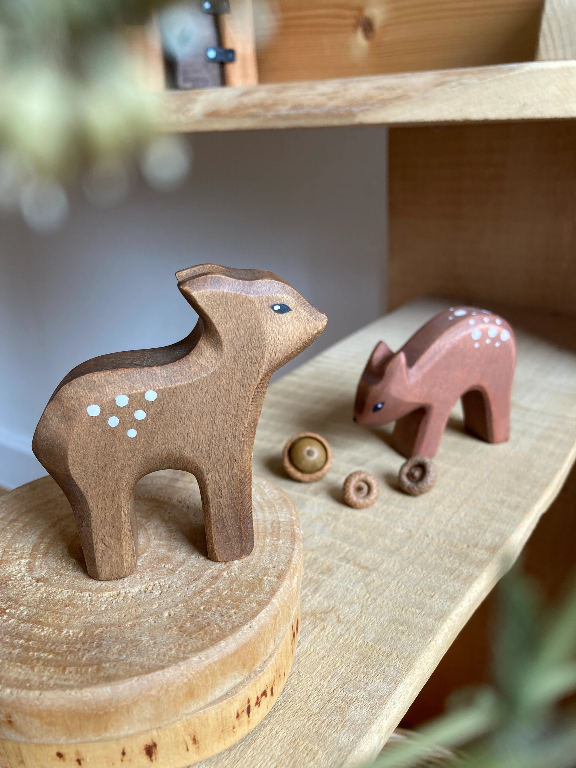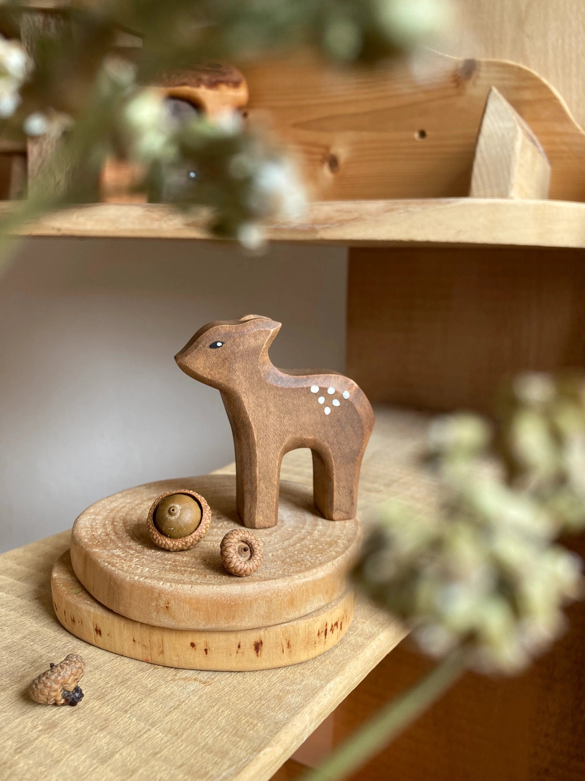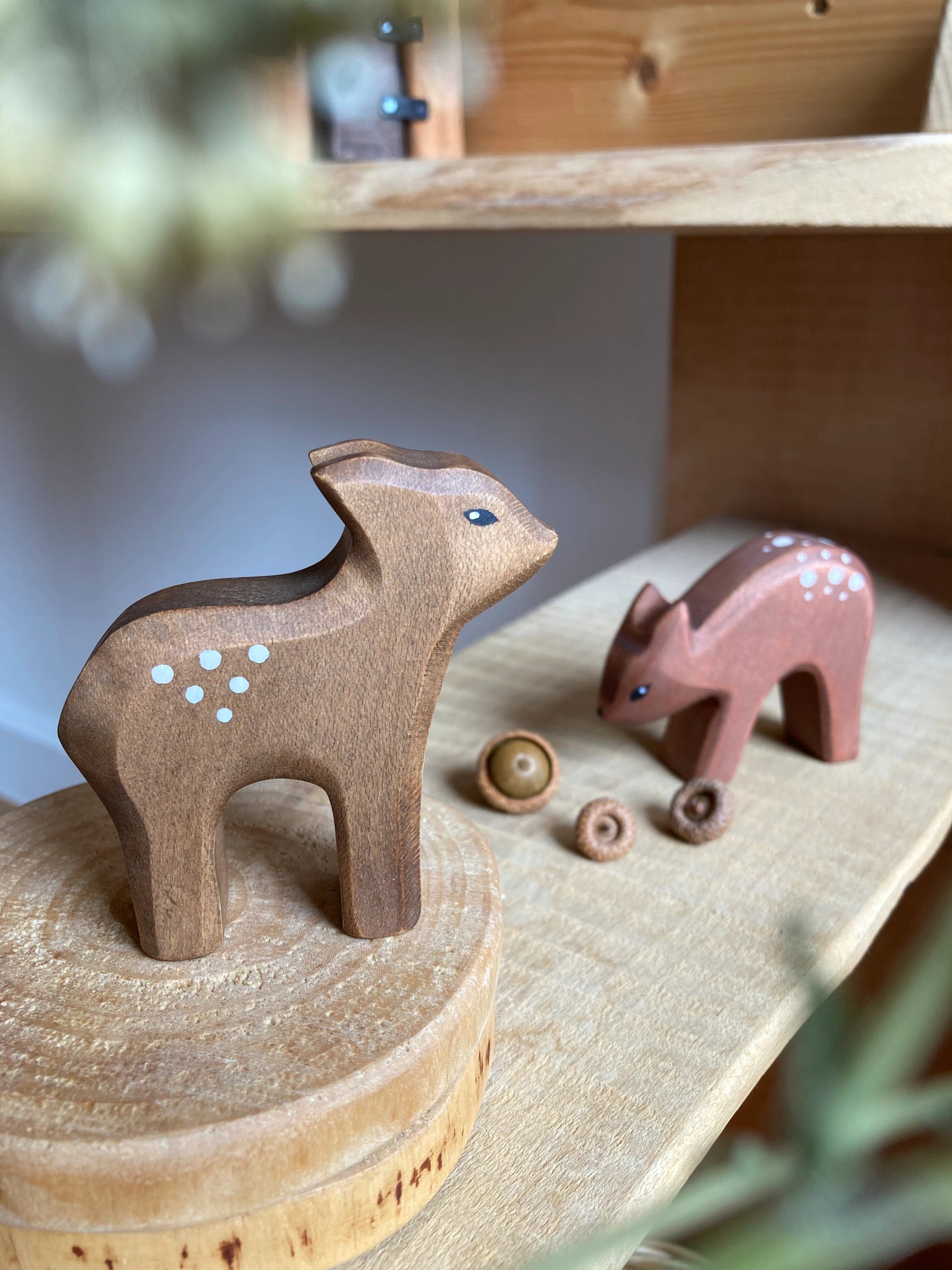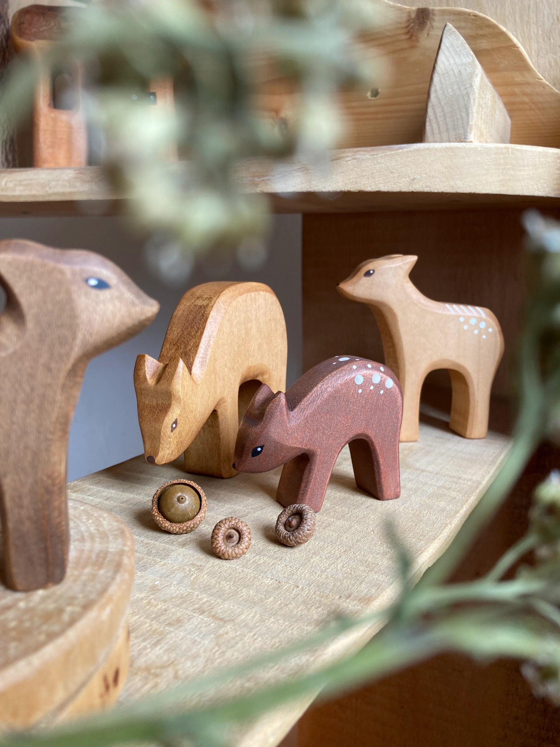 Die wunderschönen Figuren werden in einer kleinen Manufaktur in Georgien gefertigt, die bereits seit 1997 hochwertiges und pädagogisch wertvolles Holzspielzeug produziert. Mit viel Liebe und Hingabe wird dort seit über 35 Jahren Spielzeug hergestellt, das die Seele der Tiere und Menschen erfasst. Es werden ausschließlich einheimische Hölzer höchster Qualität verwendet. Die Kanten werden abgerundet und in mehreren Arbeitsgängen feingeschliffen, so dass sie angenehm und weich in der Hand liegen. Am Ende werden sie mit Naturfarben (Biofa) bemalt und schließlich mit hochwertigem Öl poliert. Gelebte Inklusion in der kleinen Gemeinschaft, faire Entlohnung und ein gutes und freundschaftliches Arbeitsklima zeichnen die Werkstatt aus. So entstehen nachhaltige Spielzeuge die von Generation zu Generation geliebt und weitergegeben werden. Jedes Spielzeug ist einfach genug, um das fantasievolle Spielen anzuregen, aber genau genug, um realistisch zu sein. Auf diese Weise wird Sinn für Schönheit und Fantasie der Kinder gefördert.