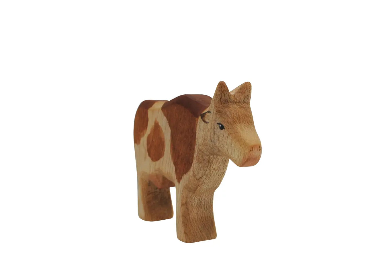 Die liebenswürdige Bauernhofbewohnerin steht am liebsten den ganzen Tag auf der Weide und frisst Gräser und Kräuter oder geht mit ihren Jungen spazieren. Sie hat helles Fell mit braunen Kuhflecken, aufgestellte Ohren und einen aufmerksam gehobene Kopf, um nach ihrem Nachwuchs zu schauen.