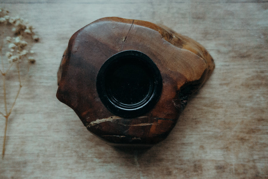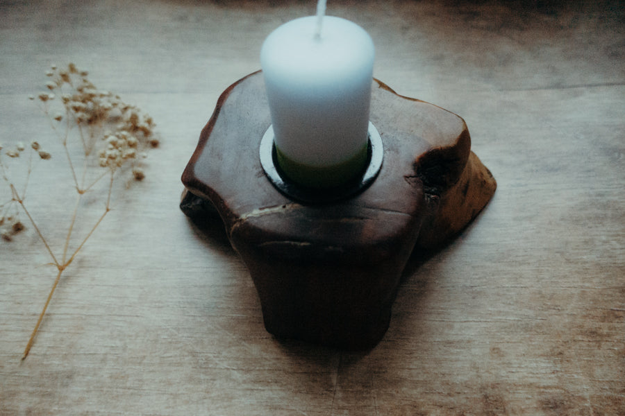 Kerzenhalter aus leichtem Zedernholz. Für die Größe eignen sich unsere Lebenslichter gut.