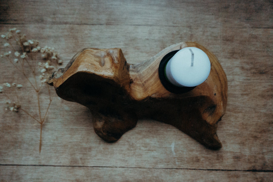 Kerzenhalter aus Zedernholz. Für die Größe eignen sich unsere Lebenslichter gut.