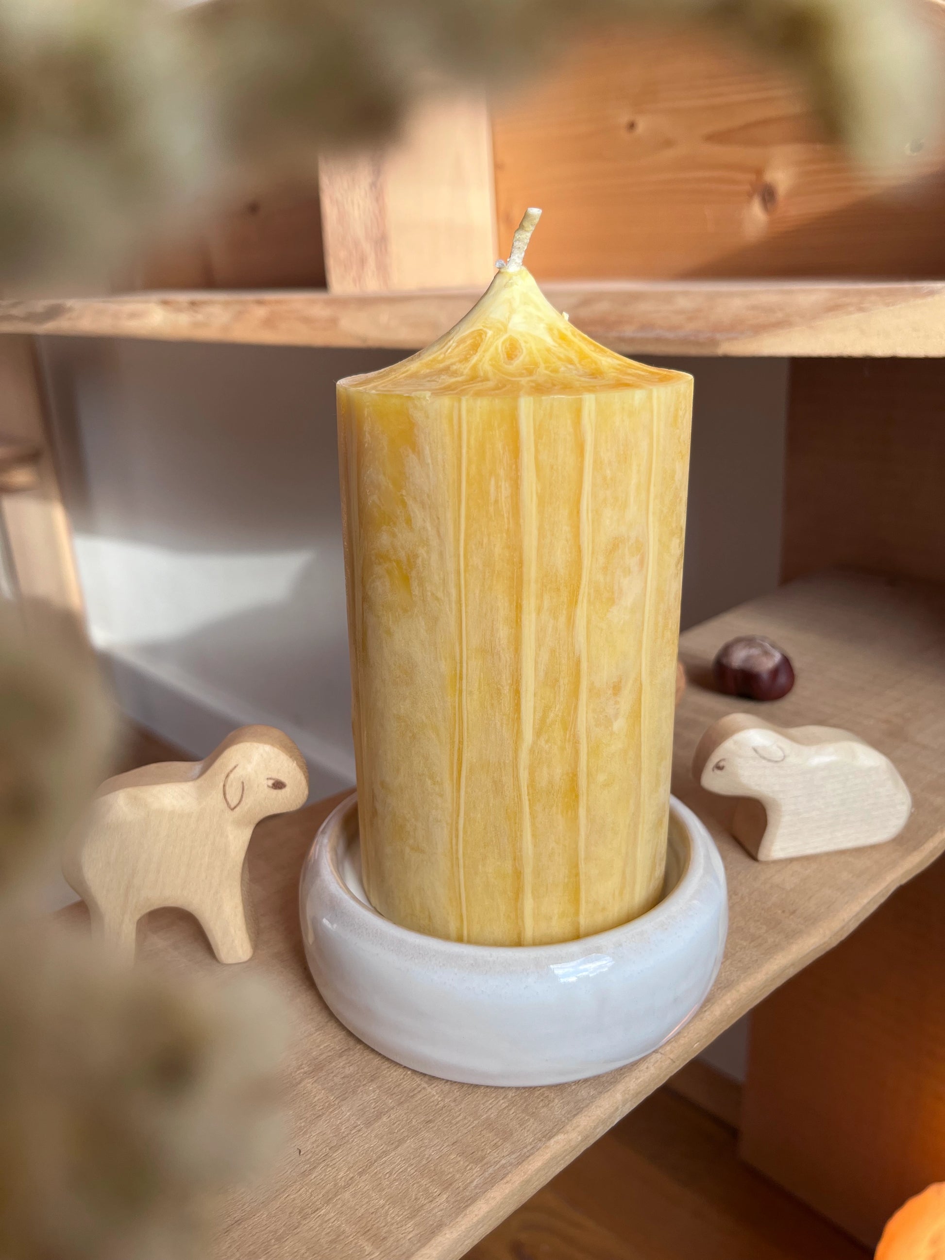 Liebevoll gestalteter und handgemachter Kerzenteller