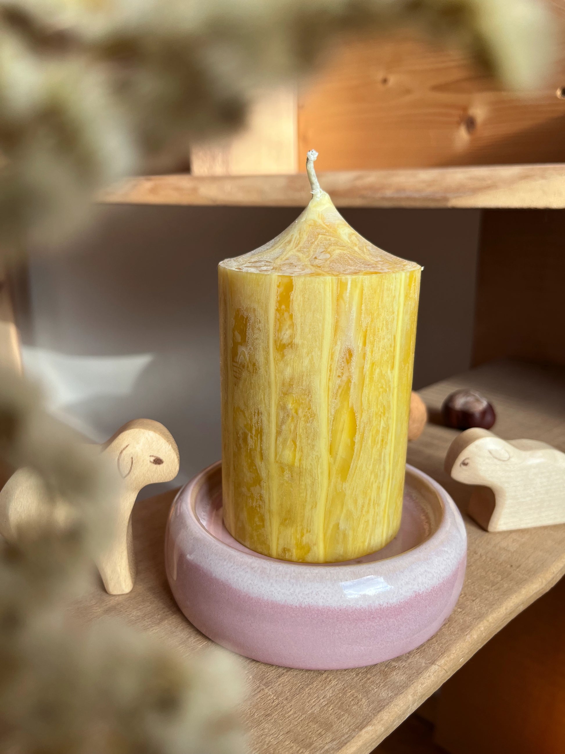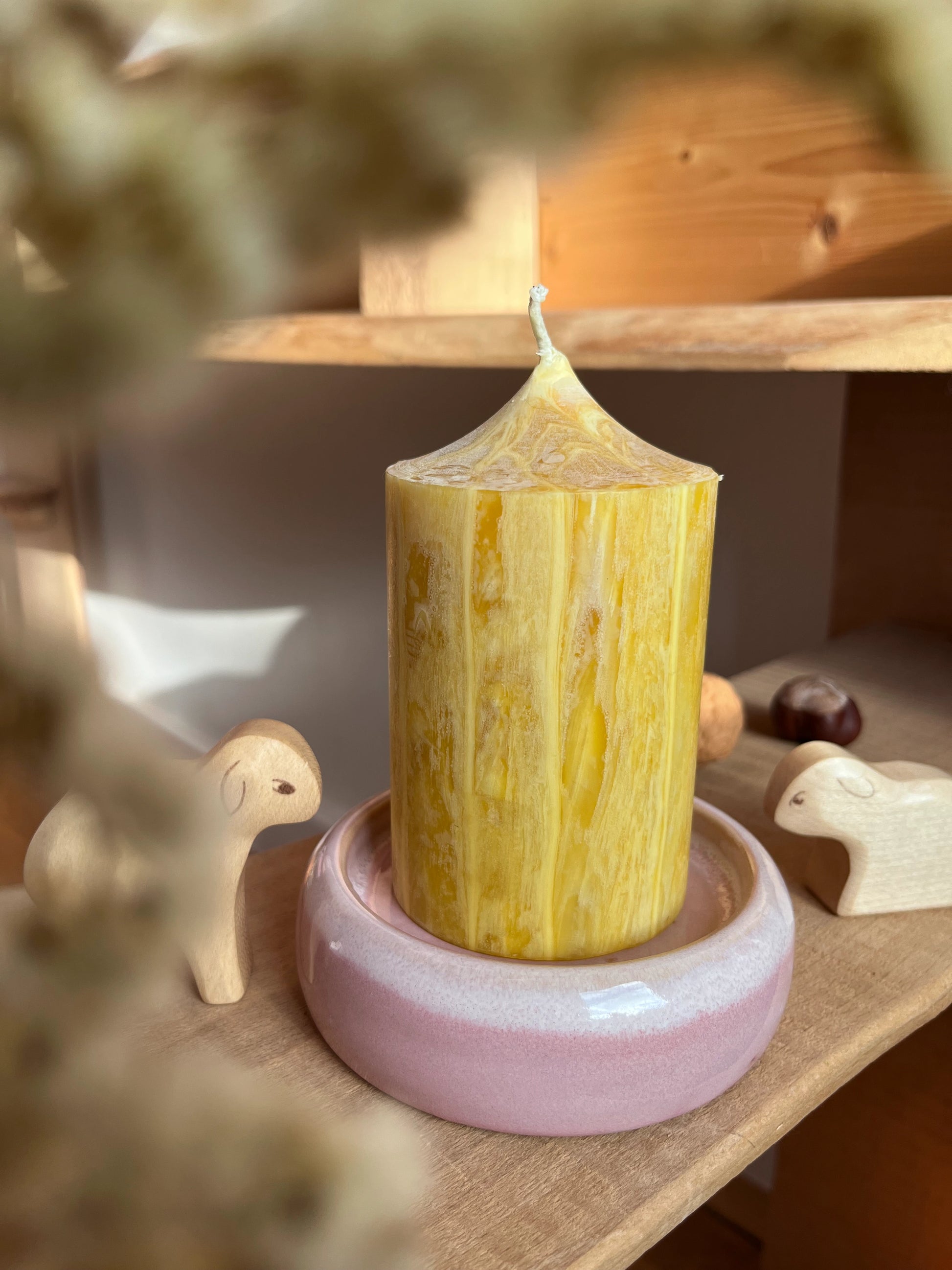 Liebevoll gestalteter und handgemachter Kerzenteller