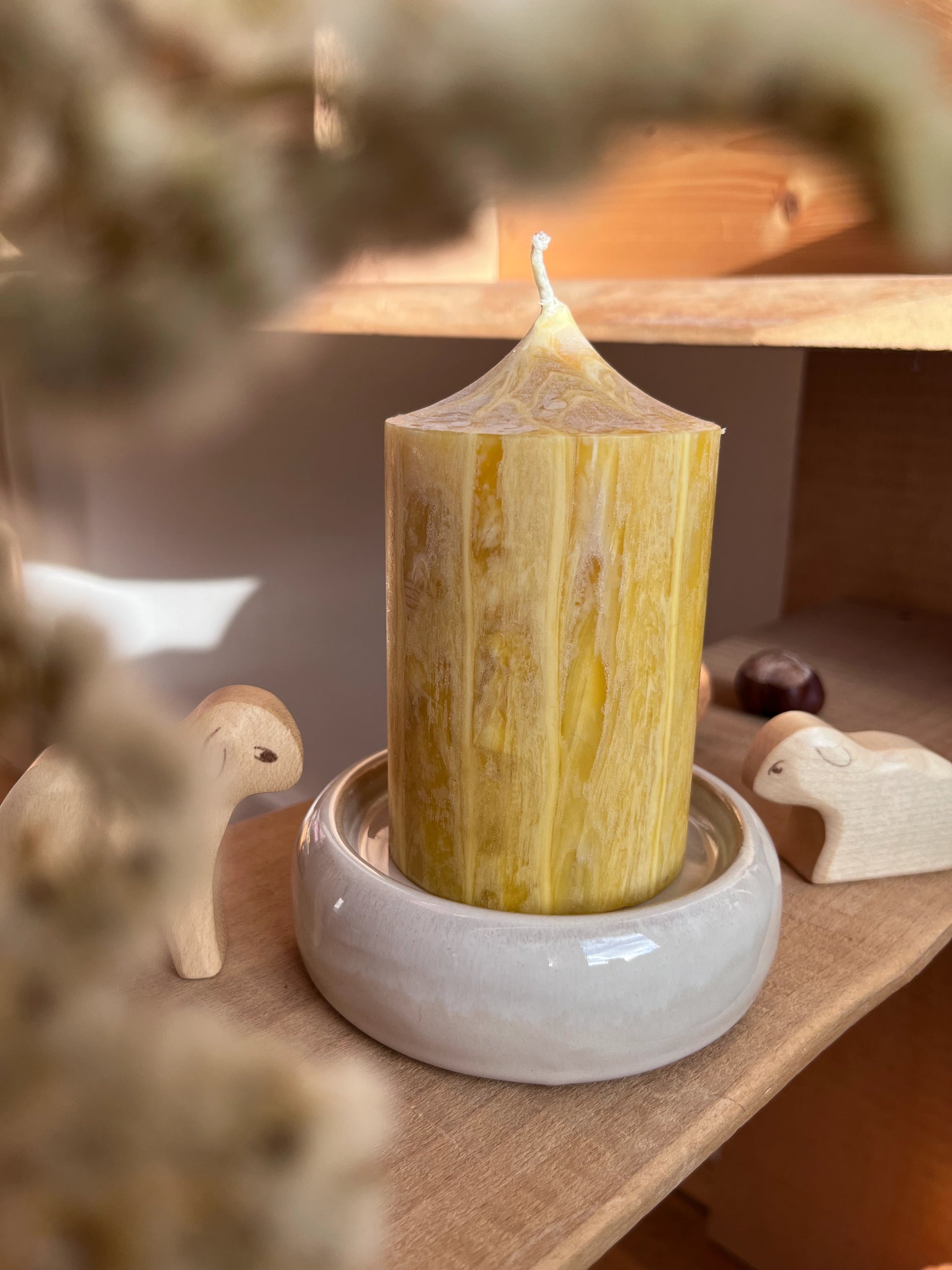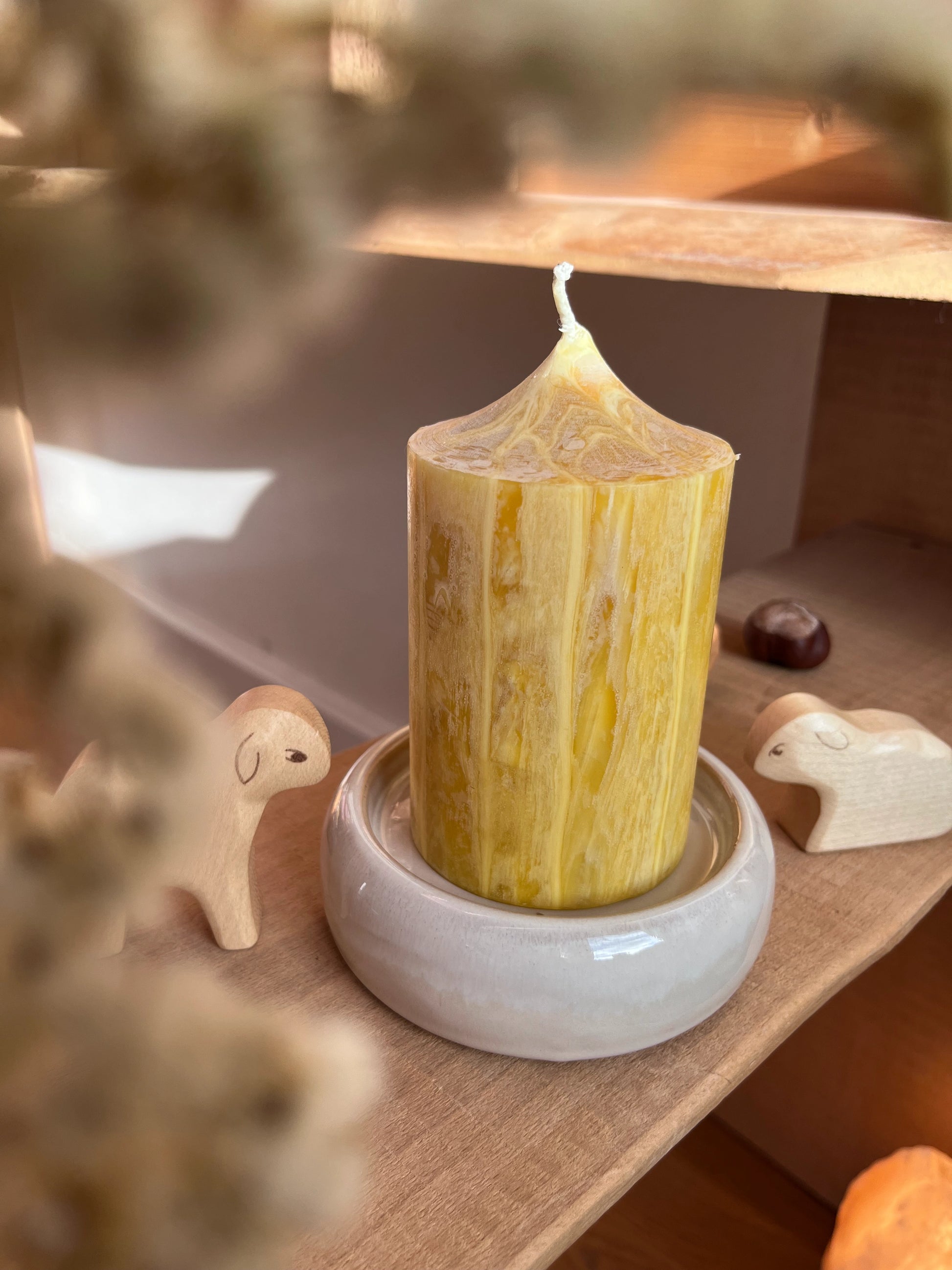 Liebevoll gestalteter und handgemachter Kerzenteller