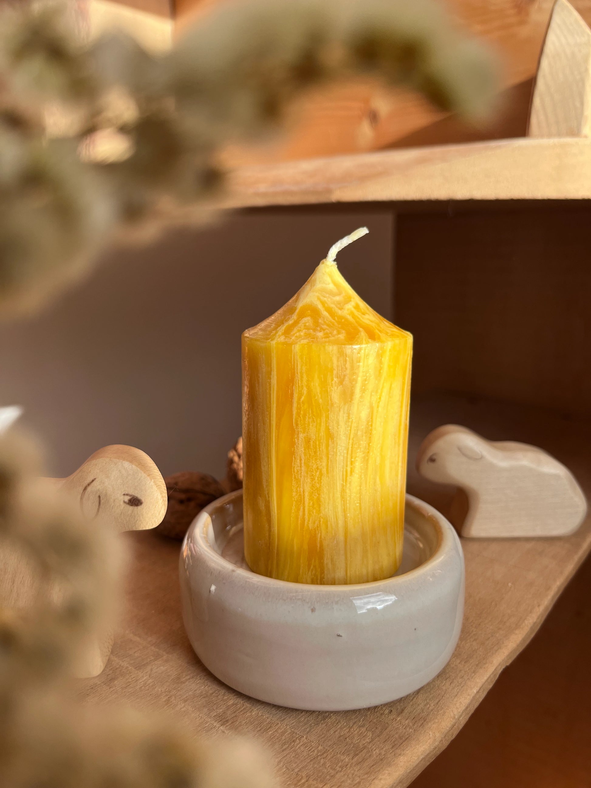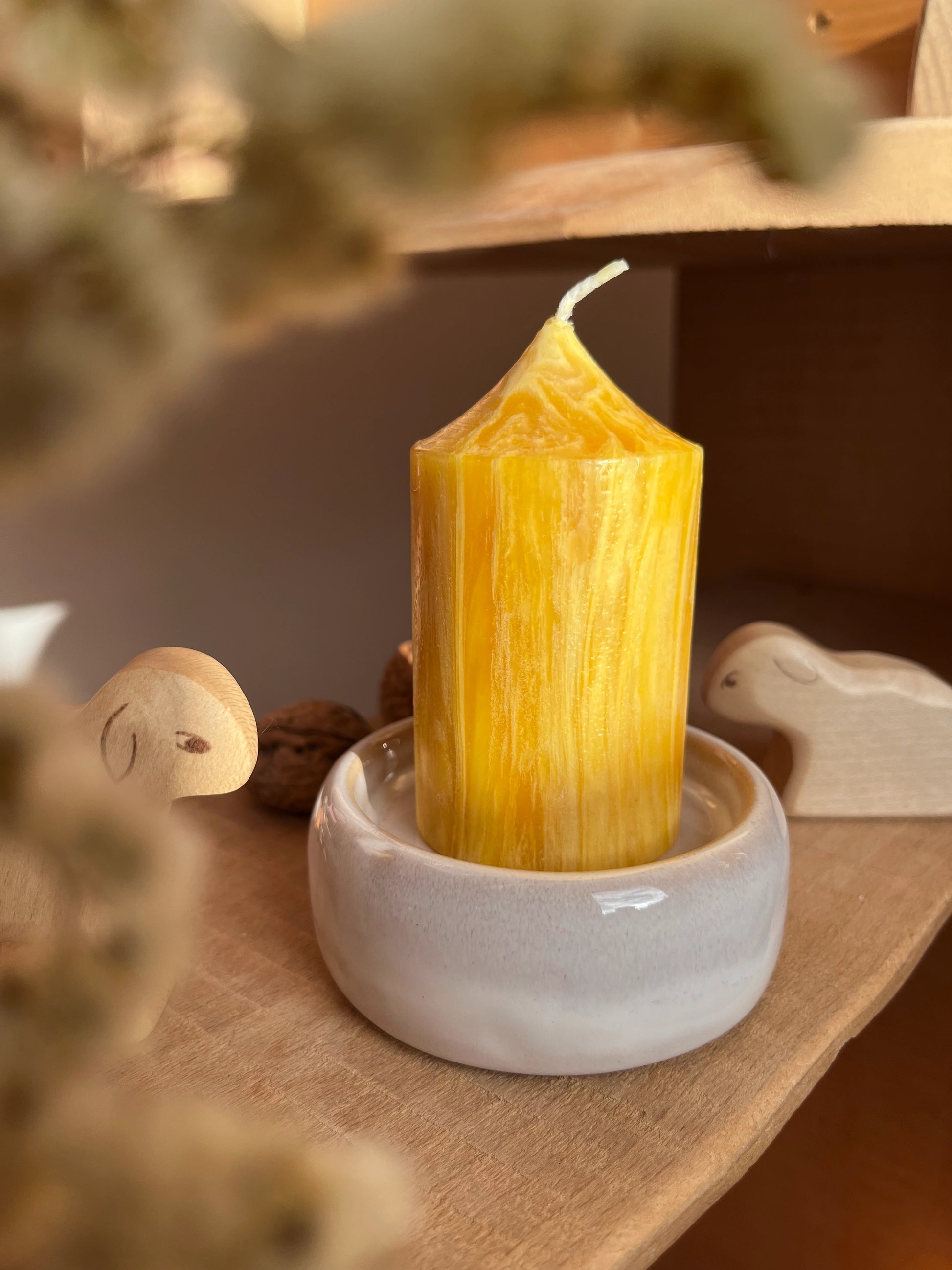 Liebevoll gestalteter und handgemachter Kerzenteller