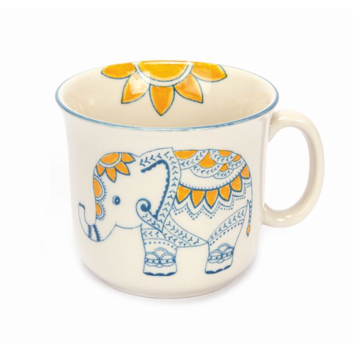 Keramik, handbemalt, geeignet für Mikrowelle und Spülmaschine, beige/blau/gelb, H 7 cm, Ø 8 cm
