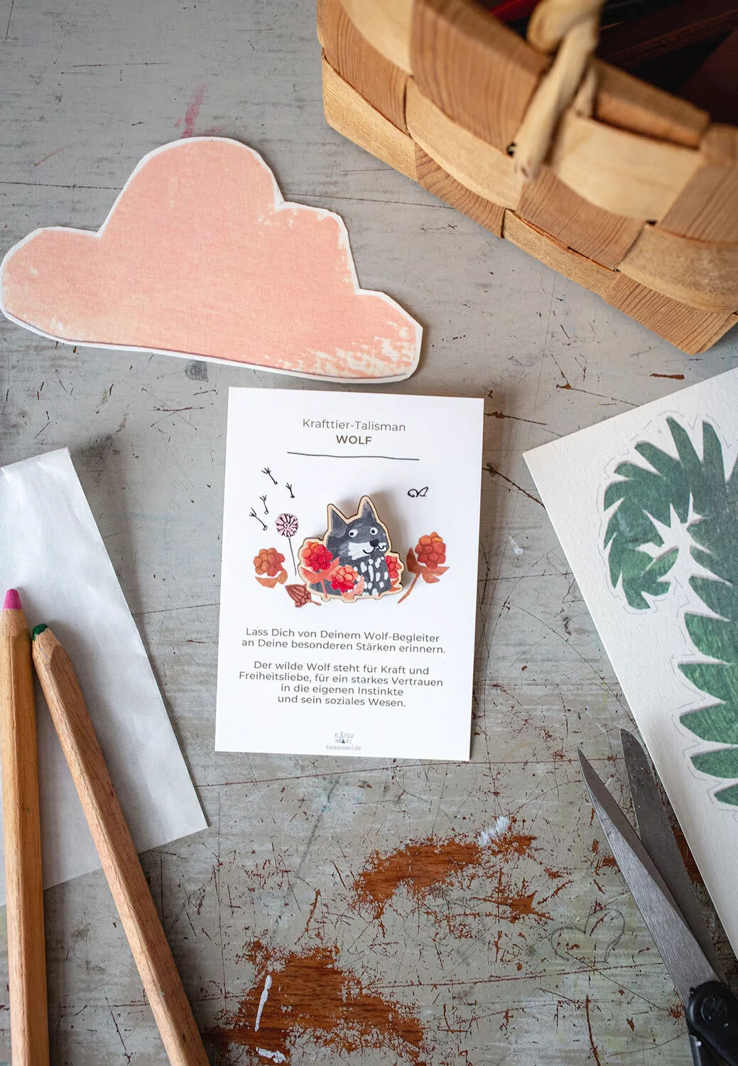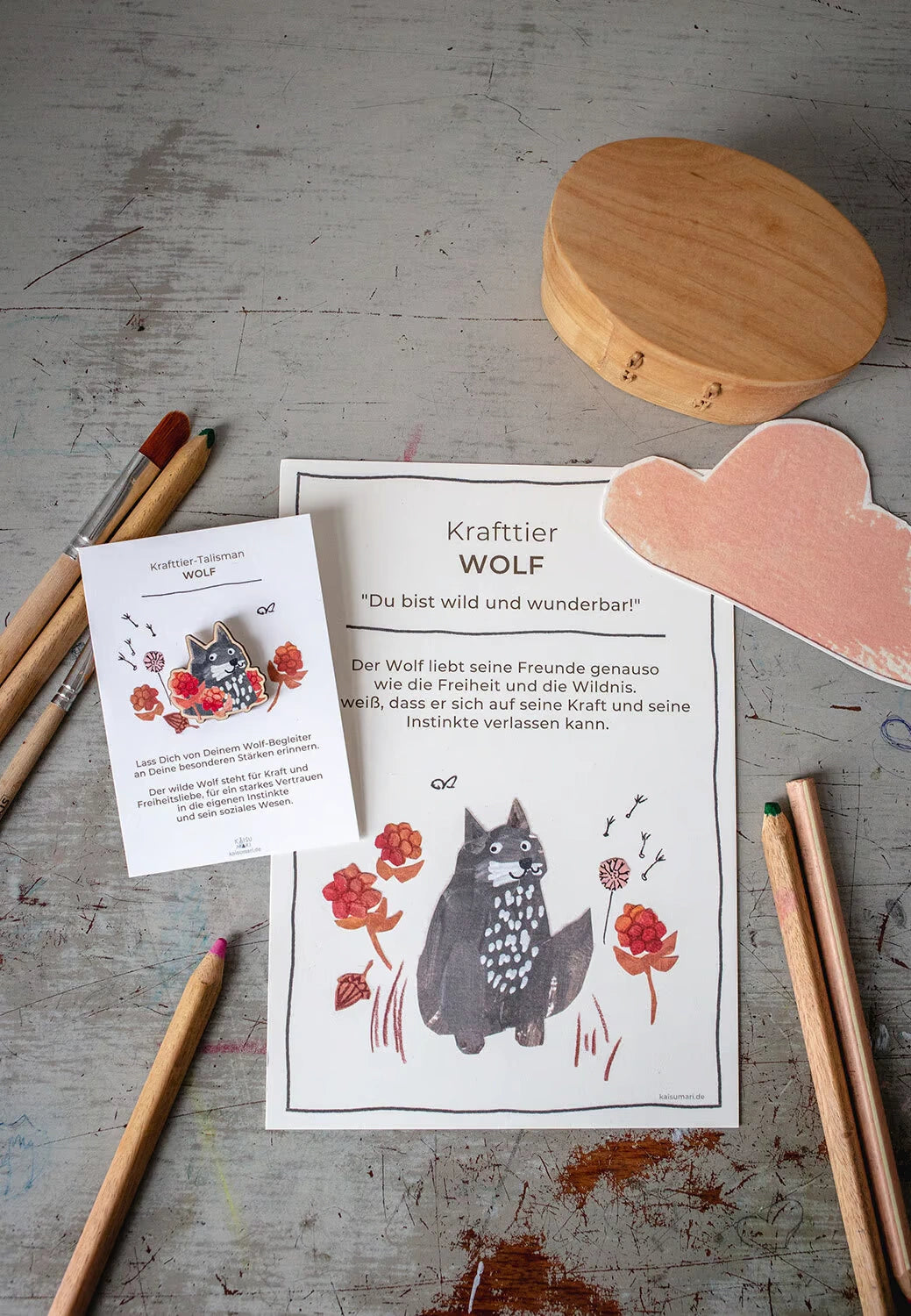 Dieser kleine schmunzelnde Wolf begleitet Dich als Talisman durch den Tag und erinnert Dich immer mal wieder an Deine eigenen Stärken. Als Krafttier steht der Wolf für Kraft, Freiheitsliebe, Vertrauen in die eigenen Instinkte und ein soziales Wesen.