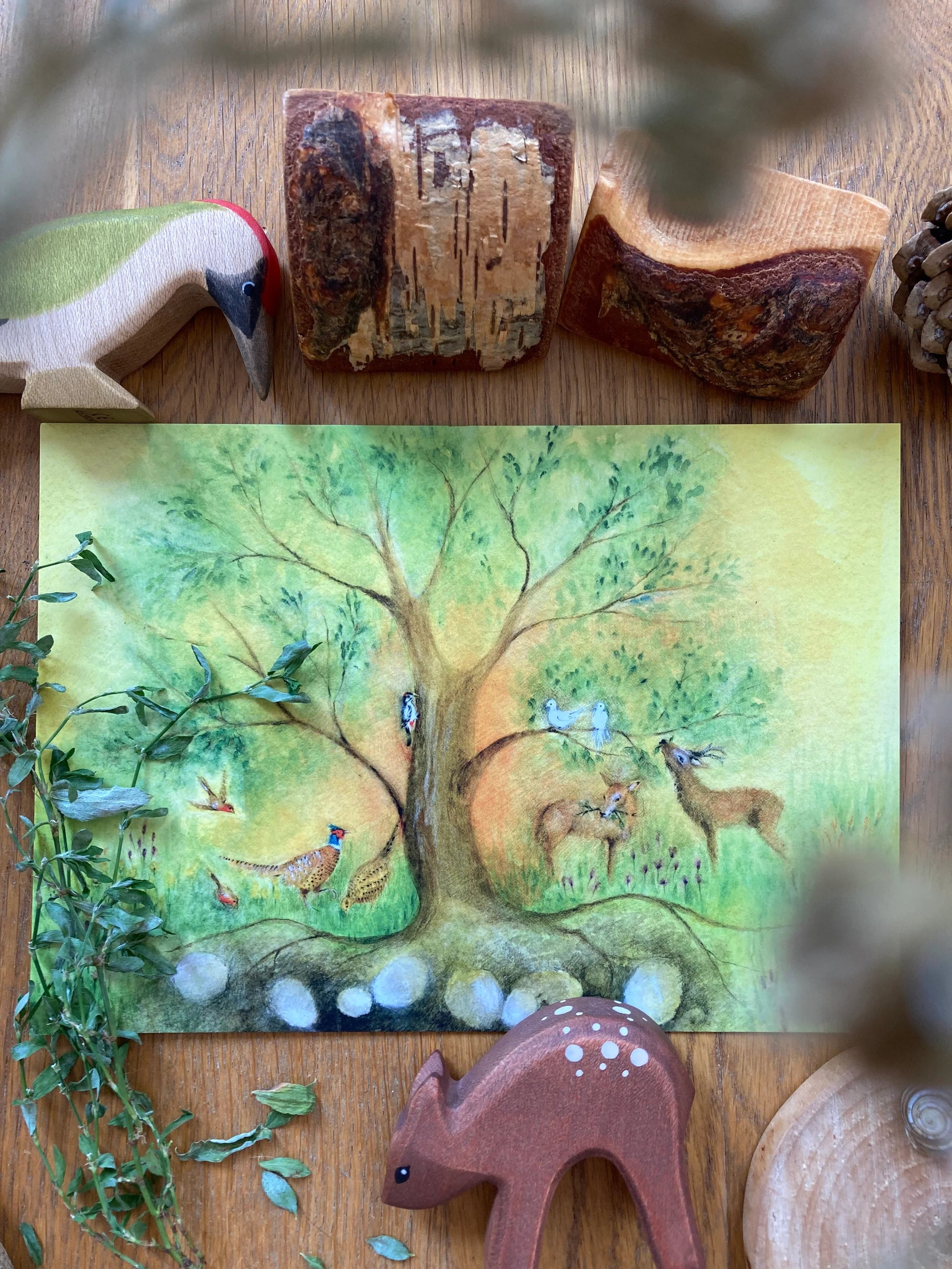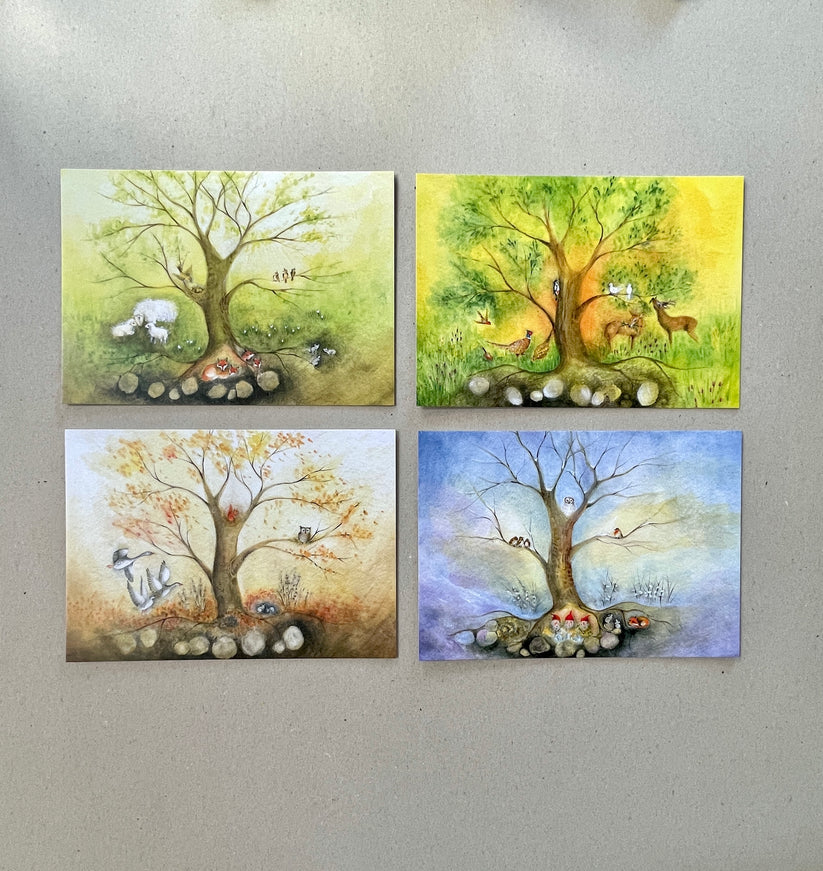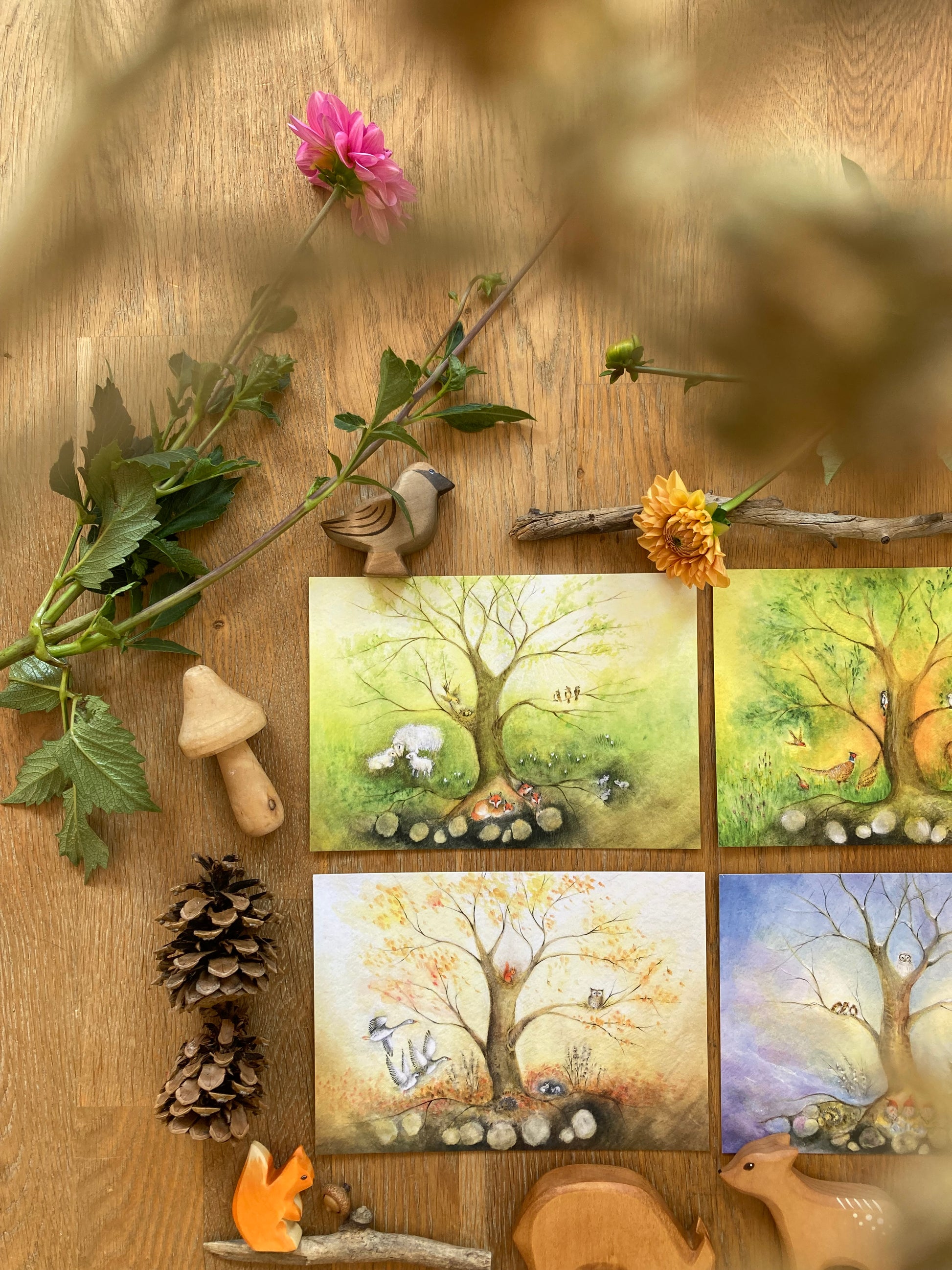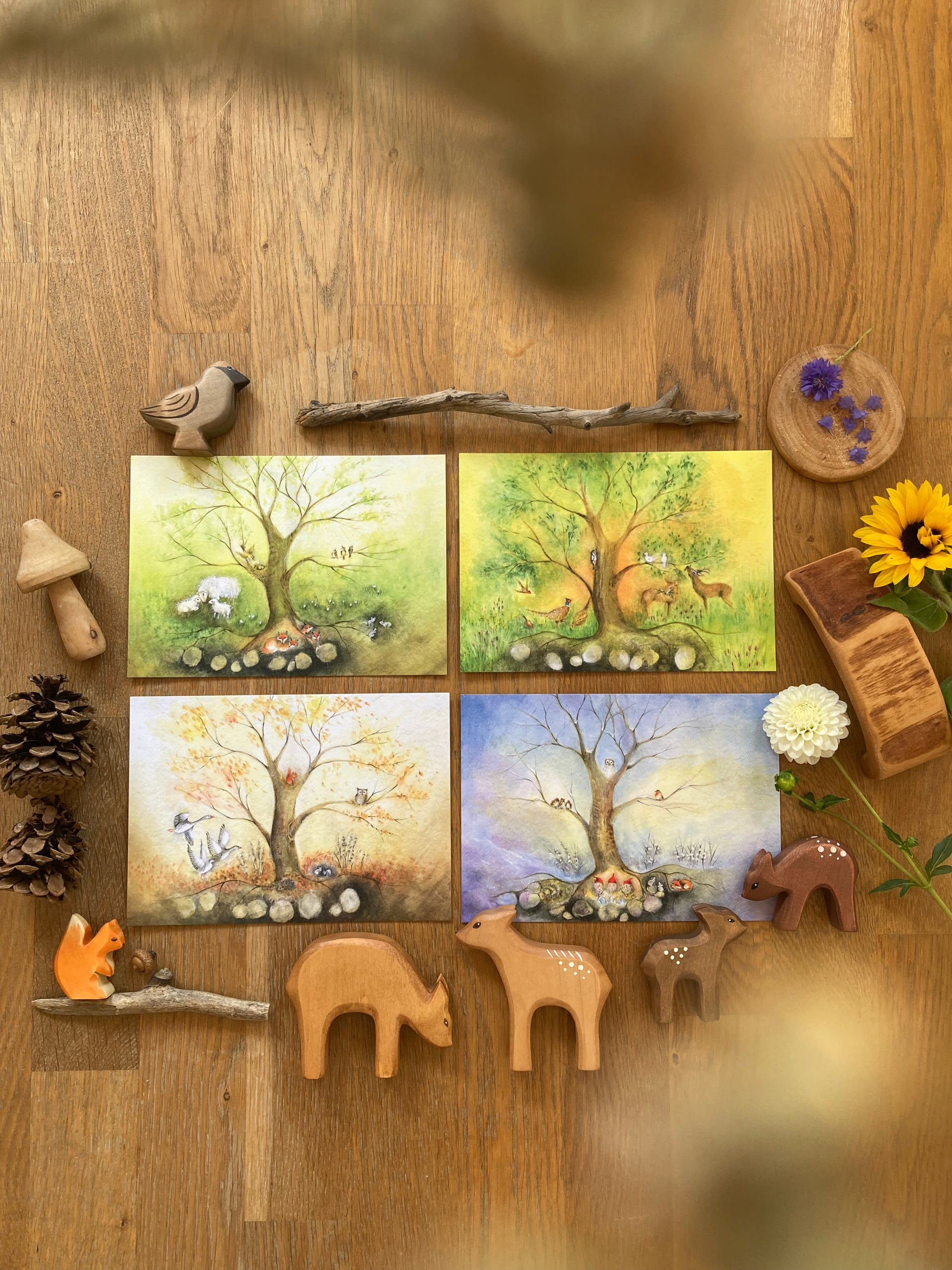 4 wunderschöne große und stabile Kunstkarten: Frühling, Sommer, Herbst und Winter.