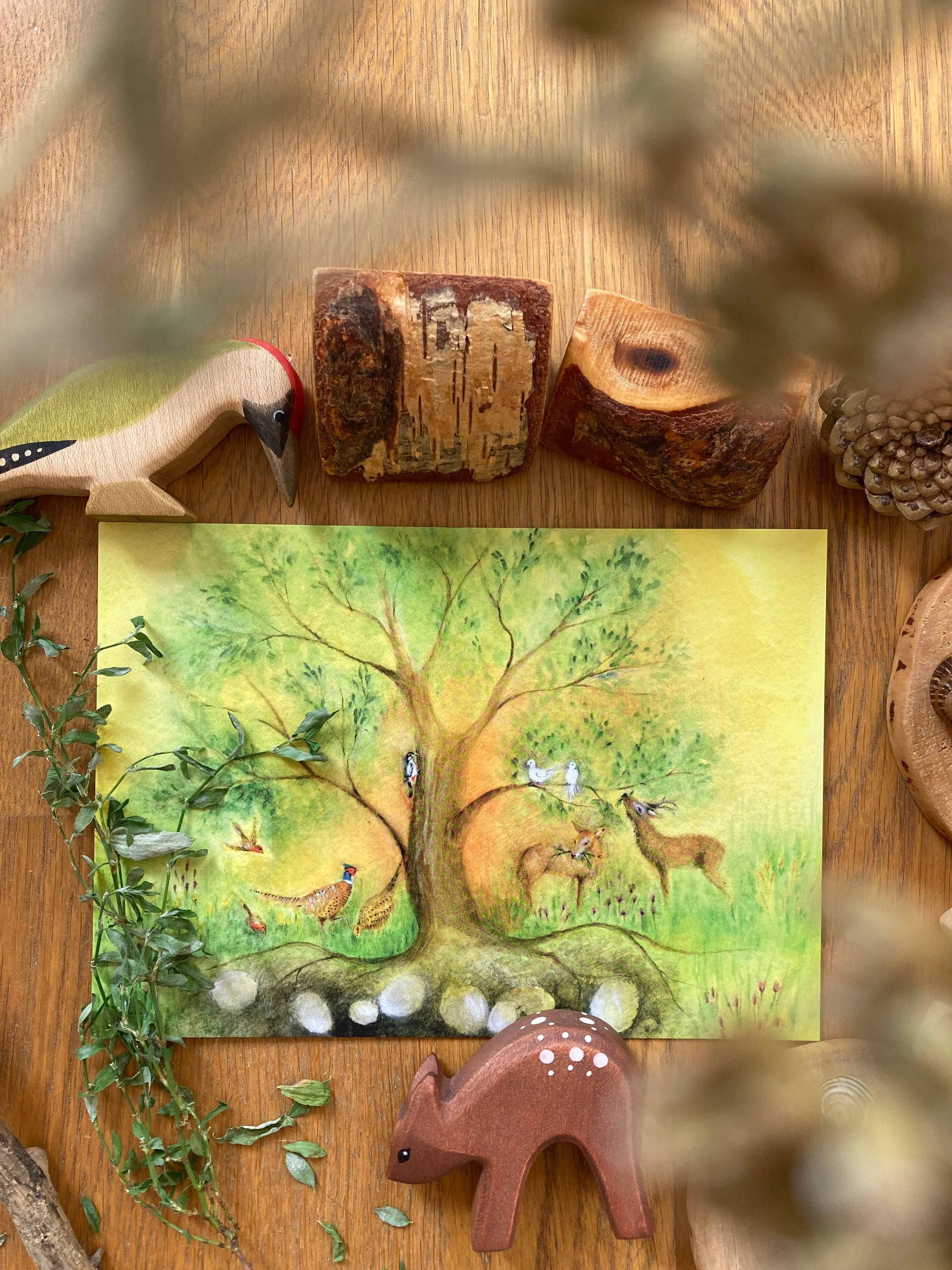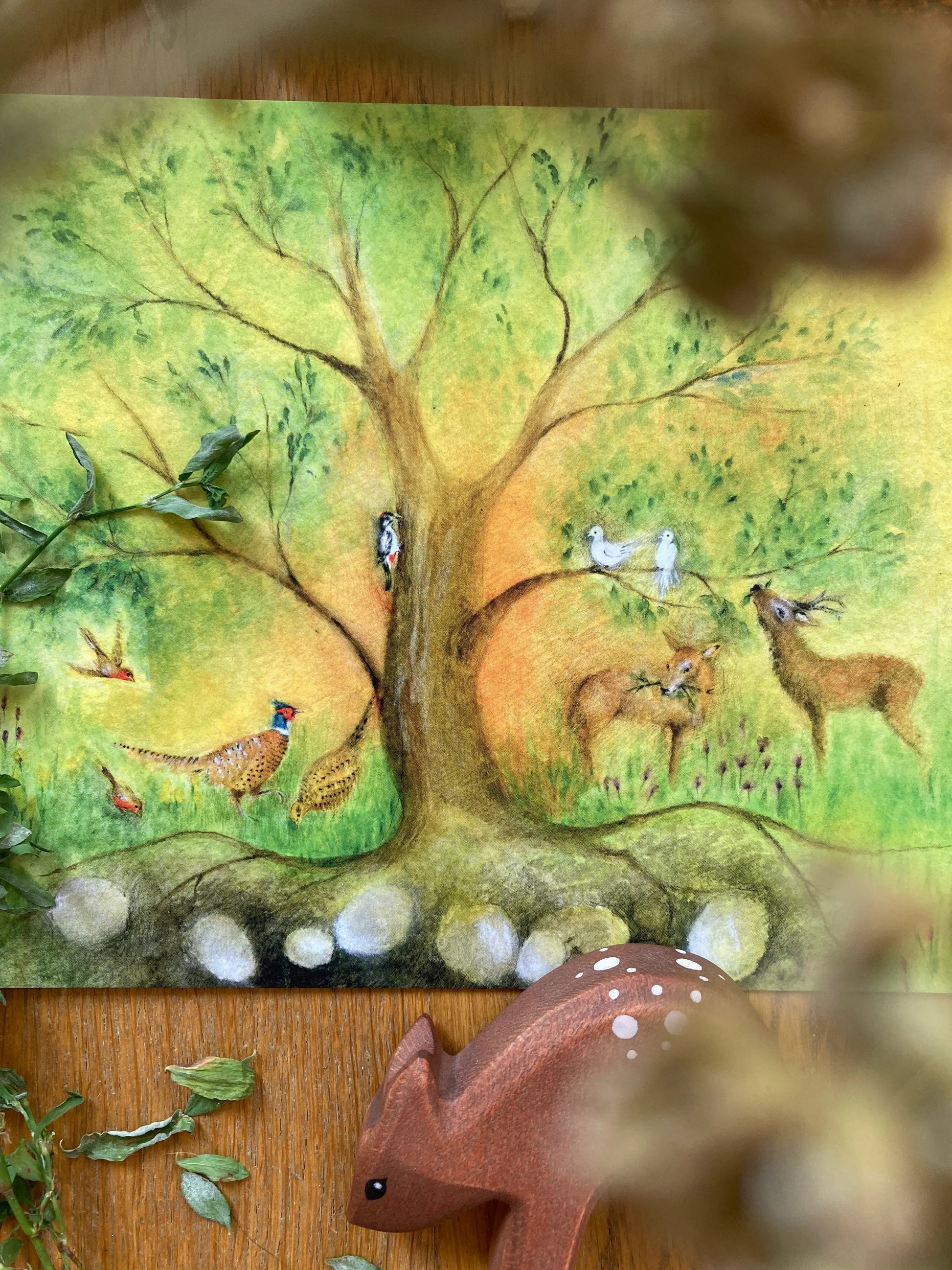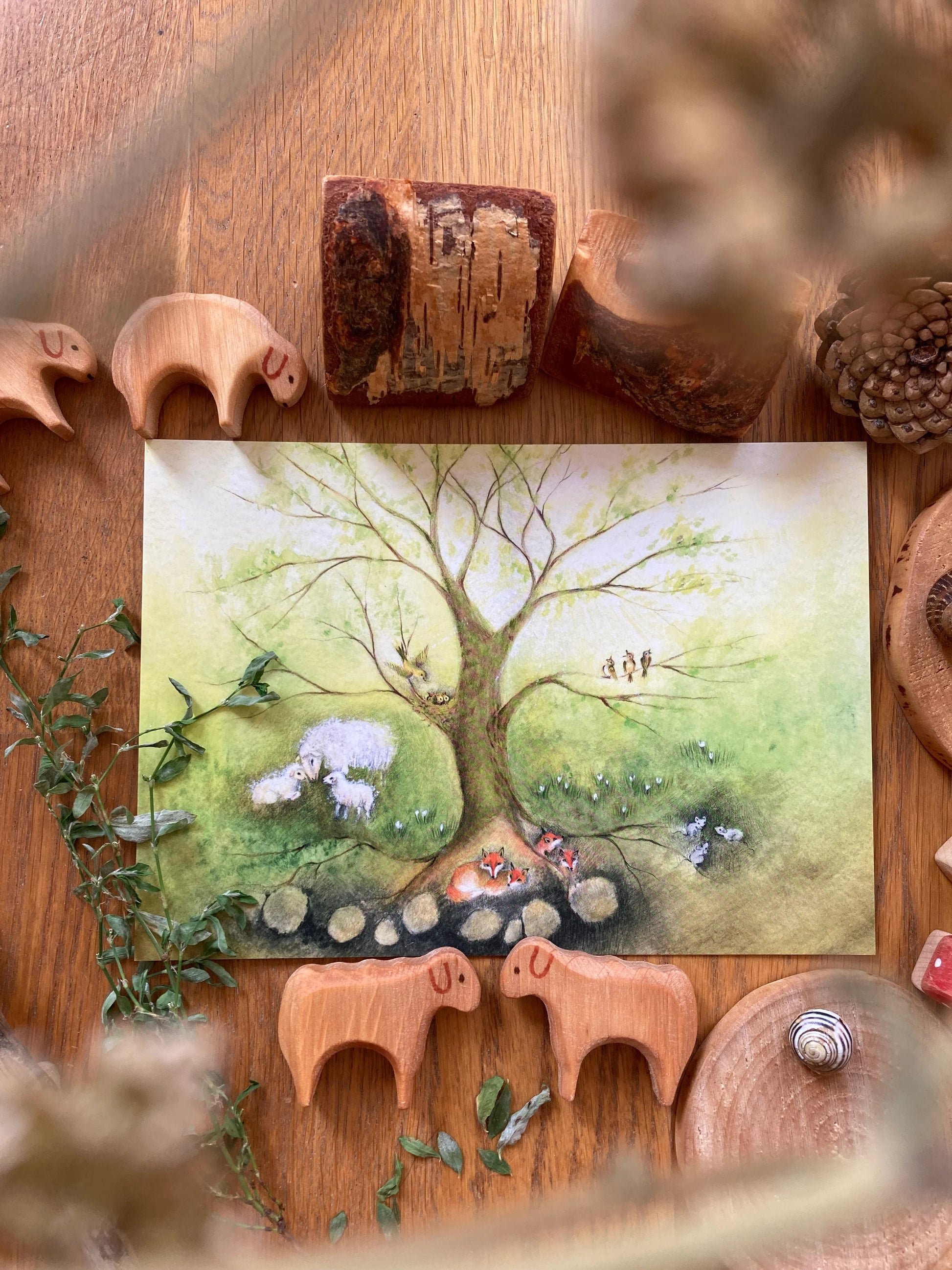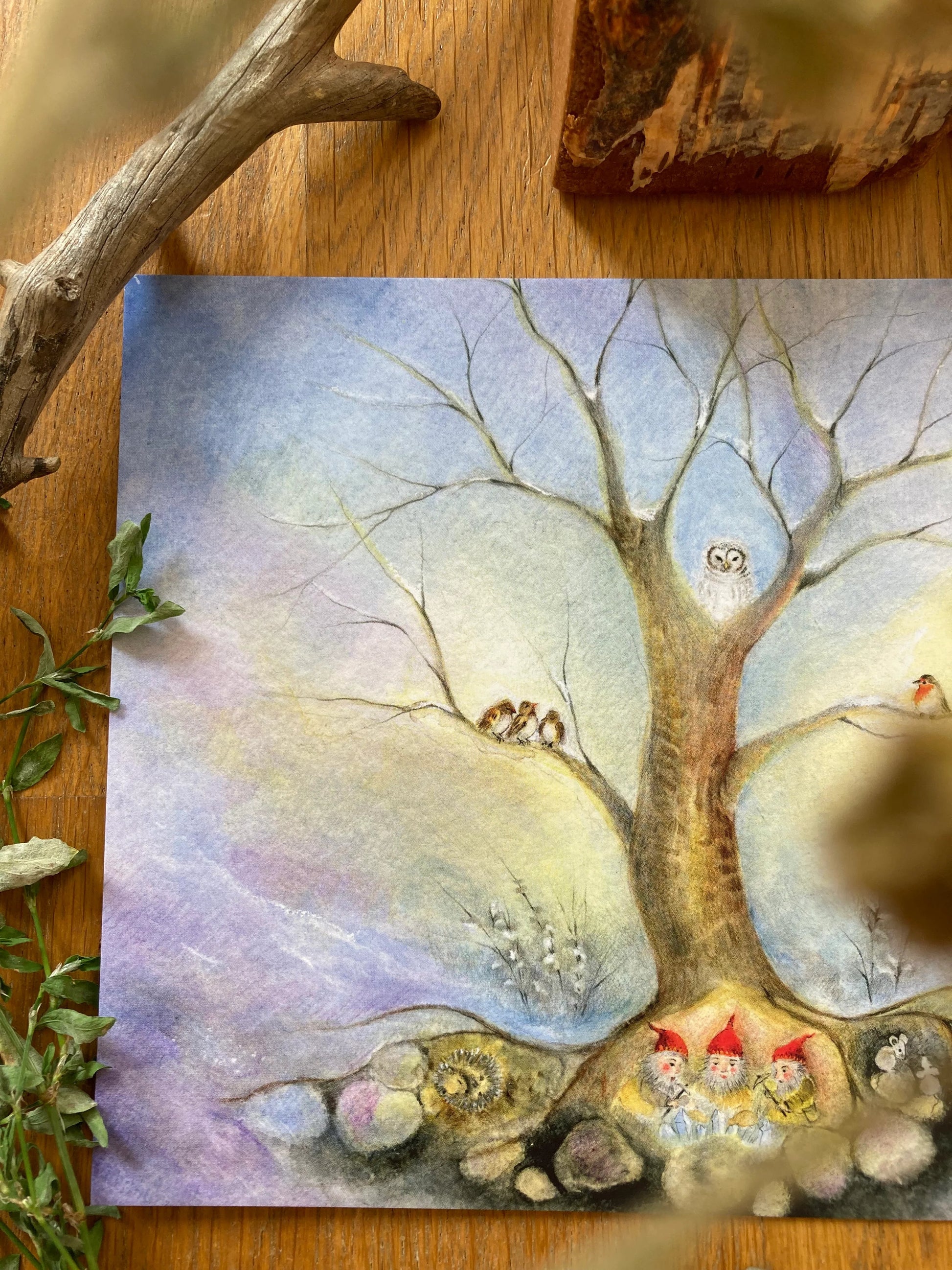 4 wunderschöne große und stabile Kunstkarten: Frühling, Sommer, Herbst und Winter.