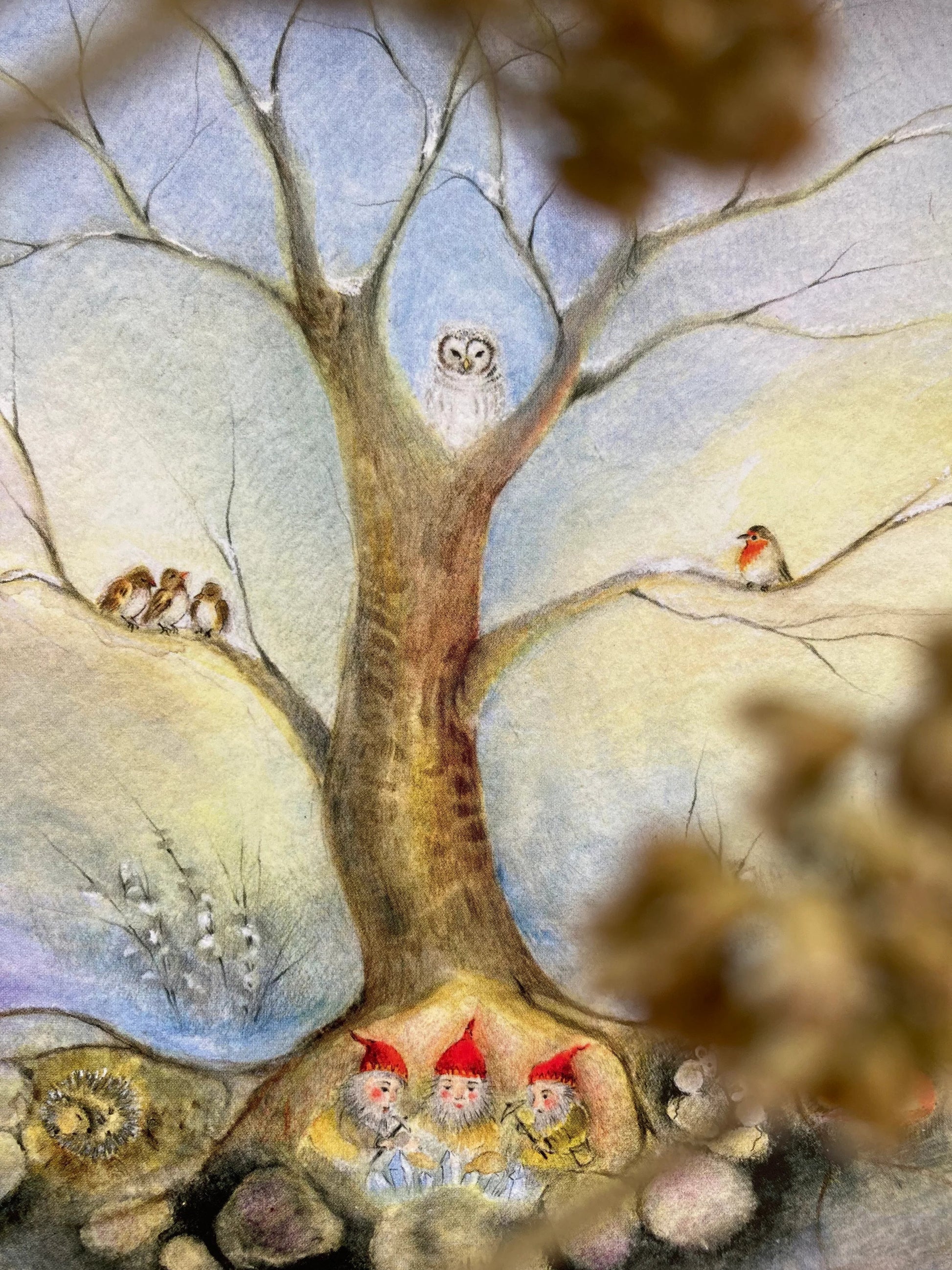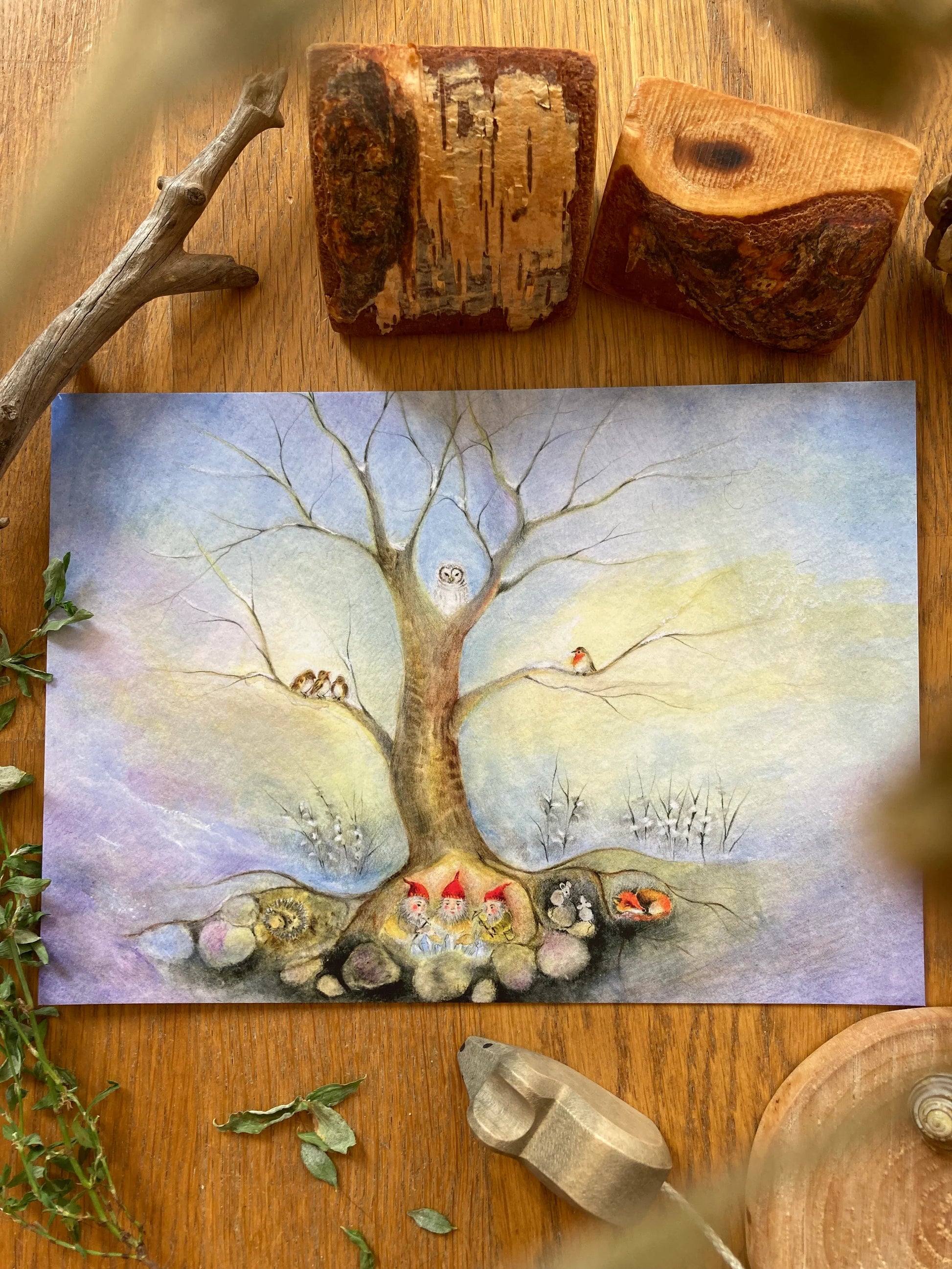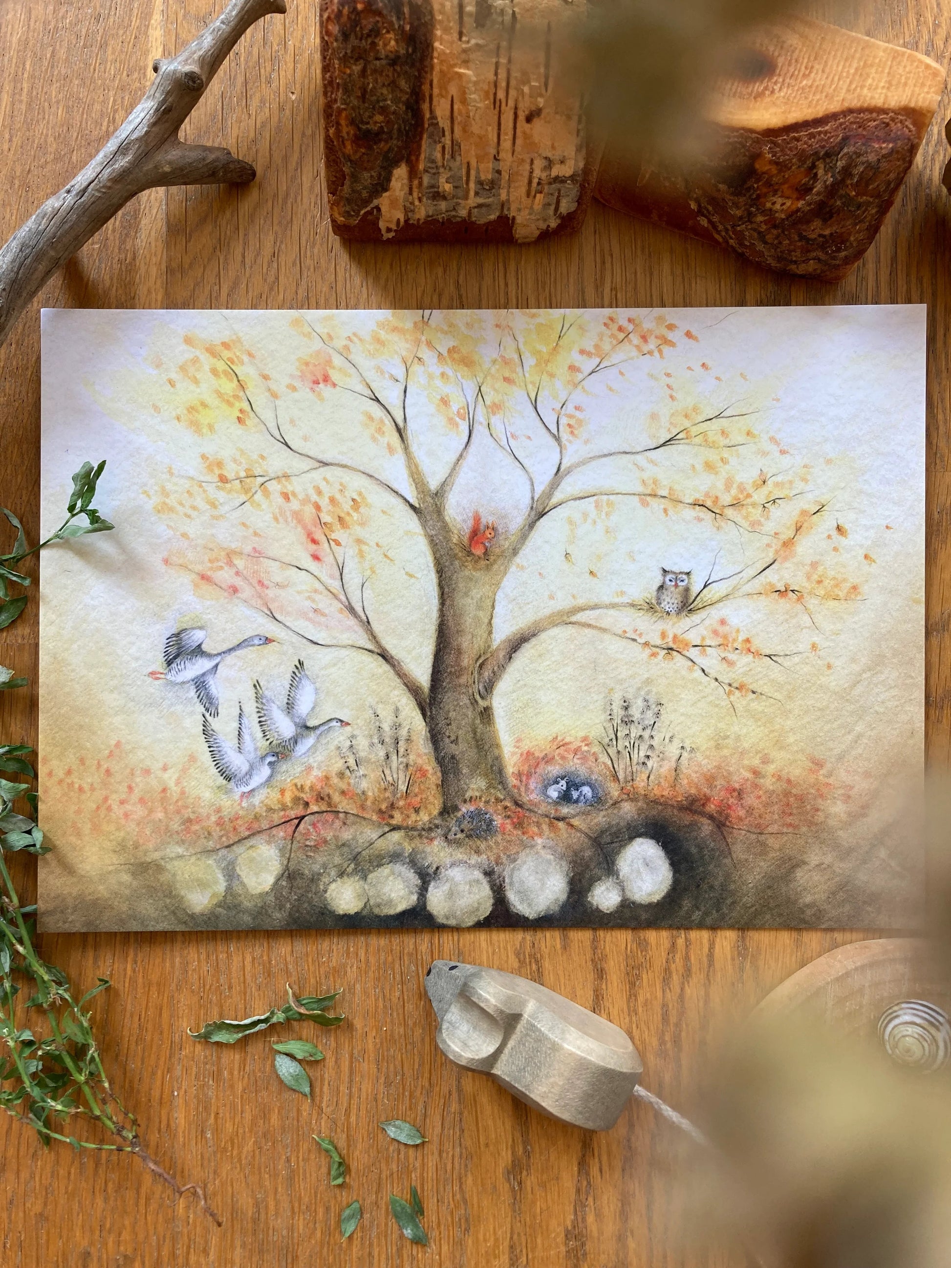 Mit Aquarell und Buntstift gemalt. DIN A4.