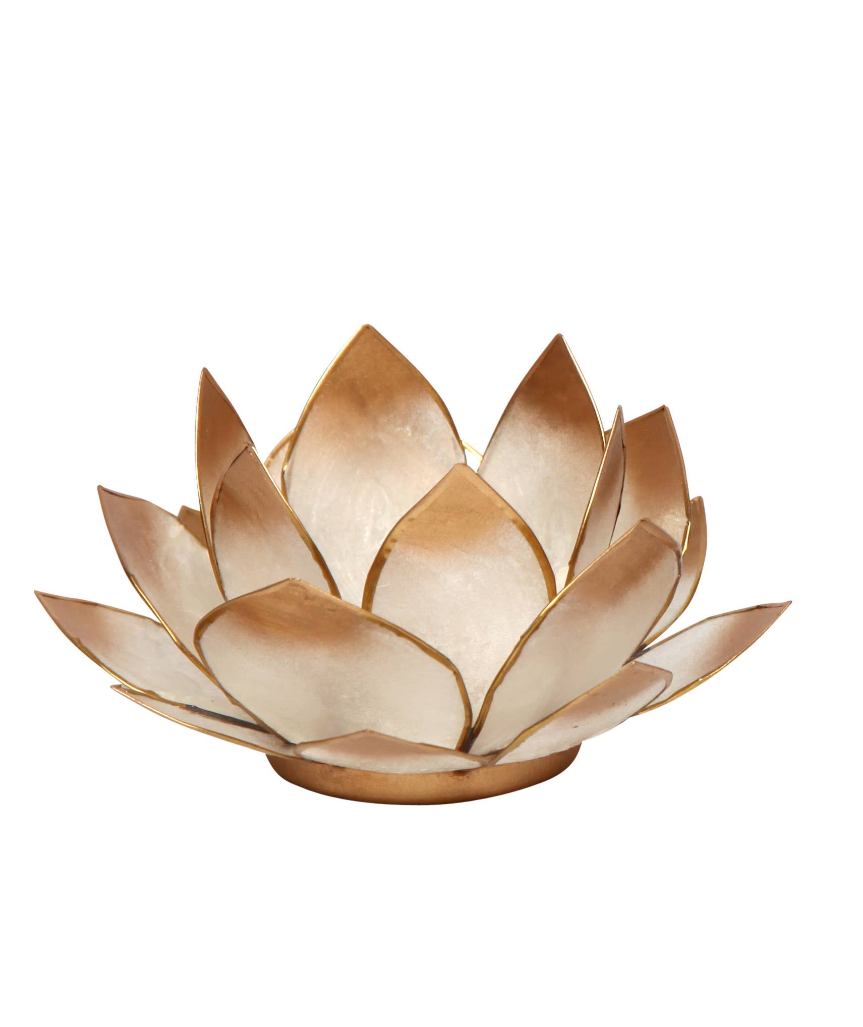 Lotus-Licht Sonnenaufgang. In Metall gefasste Muschelplättchen.