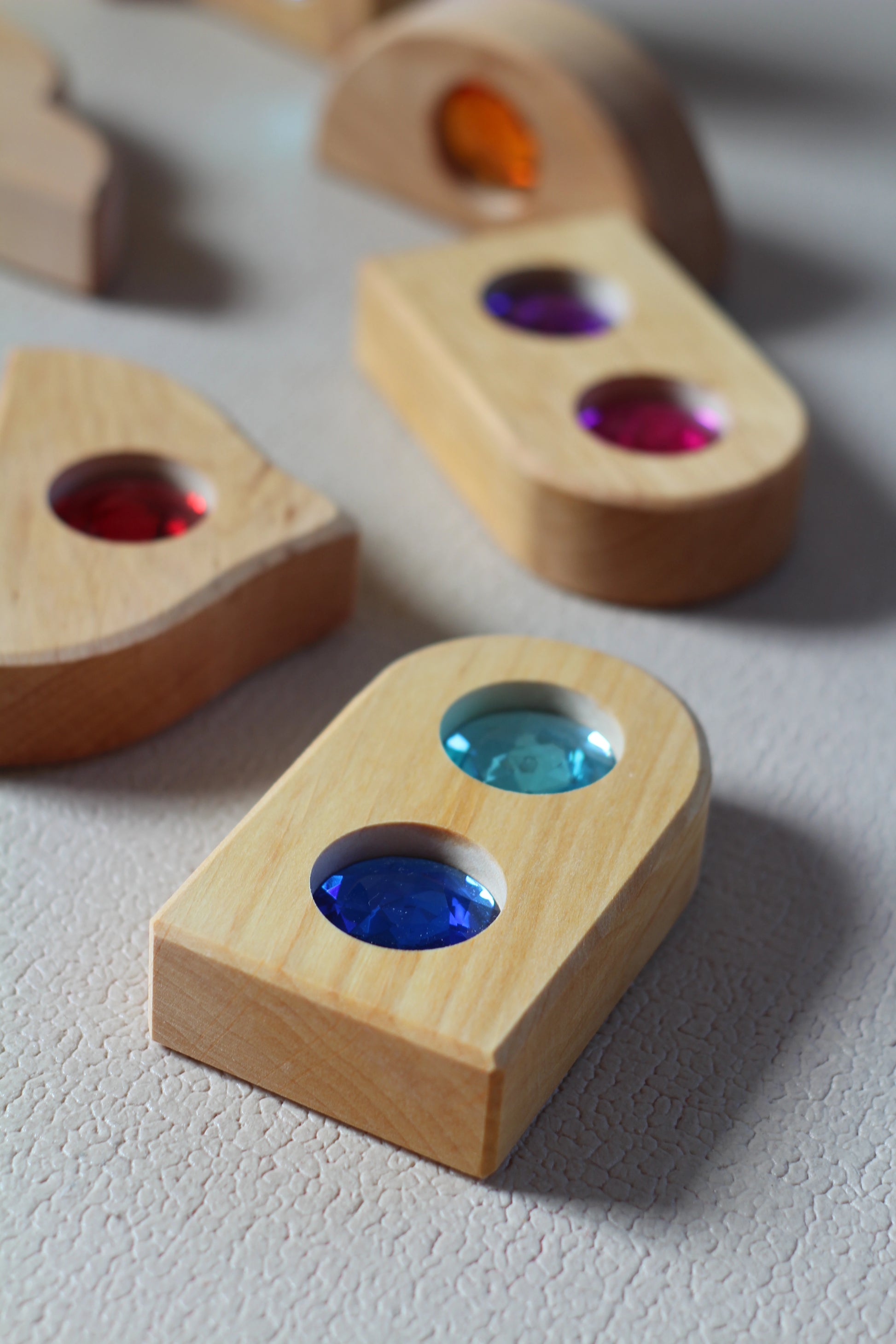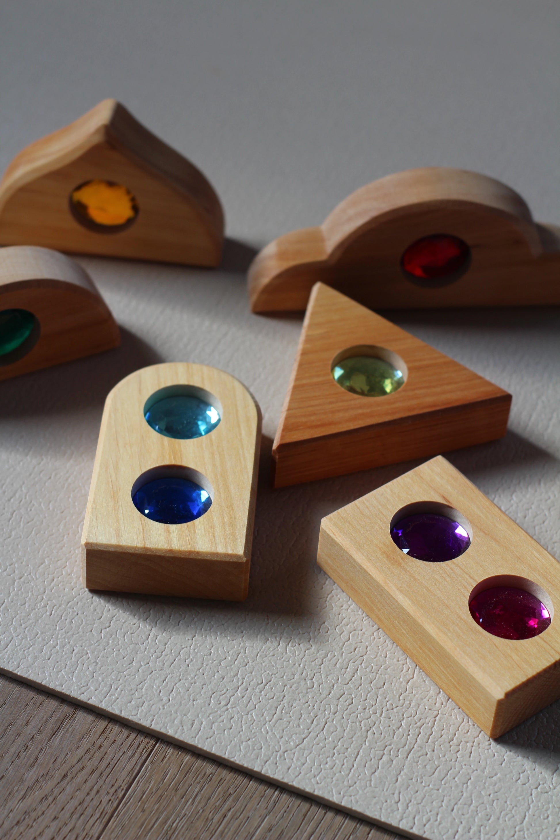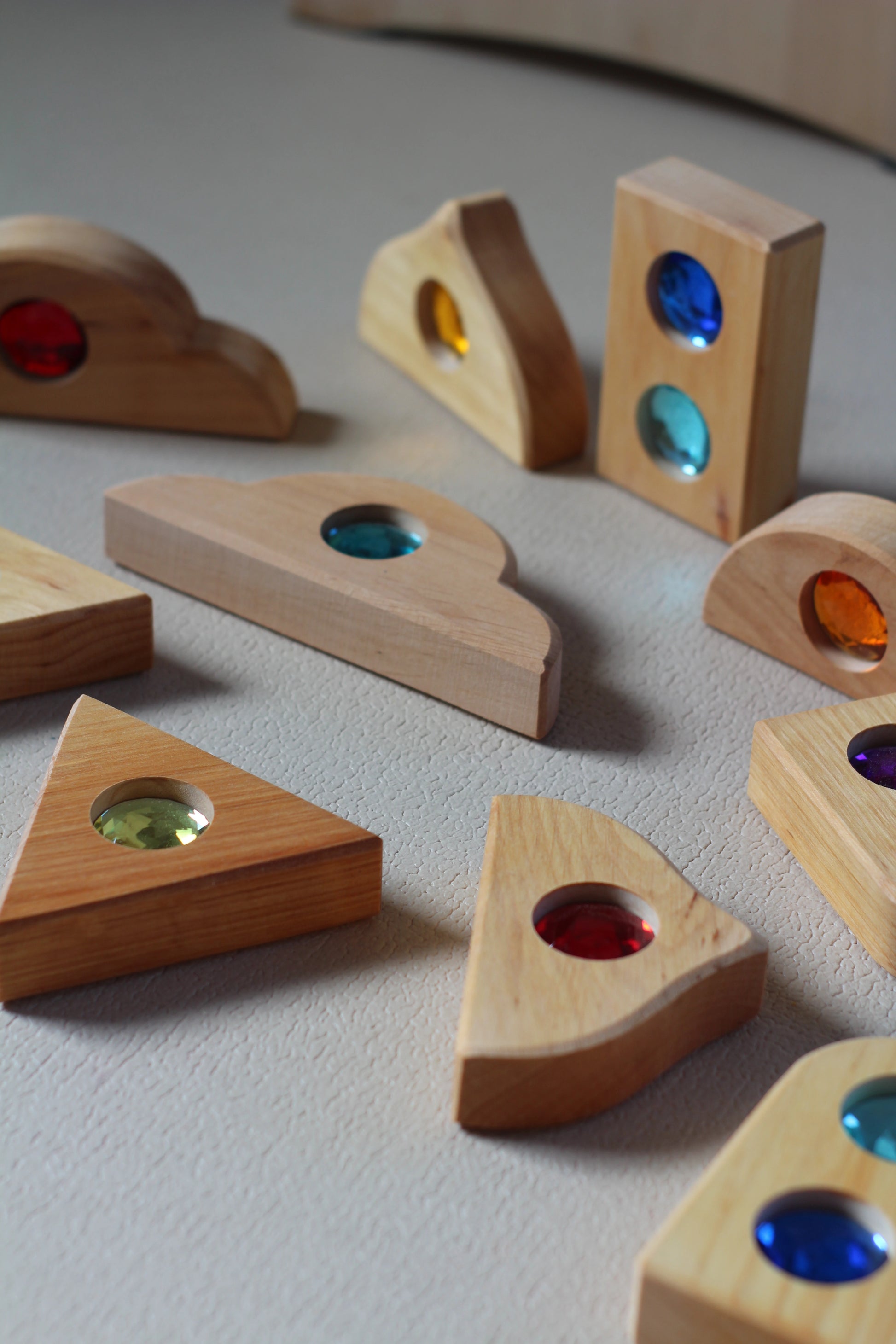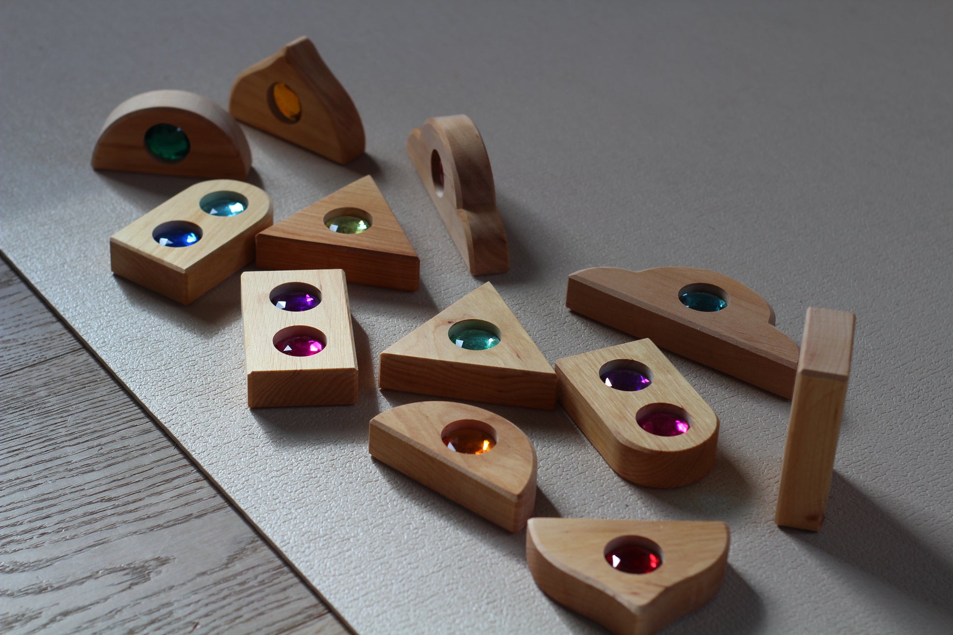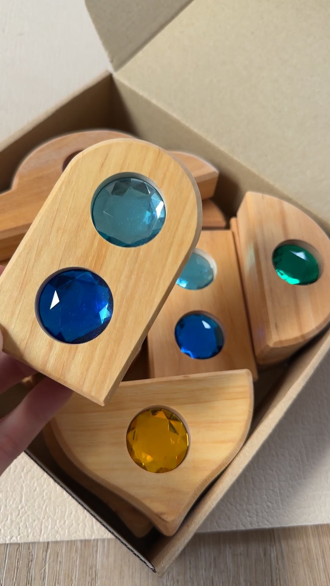 In jedem Märchendach liegen ein oder zwei bunte, Funkelsteine. Die Steine machen die Bauecke zu einer tollen Ergänzung für Schlösser und Burgen.