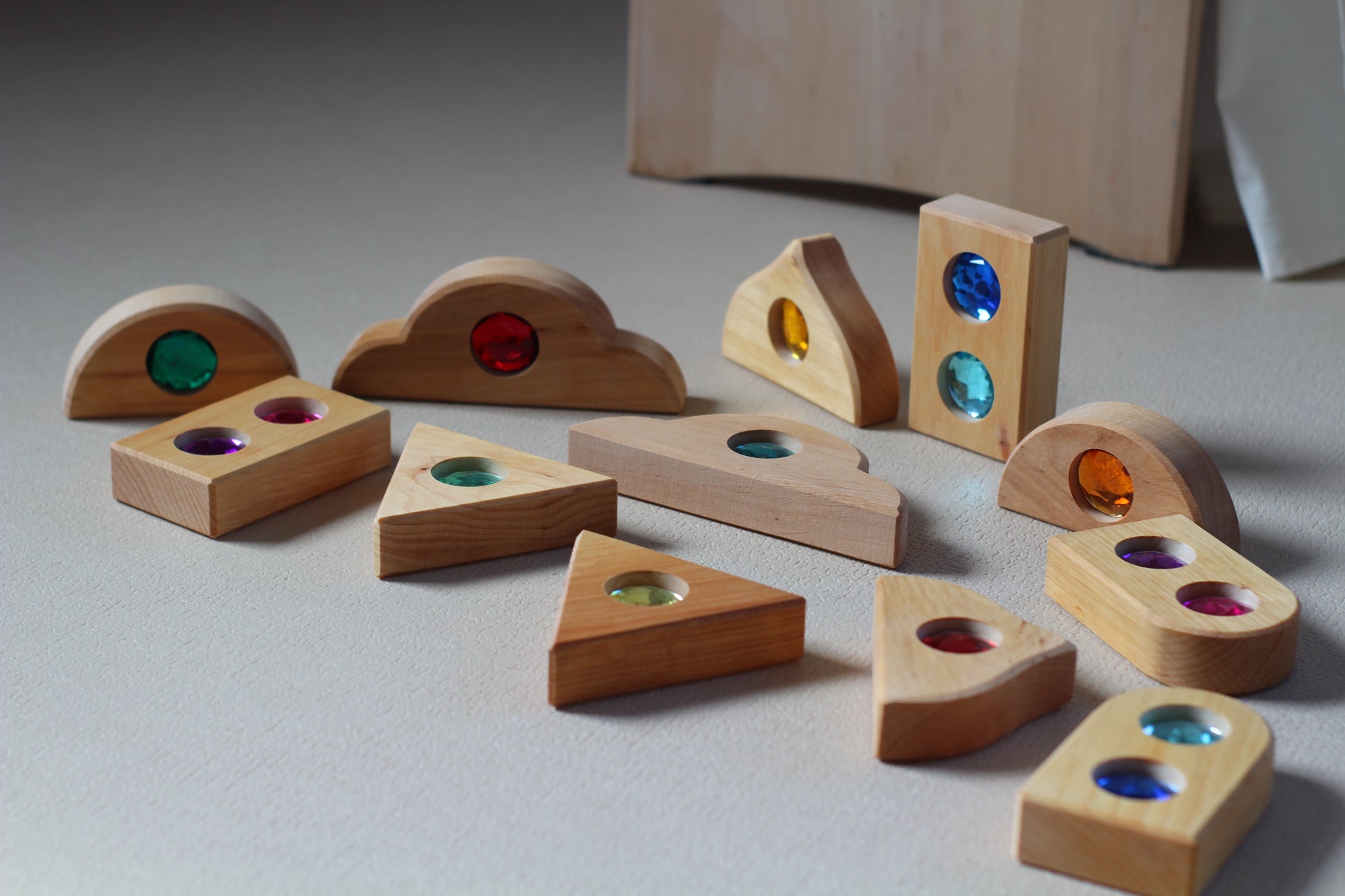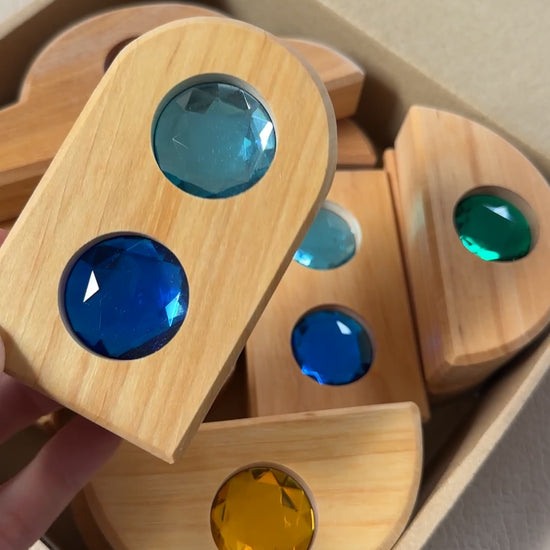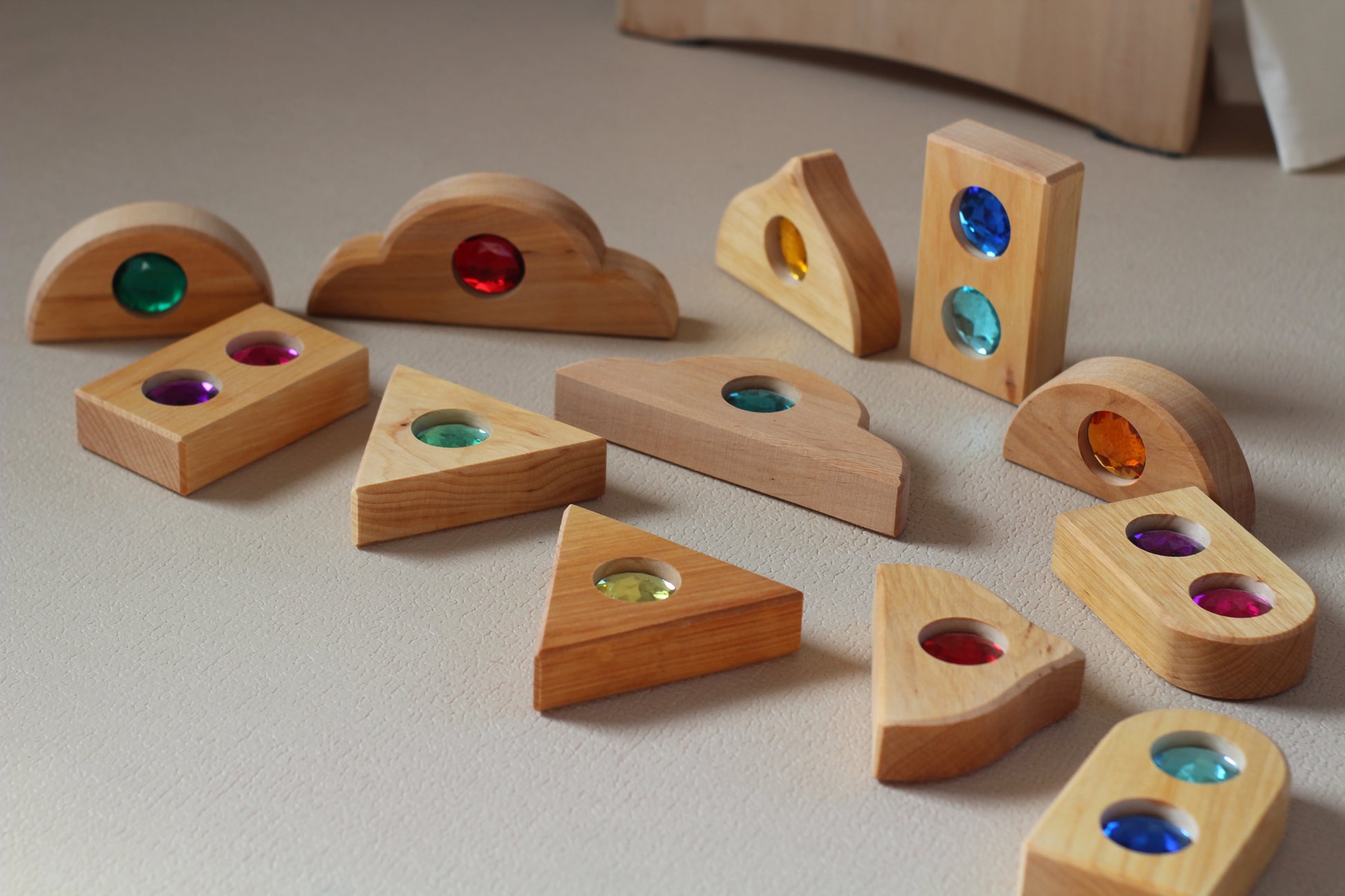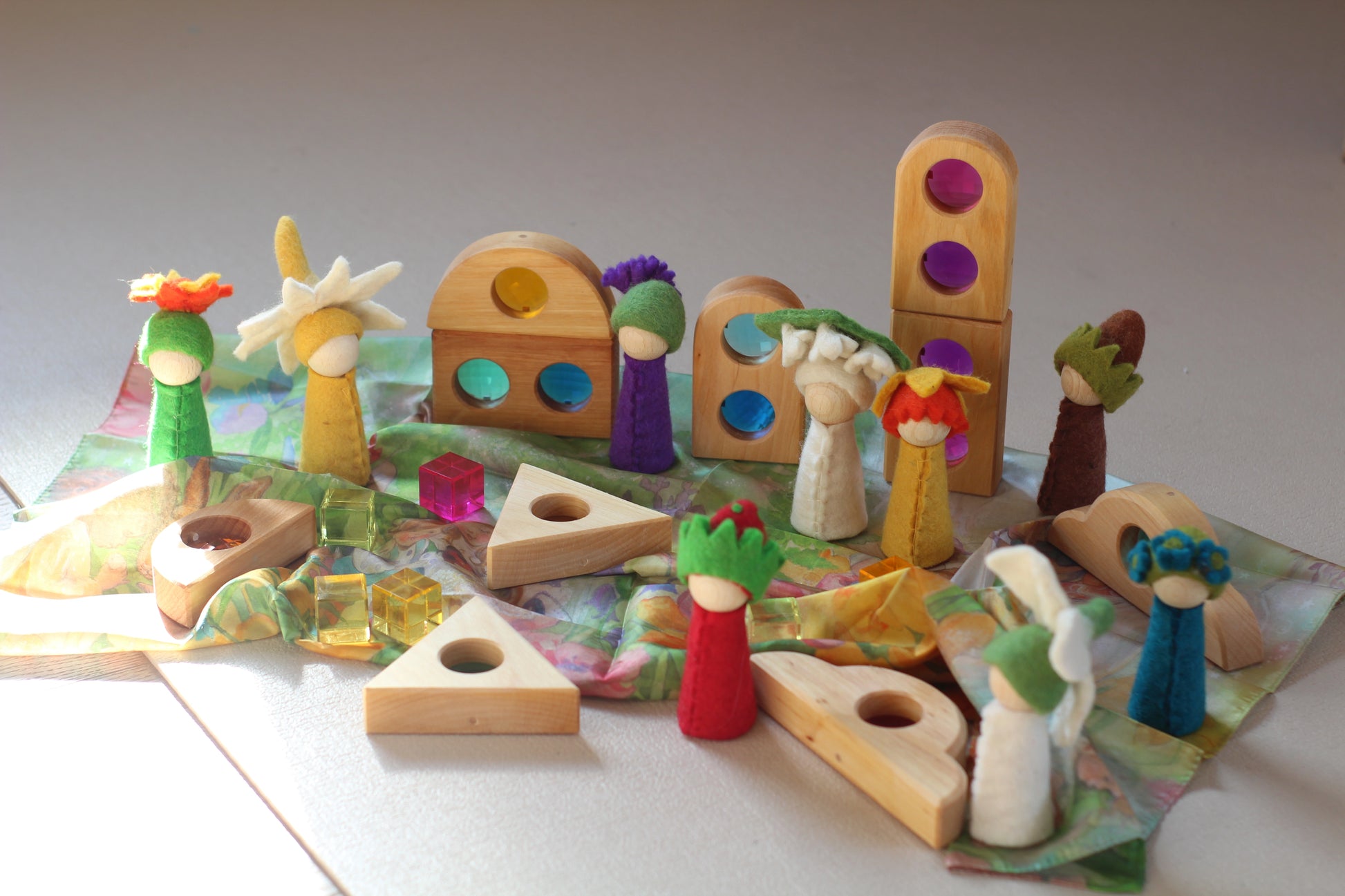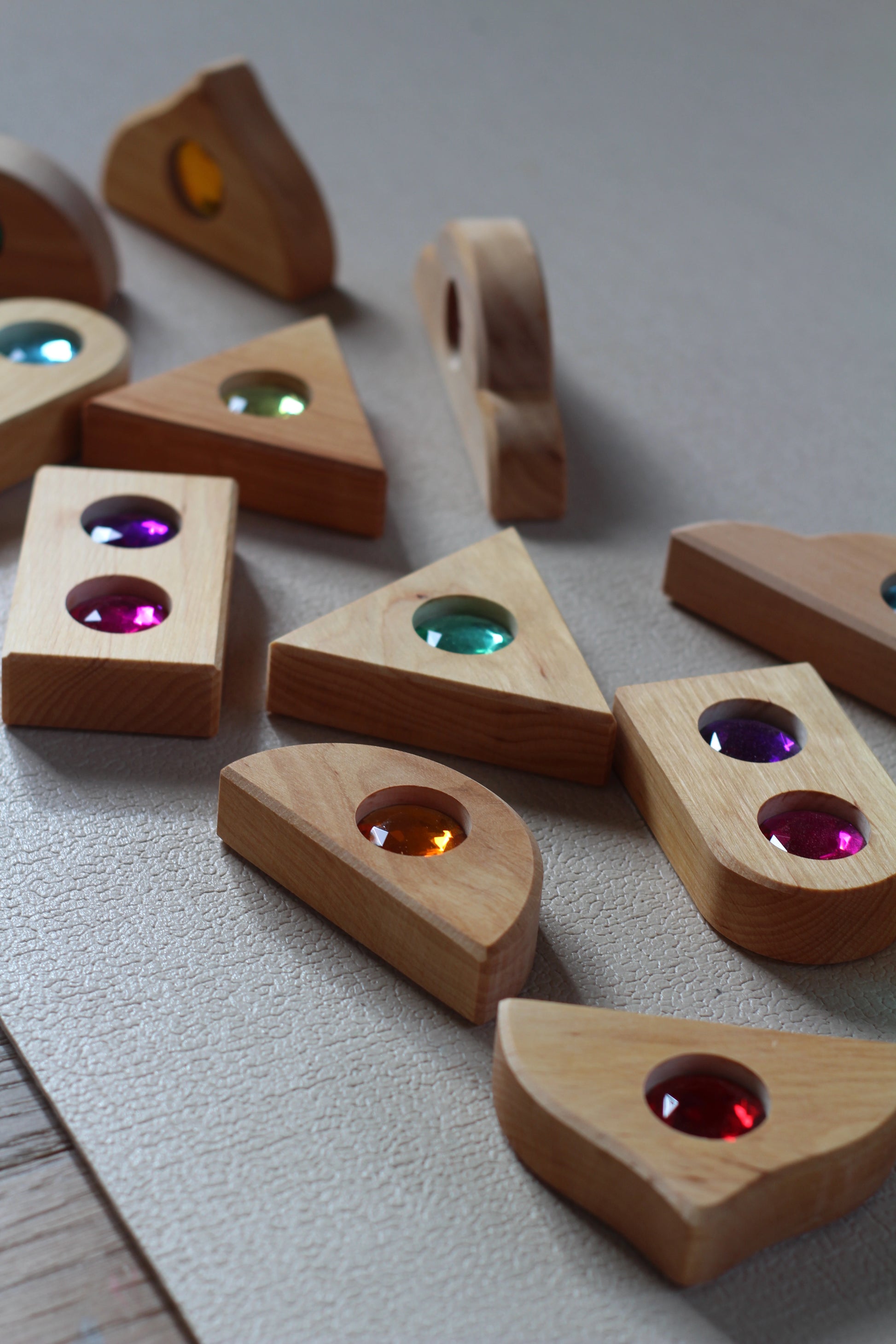 In jedem Märchendach liegen ein oder zwei bunte, Funkelsteine. Die Steine machen die Bauecke zu einer tollen Ergänzung für Schlösser und Burgen.