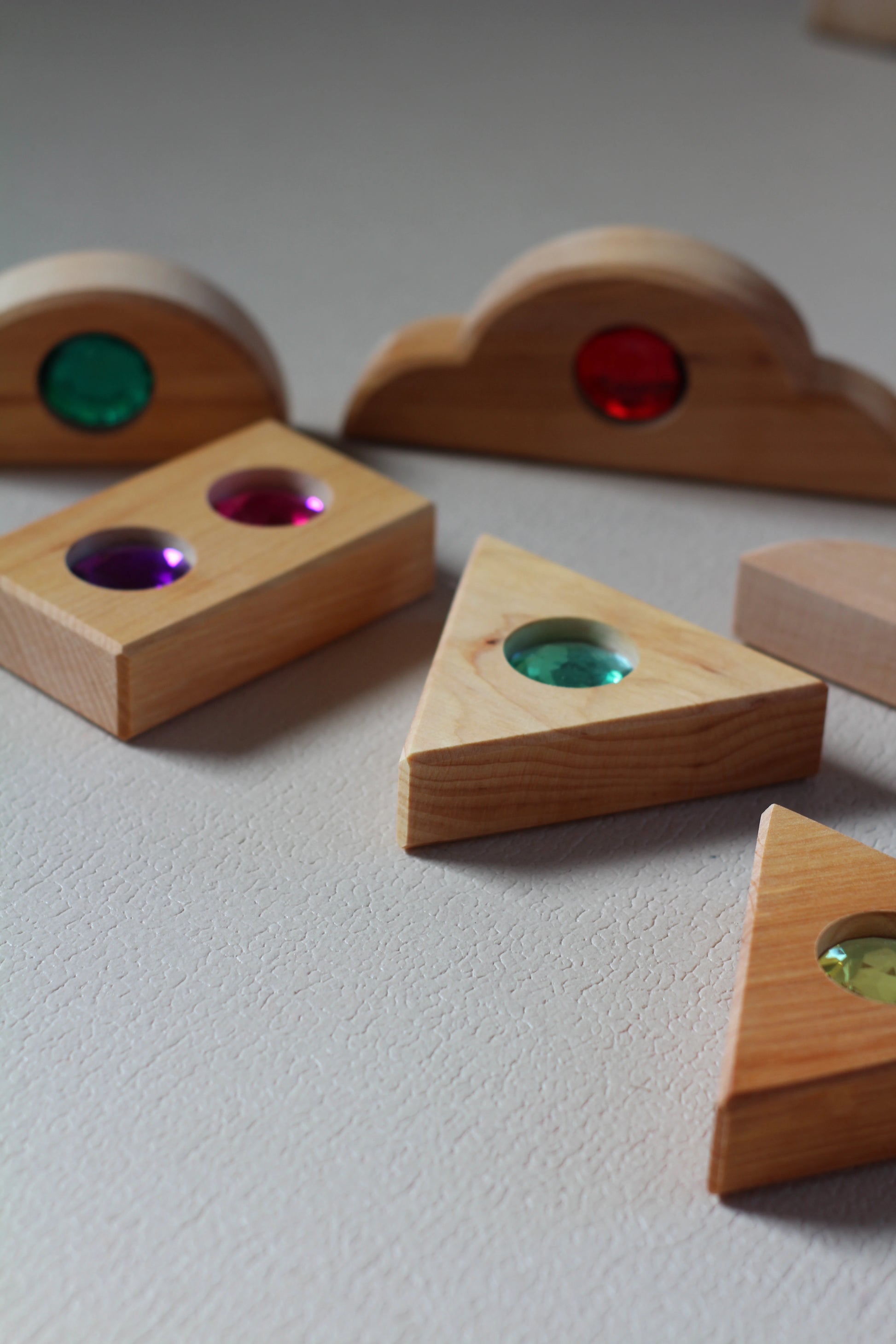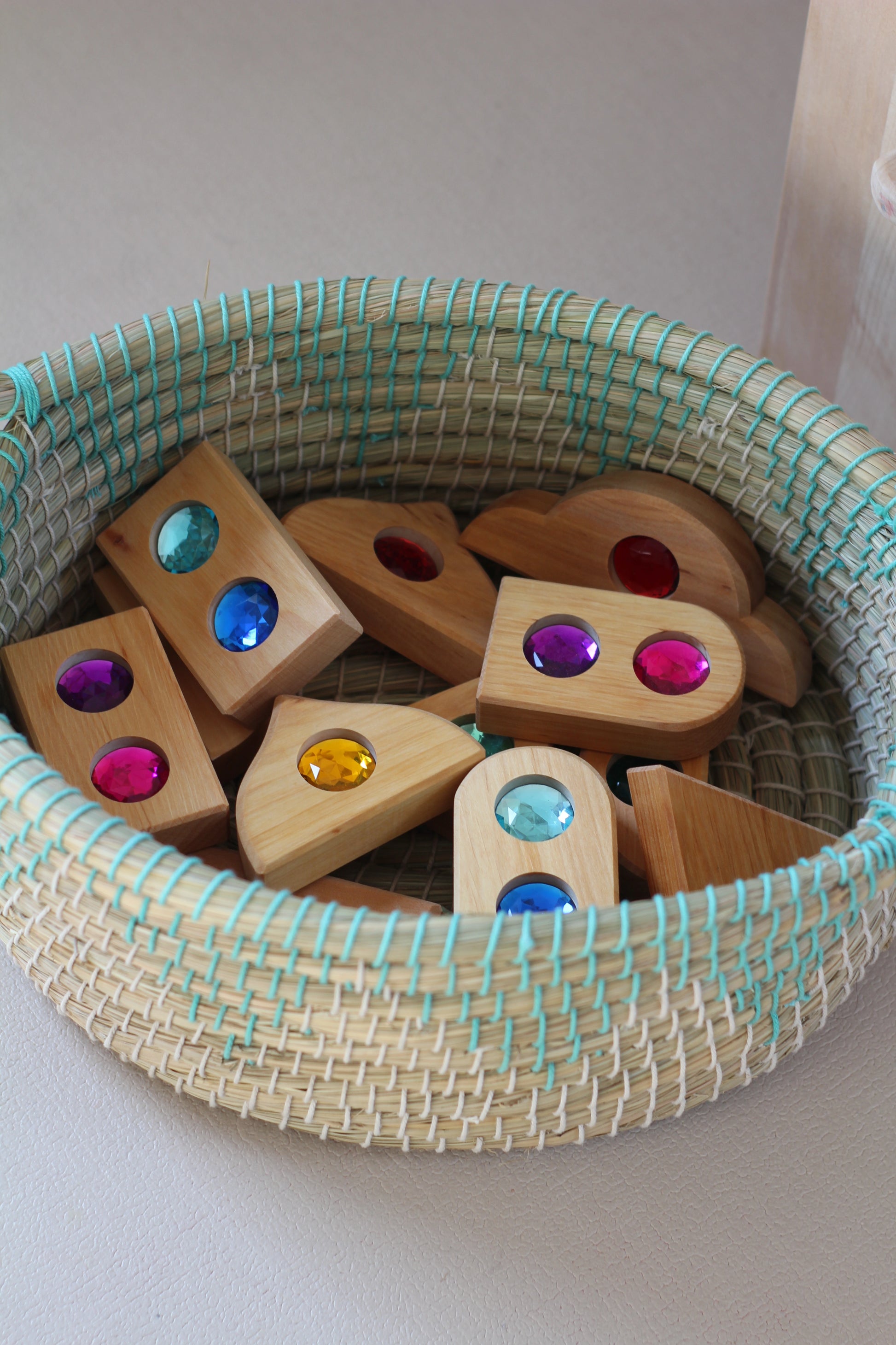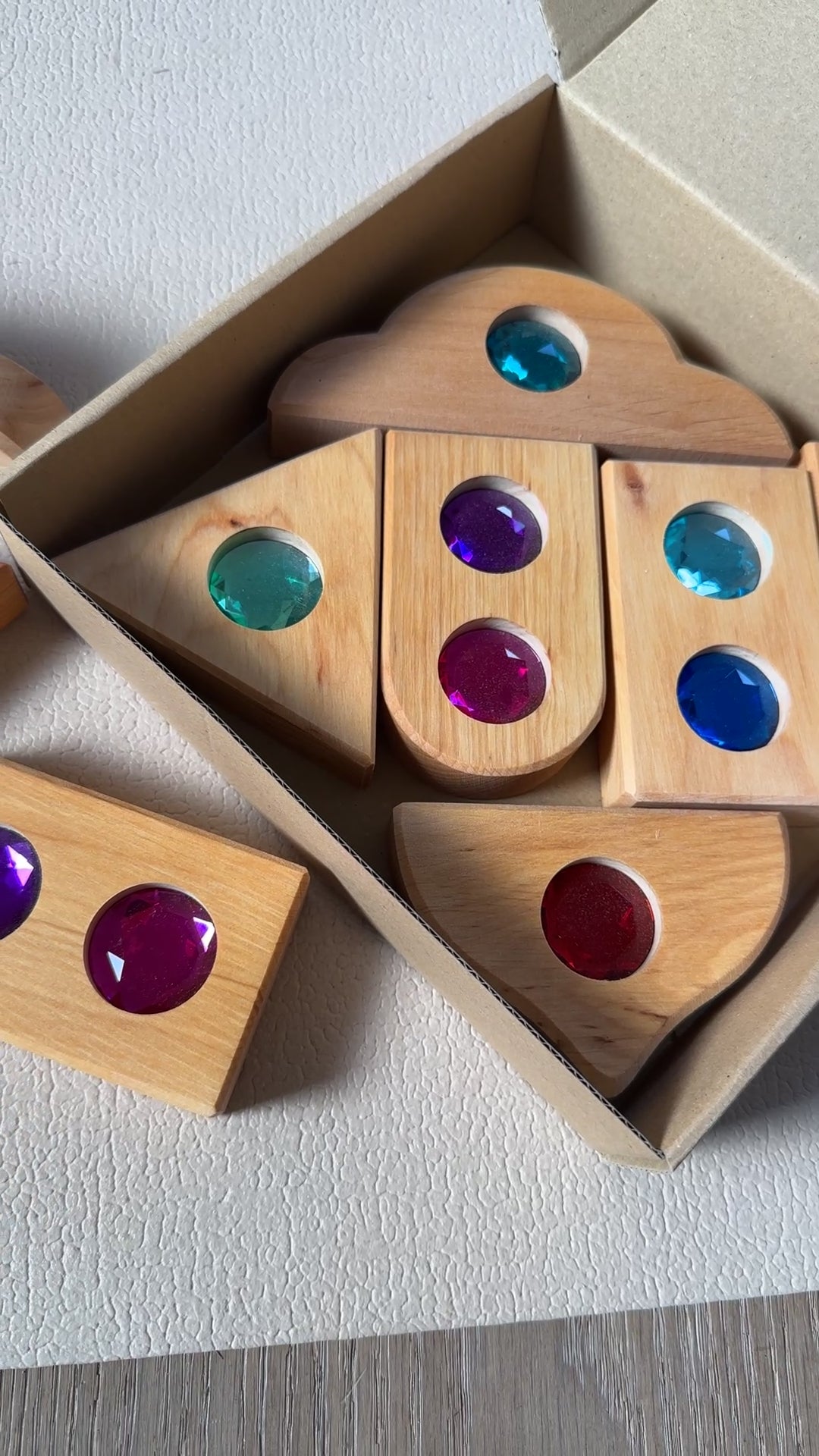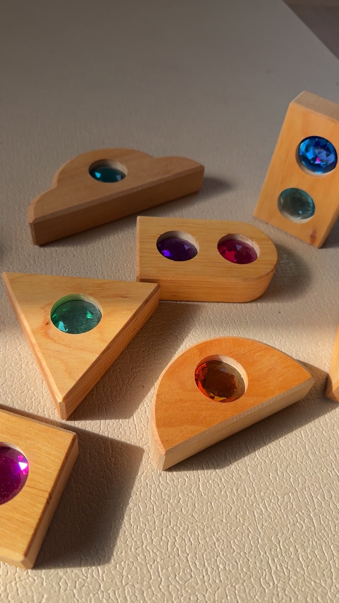 In jedem Märchendach liegen ein oder zwei bunte, Funkelsteine. Die Steine machen die Bauecke zu einer tollen Ergänzung für Schlösser und Burgen.