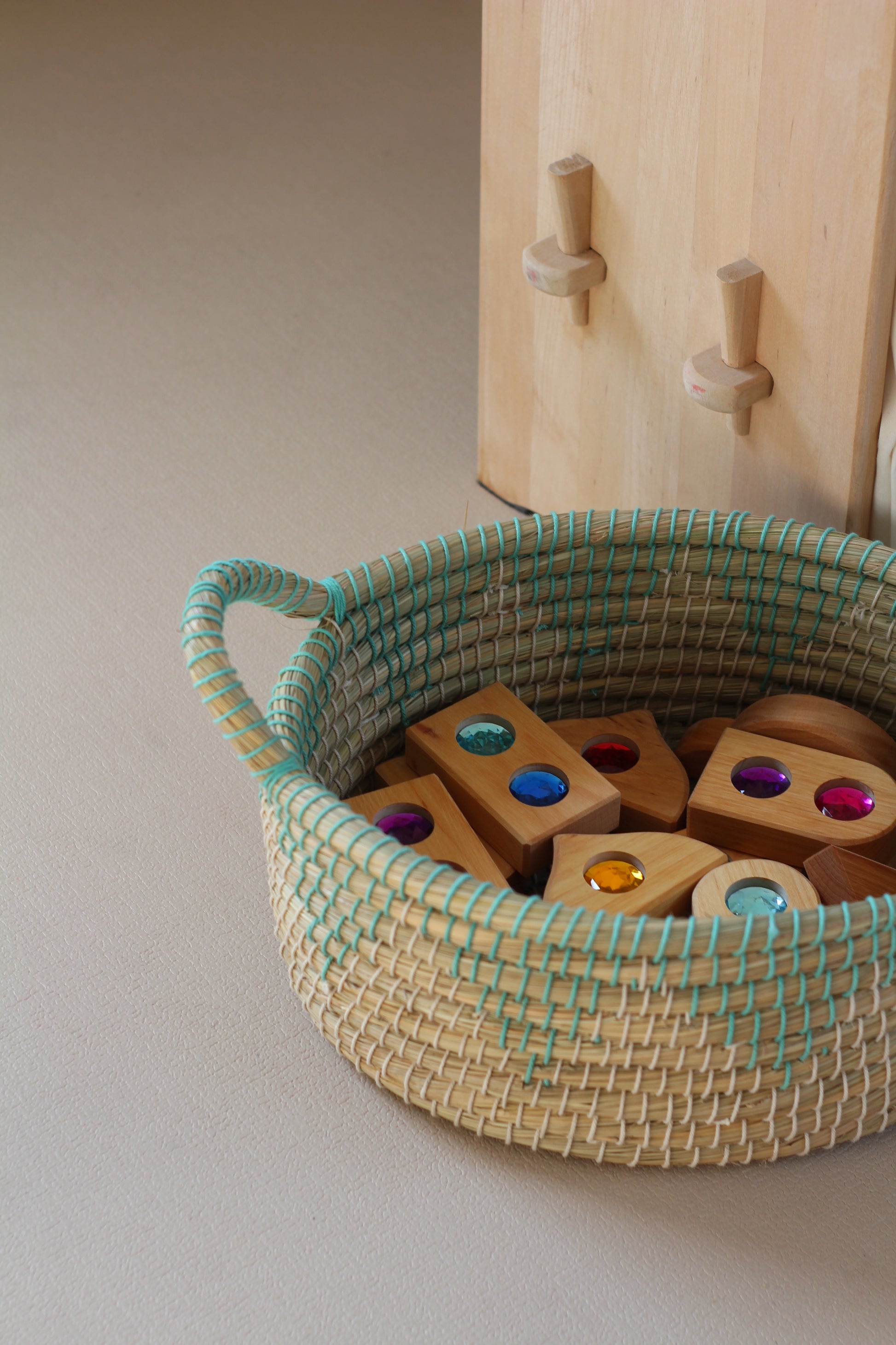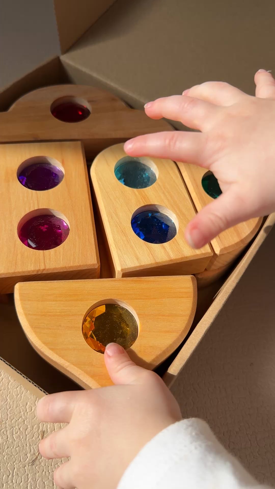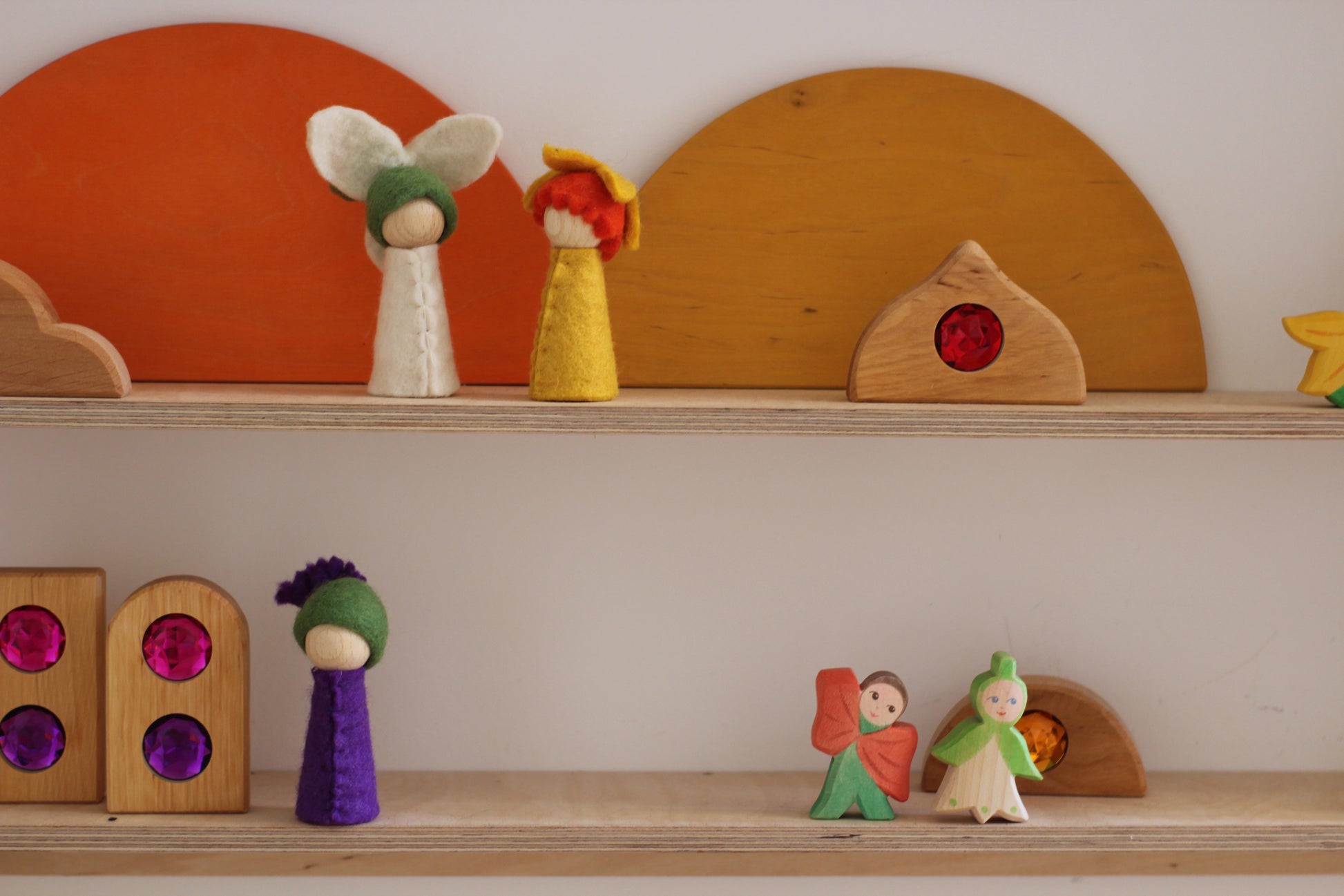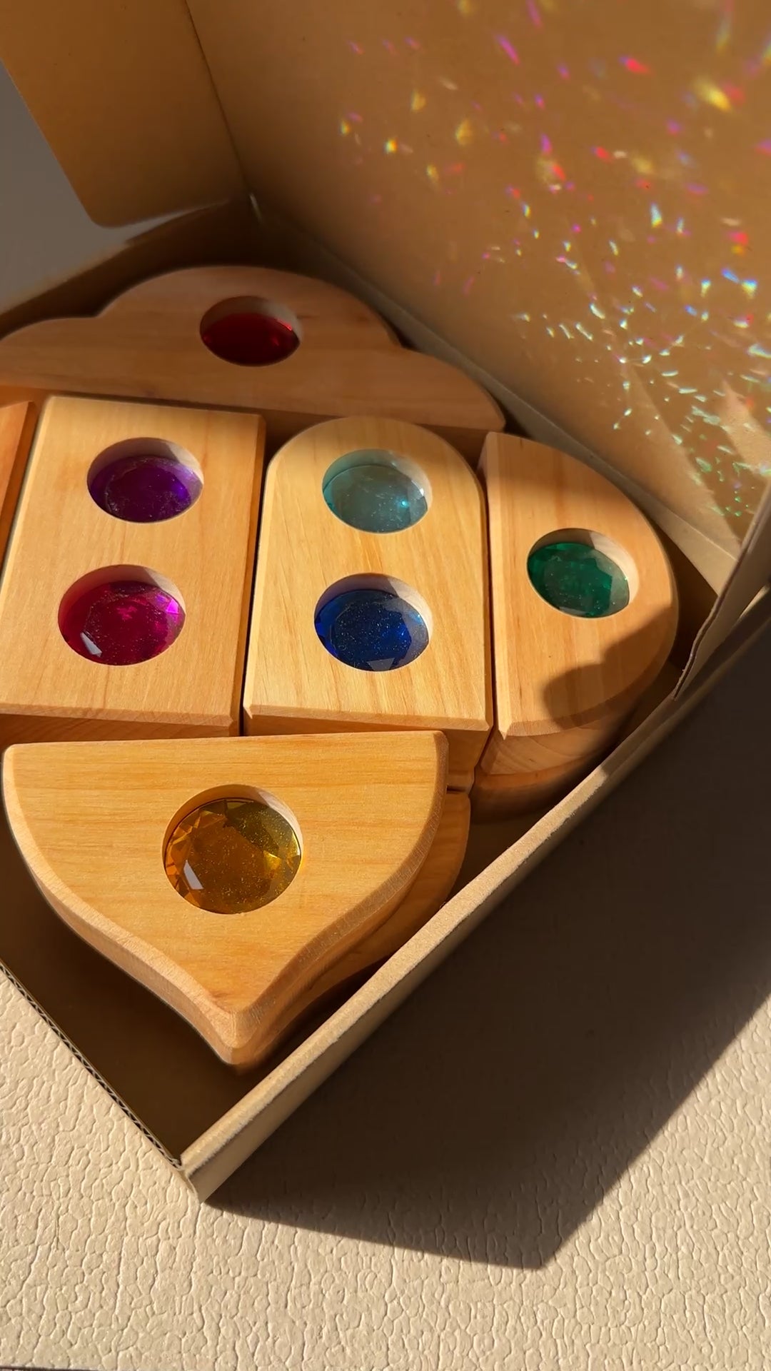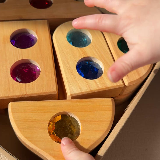 In jedem Märchendach liegen ein oder zwei bunte, Funkelsteine. Die Steine machen die Bauecke zu einer tollen Ergänzung für Schlösser und Burgen.