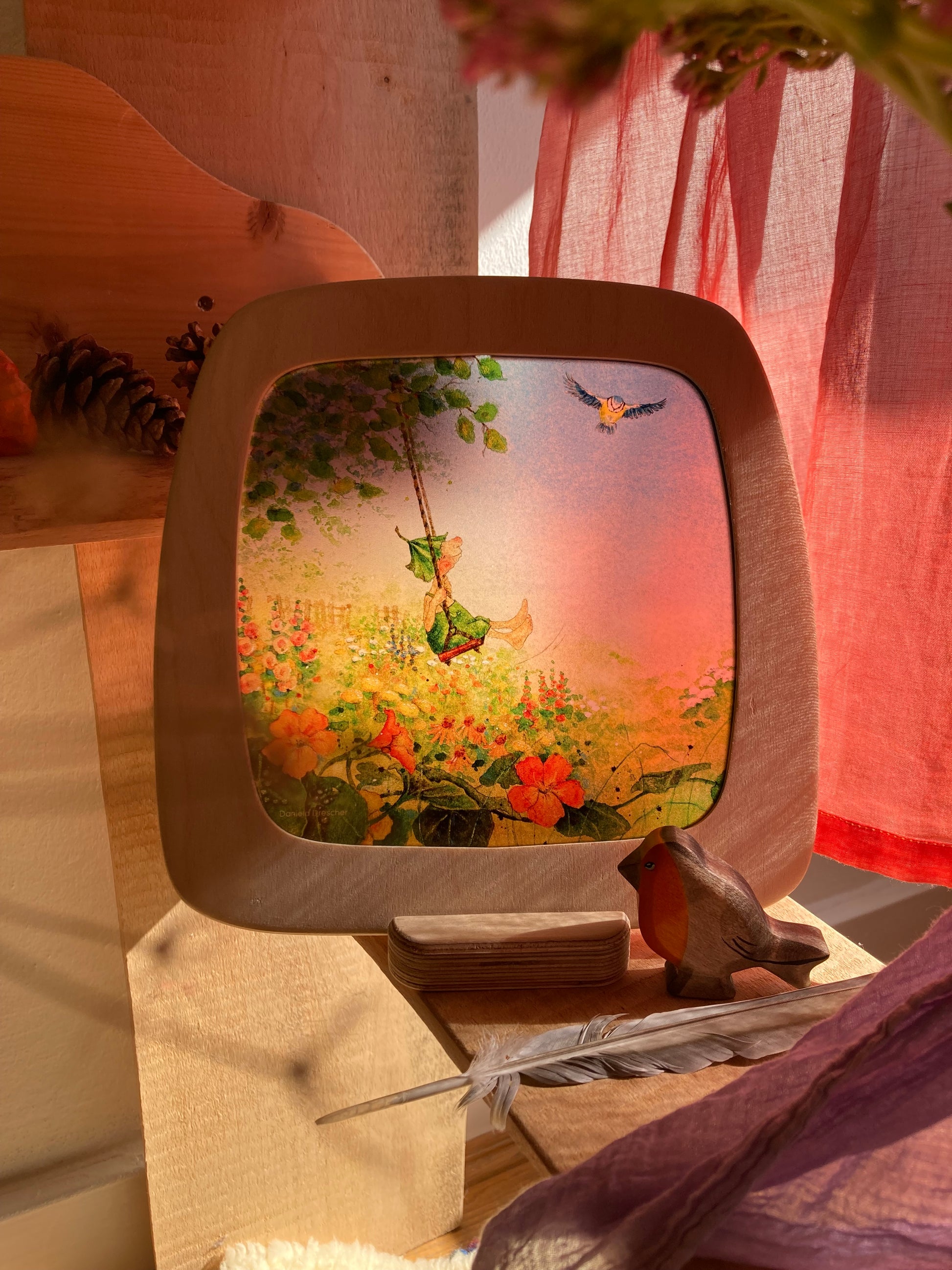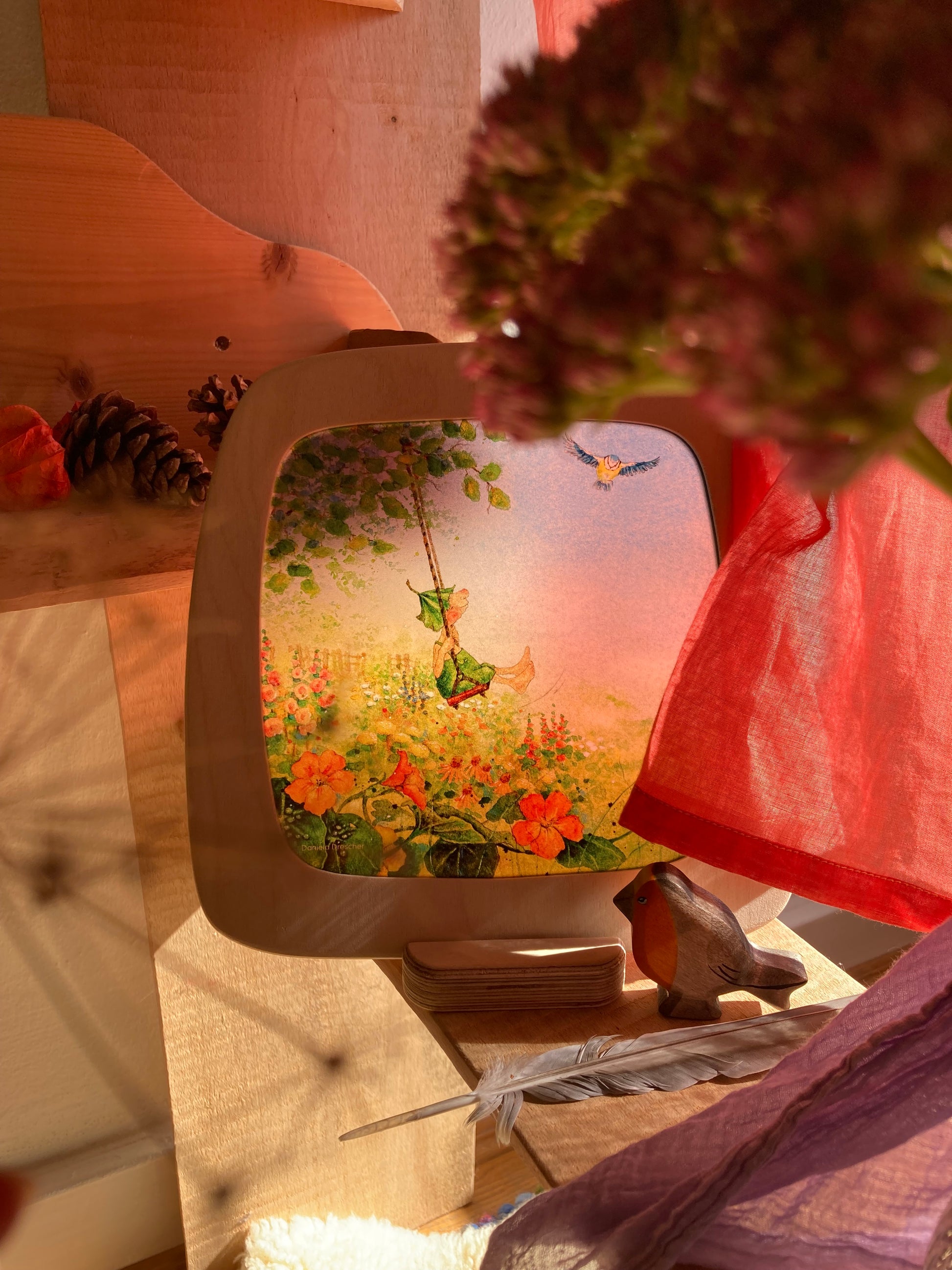 Die Motive werden ganz einfach, kinderleicht getauscht. So kann man z.B. zum Geburtstag, Ostern. Weihnachten usw. dem Kind ein neues wunderschönes Motiv schenken.