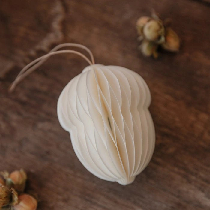 Zeitlose Dekoration im skandinavischen Stil mit den entzückenden Papieranhängern in Form einer Eichel! Diese bezaubernden Papieranhänger fügen Deiner Dekoration im Spätsommer und Herbst eine sanfte, natürliche Note hinzu. Ihr minimalistisches Design und die erdigen Farbtöne passen perfekt zum skandinavischen Stil und bringen eine ruhige, stilvolle Atmosphäre in Dein Zuhause. Die Papiereicheln eignen sich ideal zum Aufhängen an Zweigen, Ästen oder Sträuchern – allein oder kombiniert mit anderen Deko-Elementen wie Holzfiguren oder Keramik. So entsteht ein harmonisches Arrangement mit nordischer Leichtigkeit.