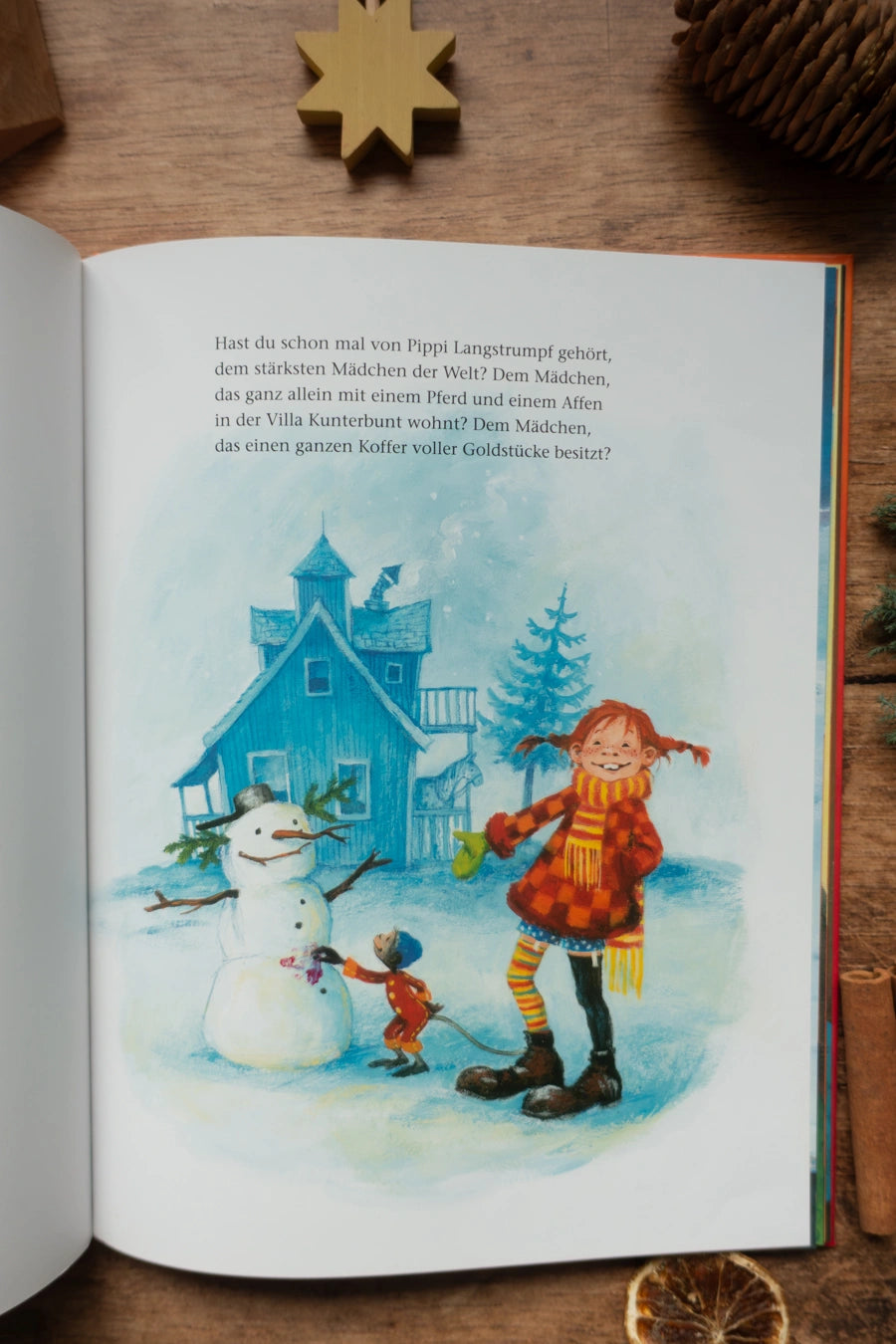 Erstmals als Bilderbuch! Die neue Pippi-Langstrumpf-Weihnachtsgeschichte Es ist Heiligabend. In den Fenstern der kleinen Stadt leuchten Weihnachtslichter und an den Weihnachtsbäumen brennen Kerzen. Alle Kinder sind froh – nein, nicht alle Kinder! Pelle, Bosse und die kleine Inga sind ganz alleine. Fast scheint es, als sollte dies das traurigste Weihnachtsfest werden, das sie je erlebt haben. Doch sie haben nicht mit Pippi Langstrumpf gerechnet! Pippi bringt Geschenke mit und hat sogar einen Weihnachtsbaum dabei. Und mit dem wird getanzt, bis sich die Balken biegen! Die Geschichte "Pippi Langstrumpf feiert Weihnachten" wurde 2002 zufällig auf der Rückseite eines Ausschneidebogens im Astrid-Lindgren-Archiv in Stockholm entdeckt.