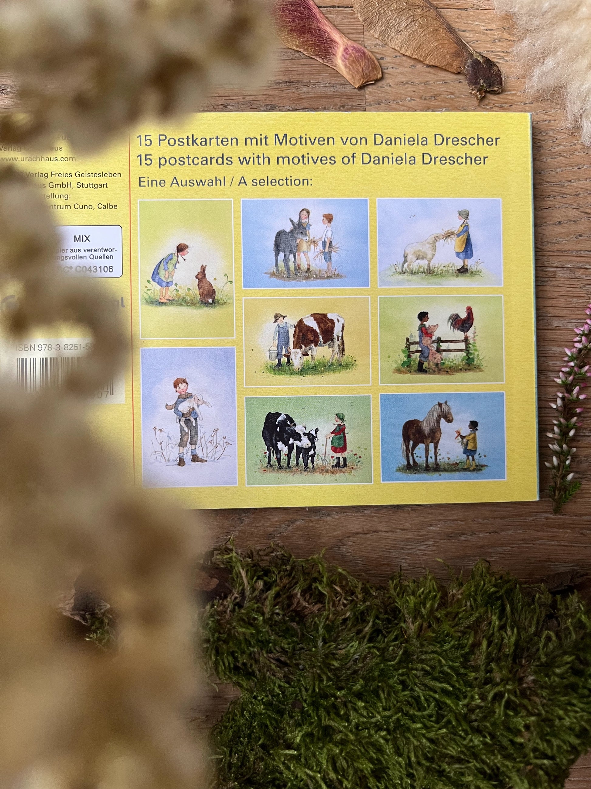 Kinder lieben Tiere – und sie lieben Daniela Dreschers Bilder! Die zauberhaften Motive dieses Postkartenbuchs mit beliebten Bauernhoftieren – vom Huhn bis zum Pferd, vom Lamm bis zum Esel – eignen sich hervorragend zum Verschenken und zum Freude-Teilen!
