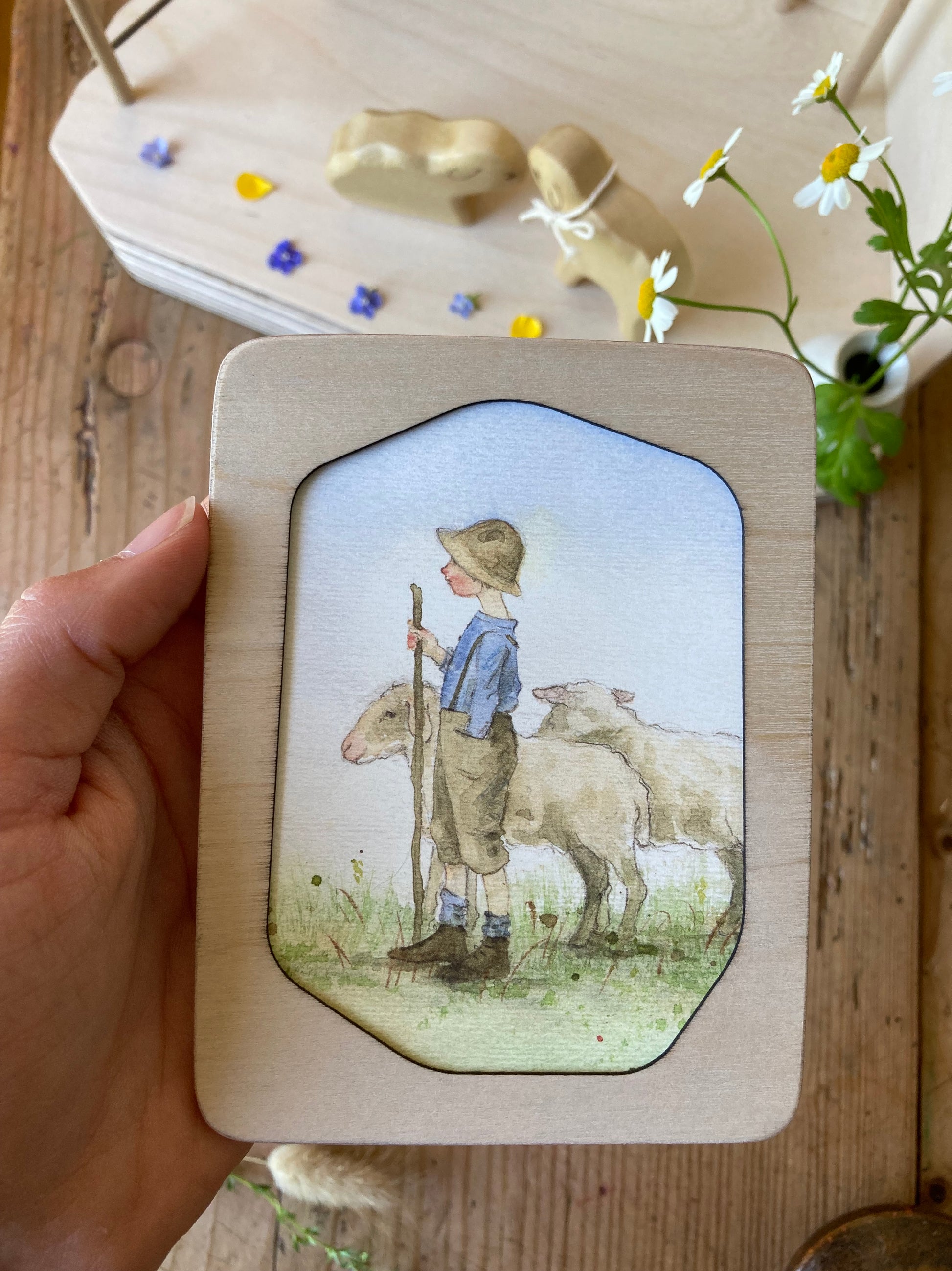 Durch Verschieben des Fußes kann er im Hoch- oder Querformat verwendet werden. Zudem hat der Holzrahmen Löcher, um ihn an die Wand zu hängen.