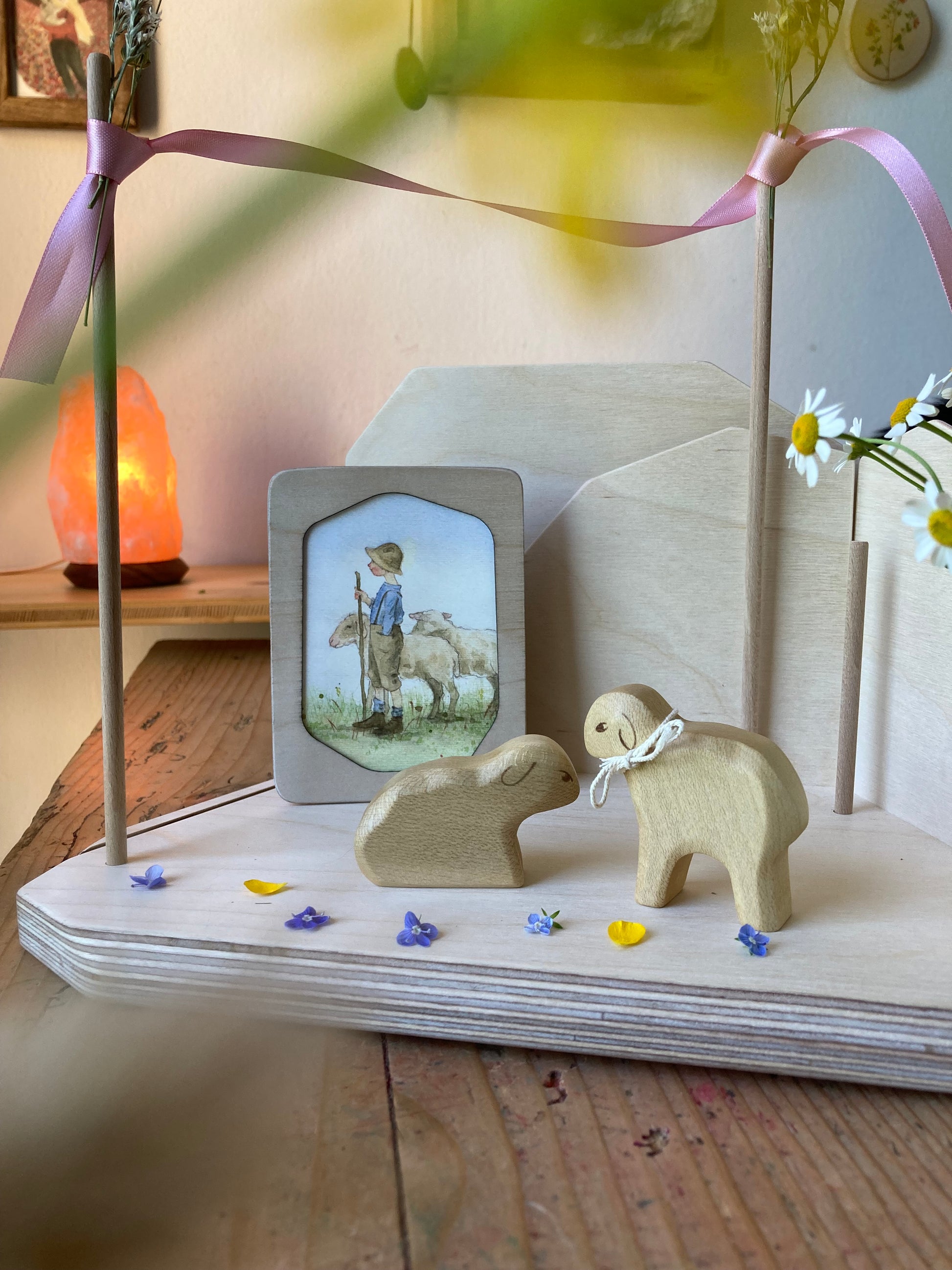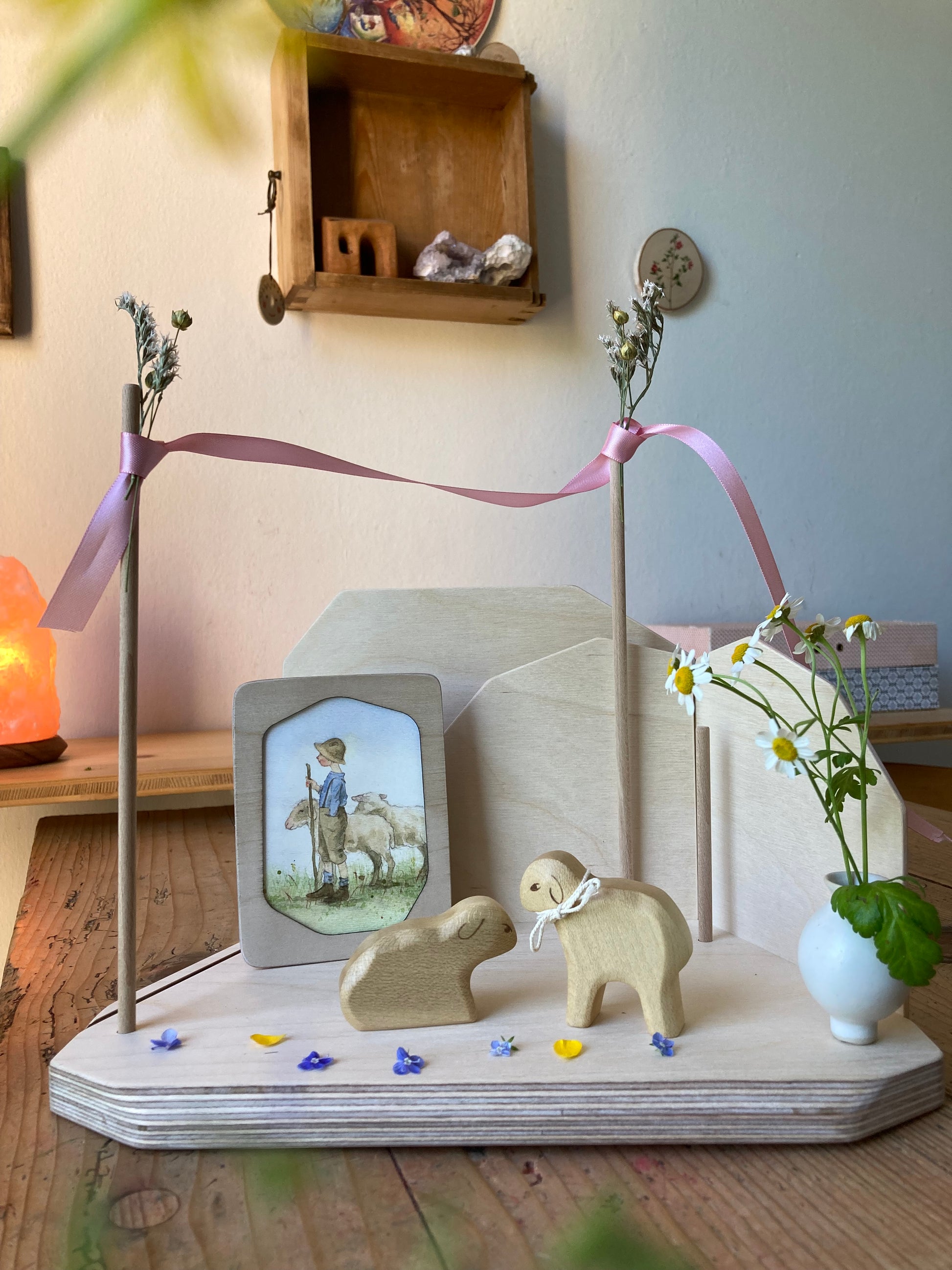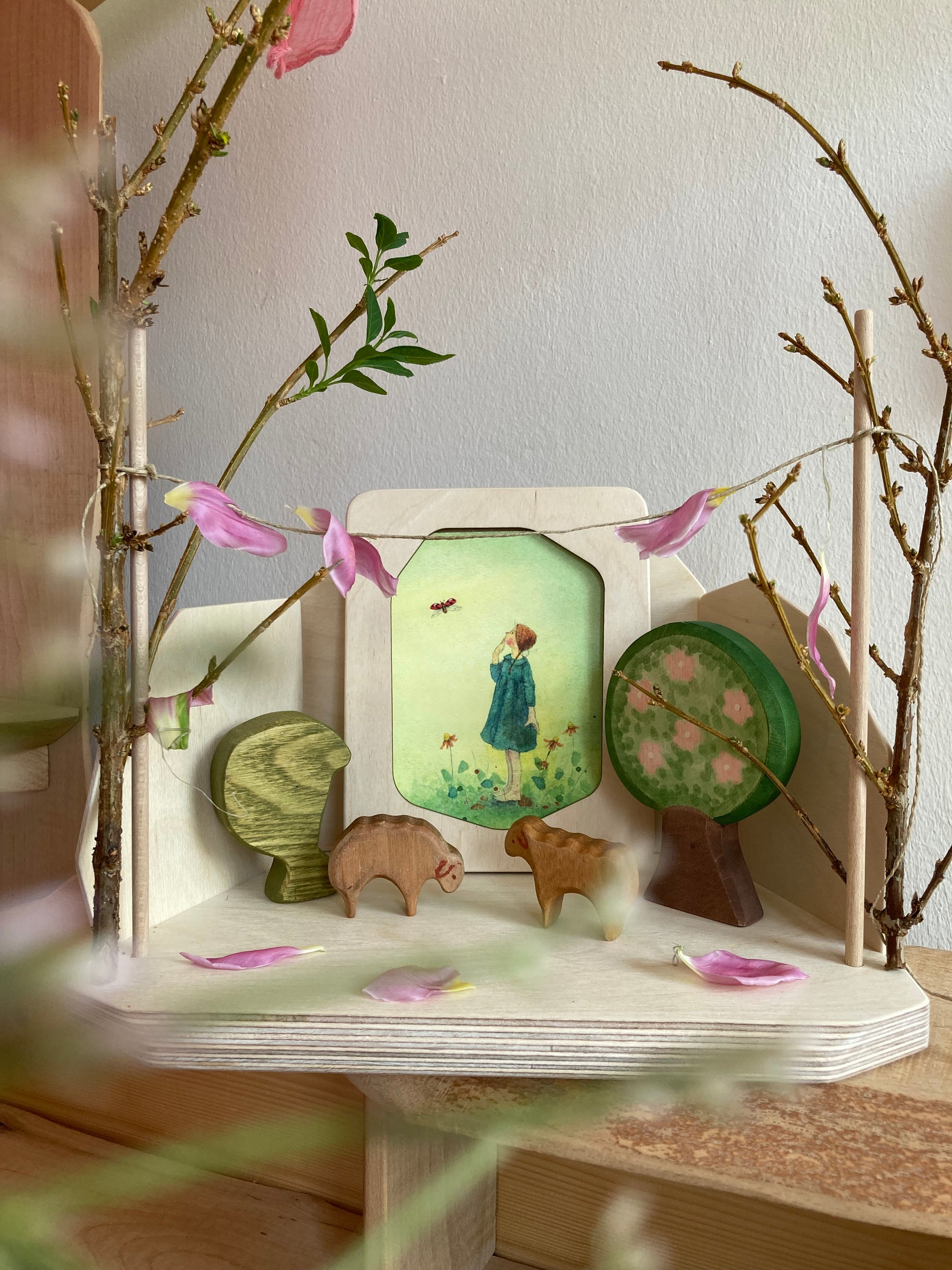 Material: Birkensperrholz für den Rahmen und Buche für den Stock (wird mit Schrauben geliefert).