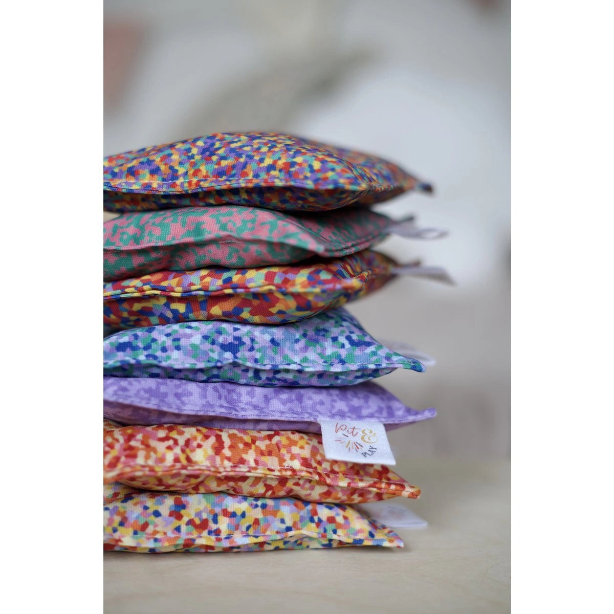 Sicherheitshinweis: Die sensorischen Kirschkernkissen sind frei von Chemikalien und tragen das CE-Zeichen für hohe Sicherheitsstandards. So kannst du unbesorgt spielen und zugleich die Umwelt schonen.