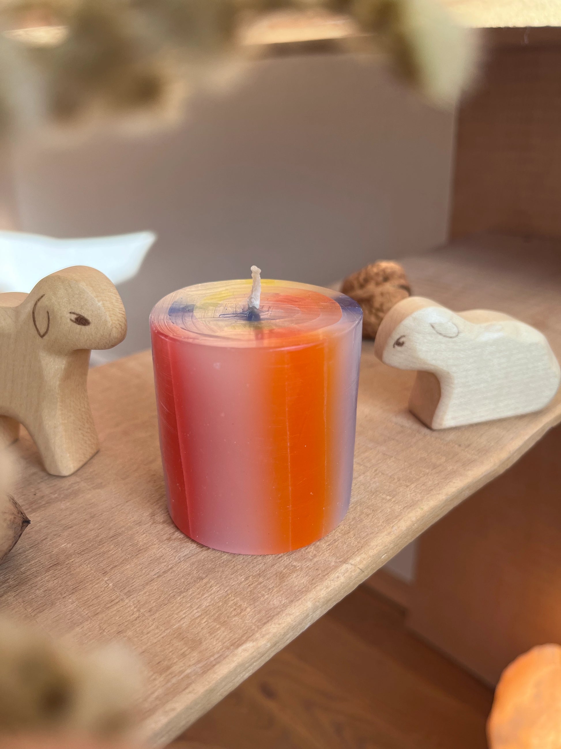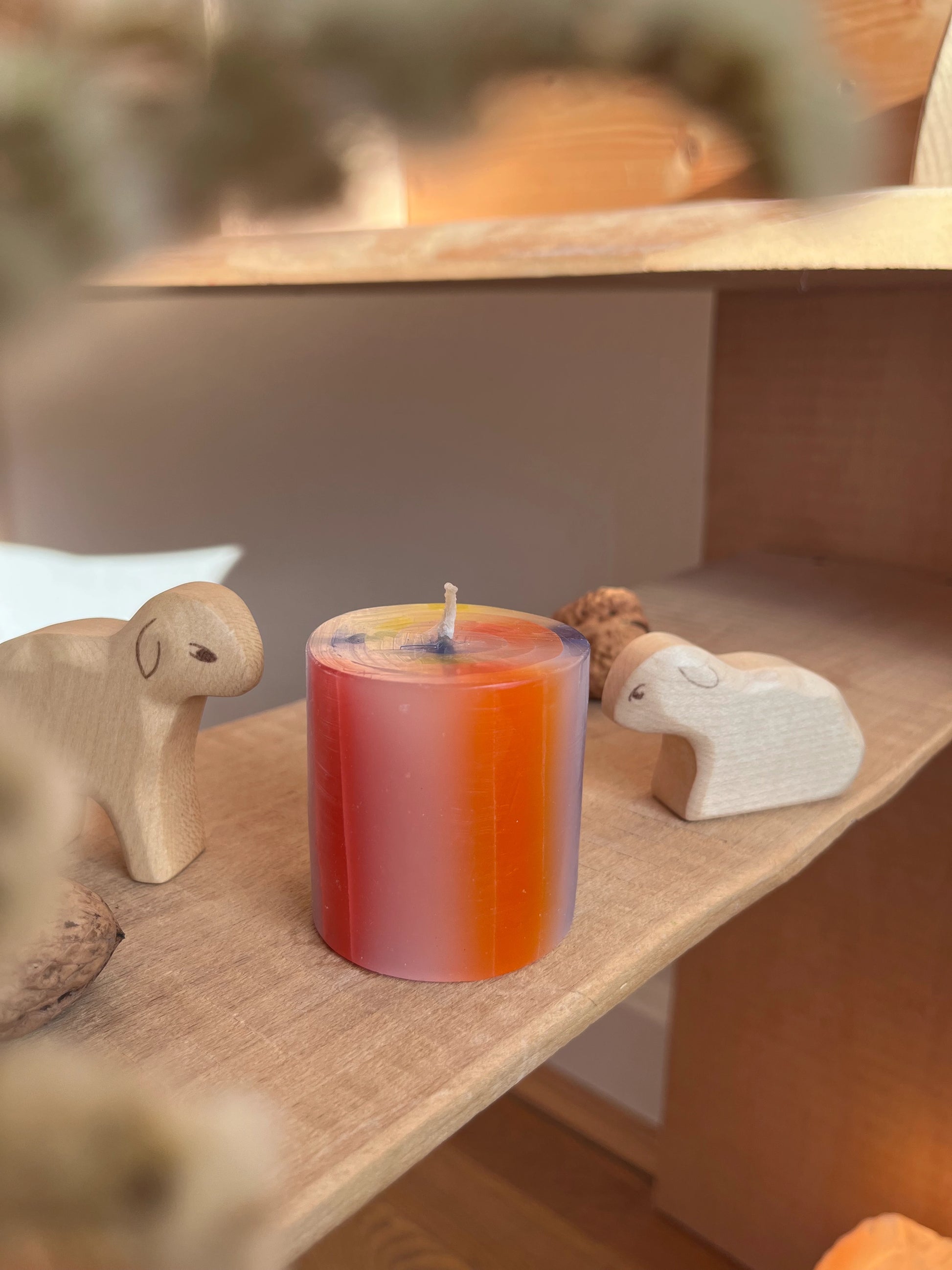 Die Stumpenkerze „Spirale“ lädt Dich mit ihrer besonderen Spiralform und dem liebevoll gestalteten Multicolor-Design ein, einen Hauch Einzigartigkeit in Dein Zuhause zu bringen. Mit einer Höhe von 5,5 cm und einem Durchmesser von 4,5 cm wird sie zum stilvollen Highlight auf jedem Tisch und schenkt mit ihrer weißen Basis eine sanfte Note, die zu vielen Einrichtungsstilen passt.