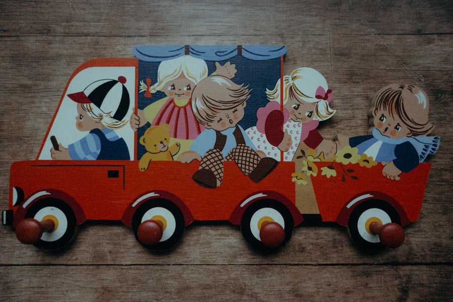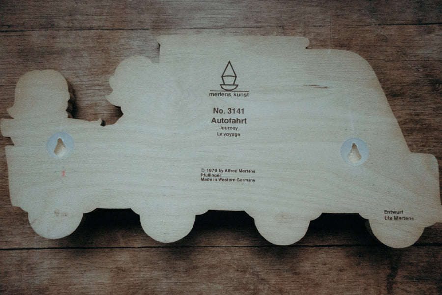 Zauberhafte Vintage-Kindergarderobe "Autofahrt" aus Holz von Alfred Mertens.