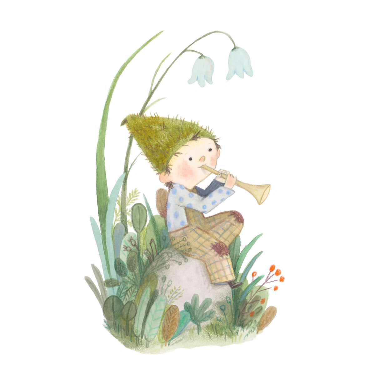 Ein Waldelf spielt Trompete. Perfekt als Geschenkidee für den kleinen Jungen.